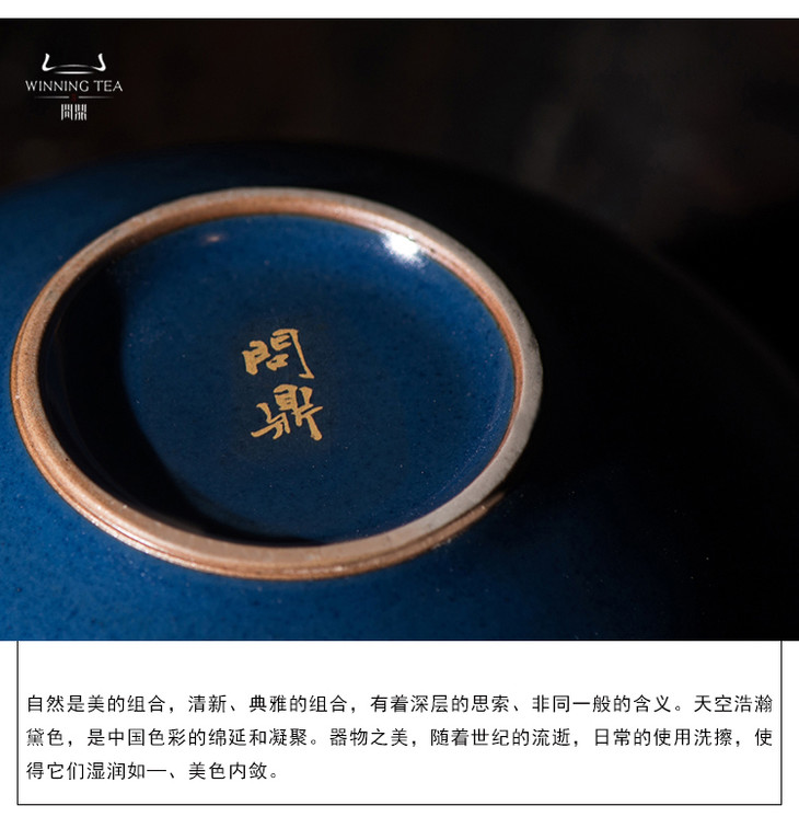 问鼎汝瓷鼎峰柴窑月白观月杯(梵红描金狮子绣球)