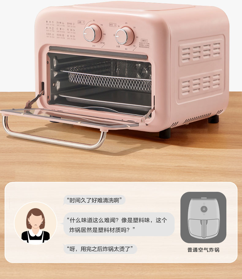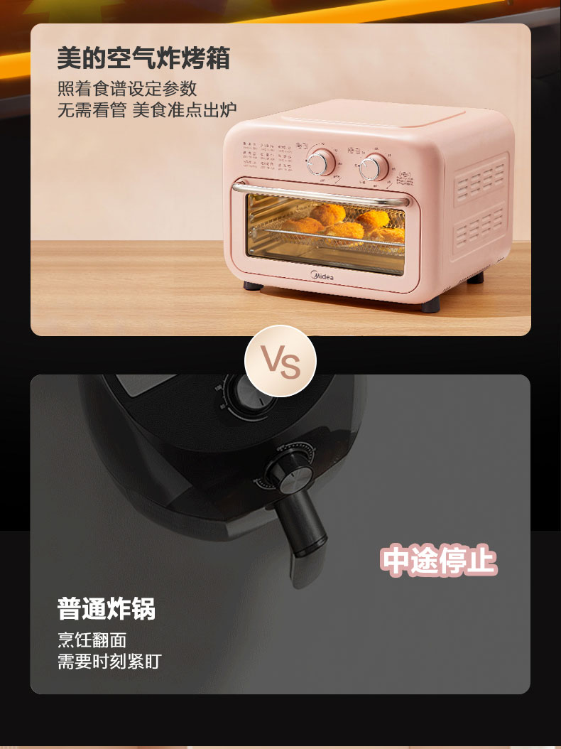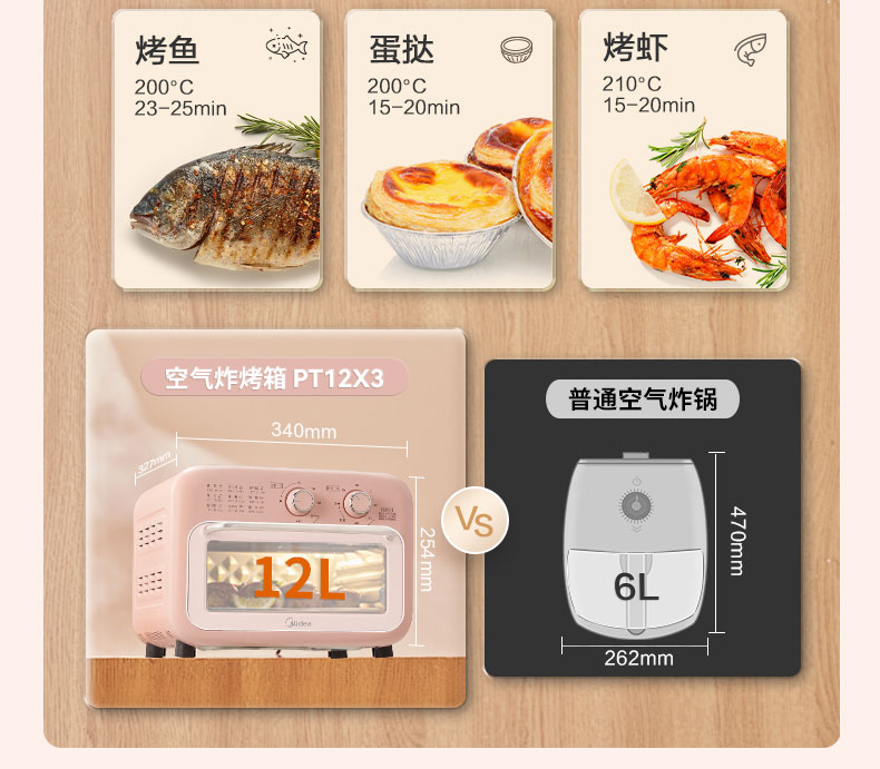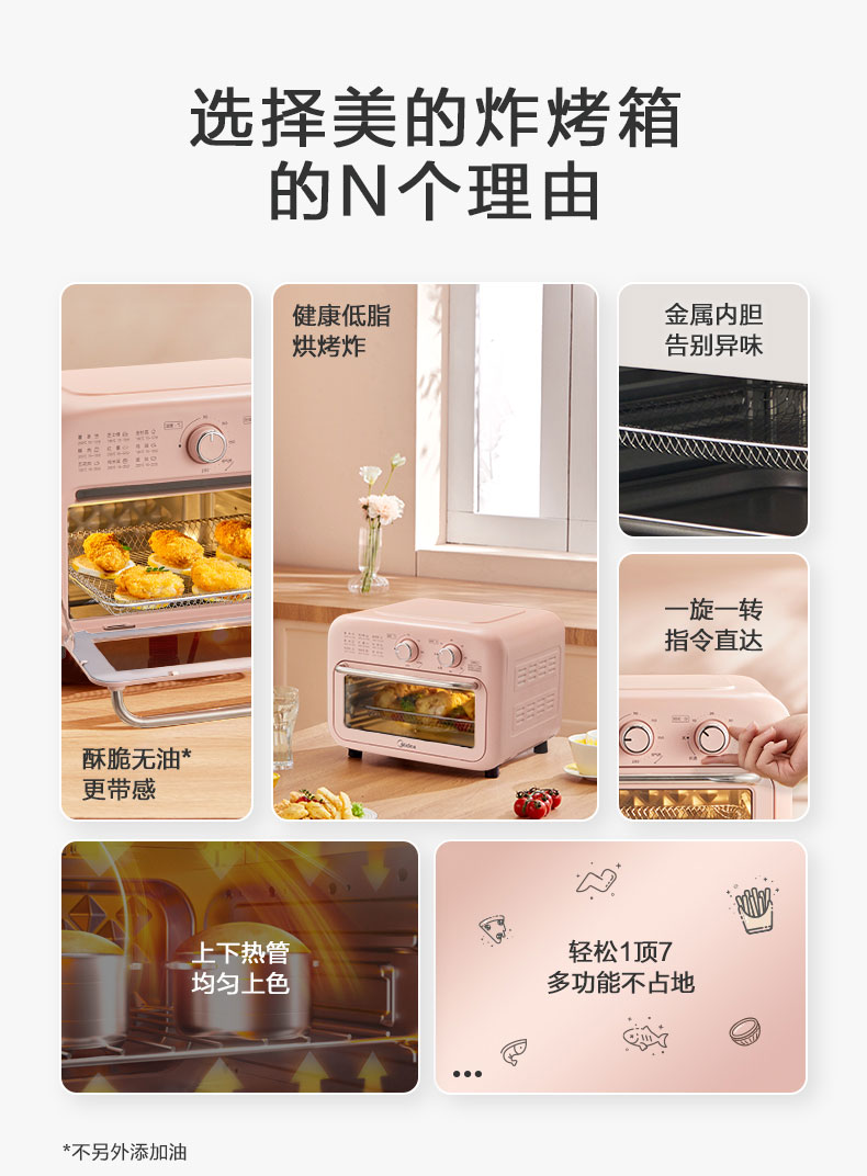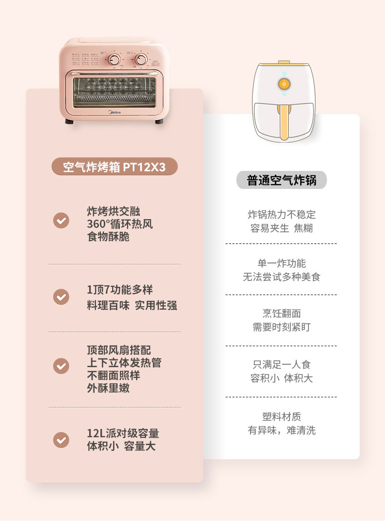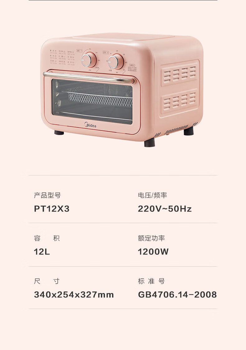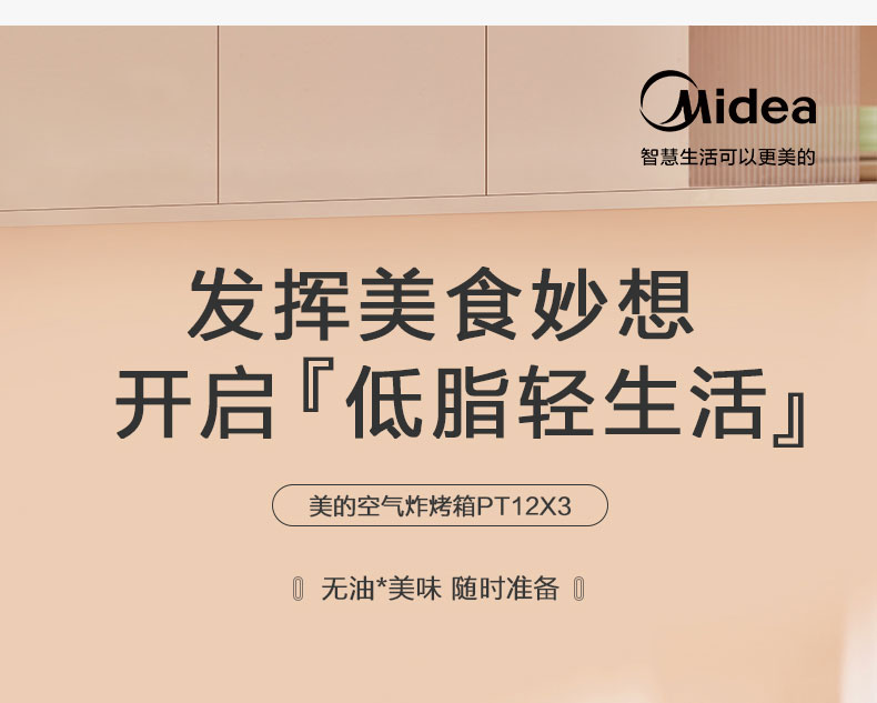 美的(Midea) 家用多功能 12L空气炸烤箱 360°循环热风 PT12X3 智能健康低脂烘烤炸