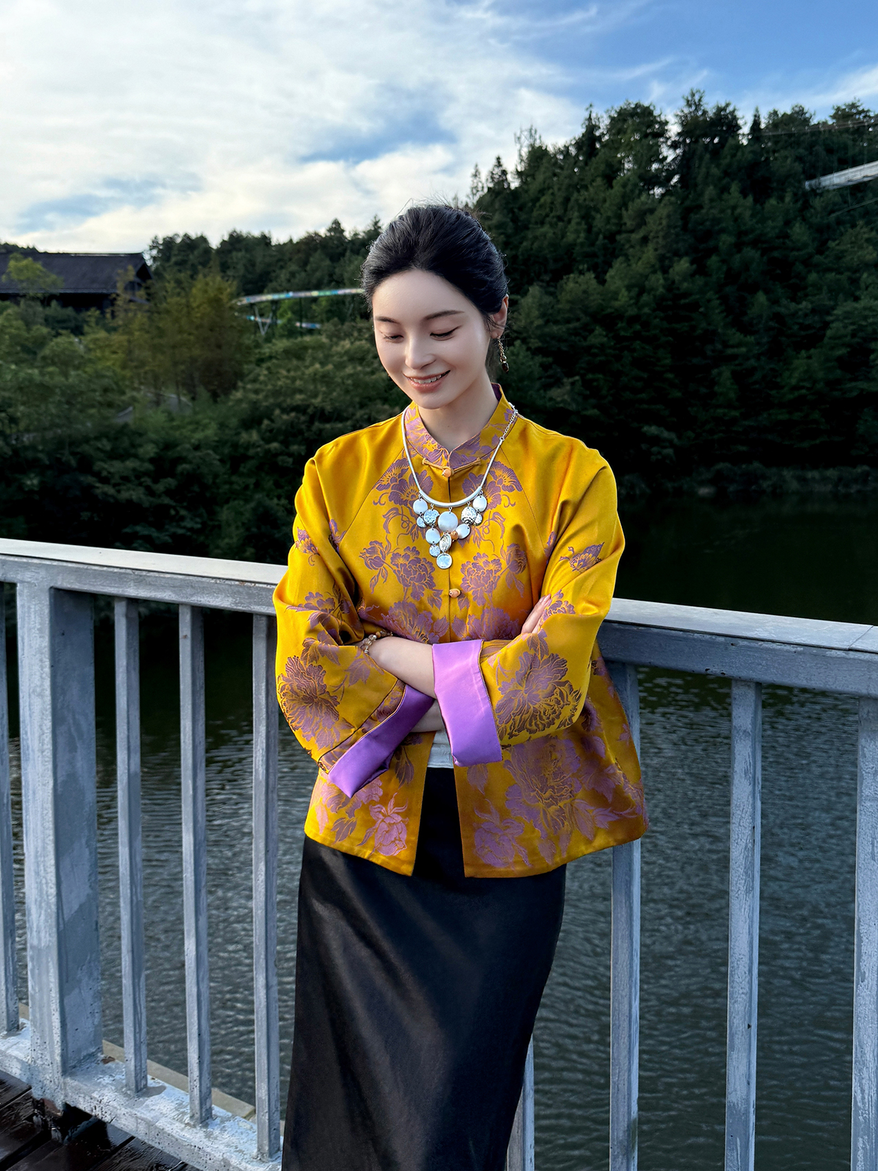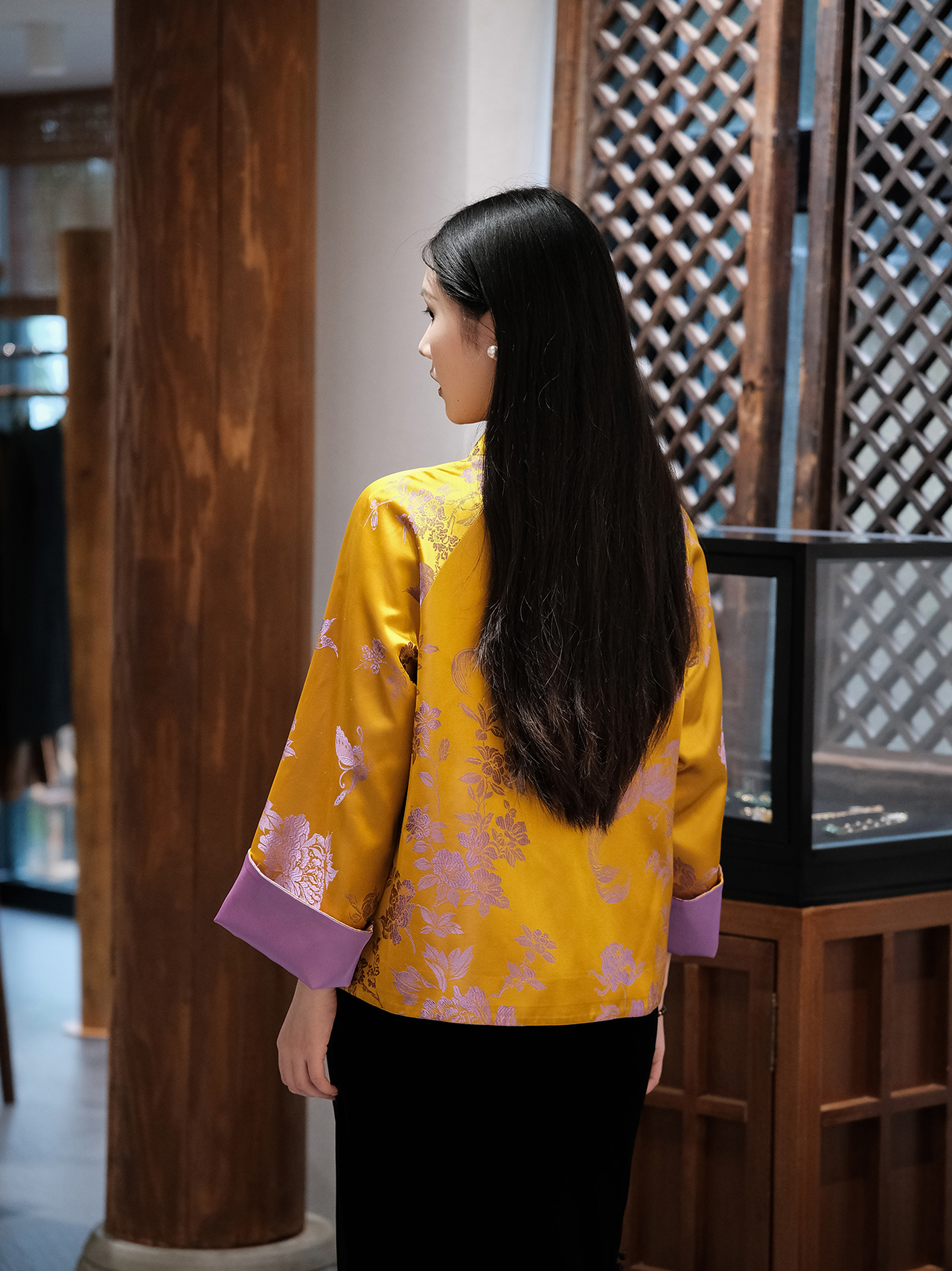 盛唐婧 | 轻奢新中式老缎提花对花对襟外套