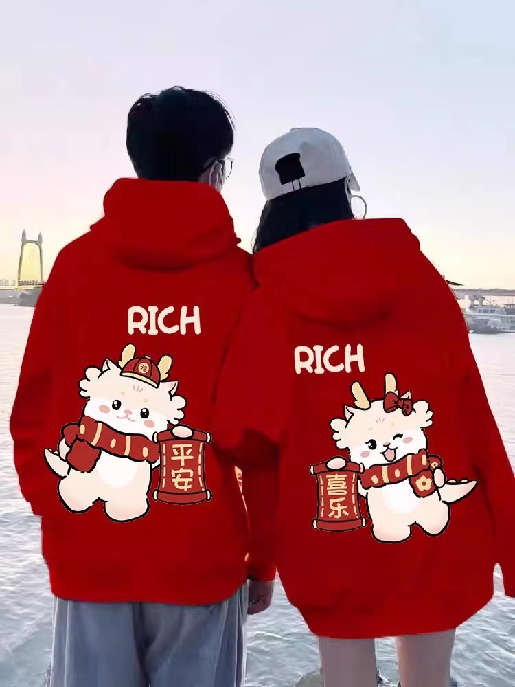 【大红色新款❗️蛇年新年卫衣】本命年、新年国潮情侣卫衣,火爆ins宽松连帽上衣,大红色保暖加绒男女款❗️春节过年时尚长袖父亲节礼物新年礼盒年货礼盒