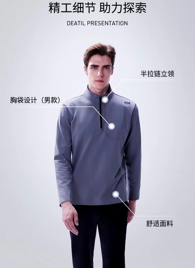 男款运动舒适内里加绒保暖半拉链长袖T抓绒轻柔舒适半拉链套头衫,半拉链套头立领设计!日常百搭易穿搭,胸前隐形口袋,提供更多储物空间。采用质地柔软空气层抓绒面料制作,面料触感细腻,柔软舒适,亲肤保暖。简约基础版型,不挑身形,适合多身形穿着!适合多季节穿搭,春秋单穿,漫步山野。冬季内搭,做中间层,保暖舒适