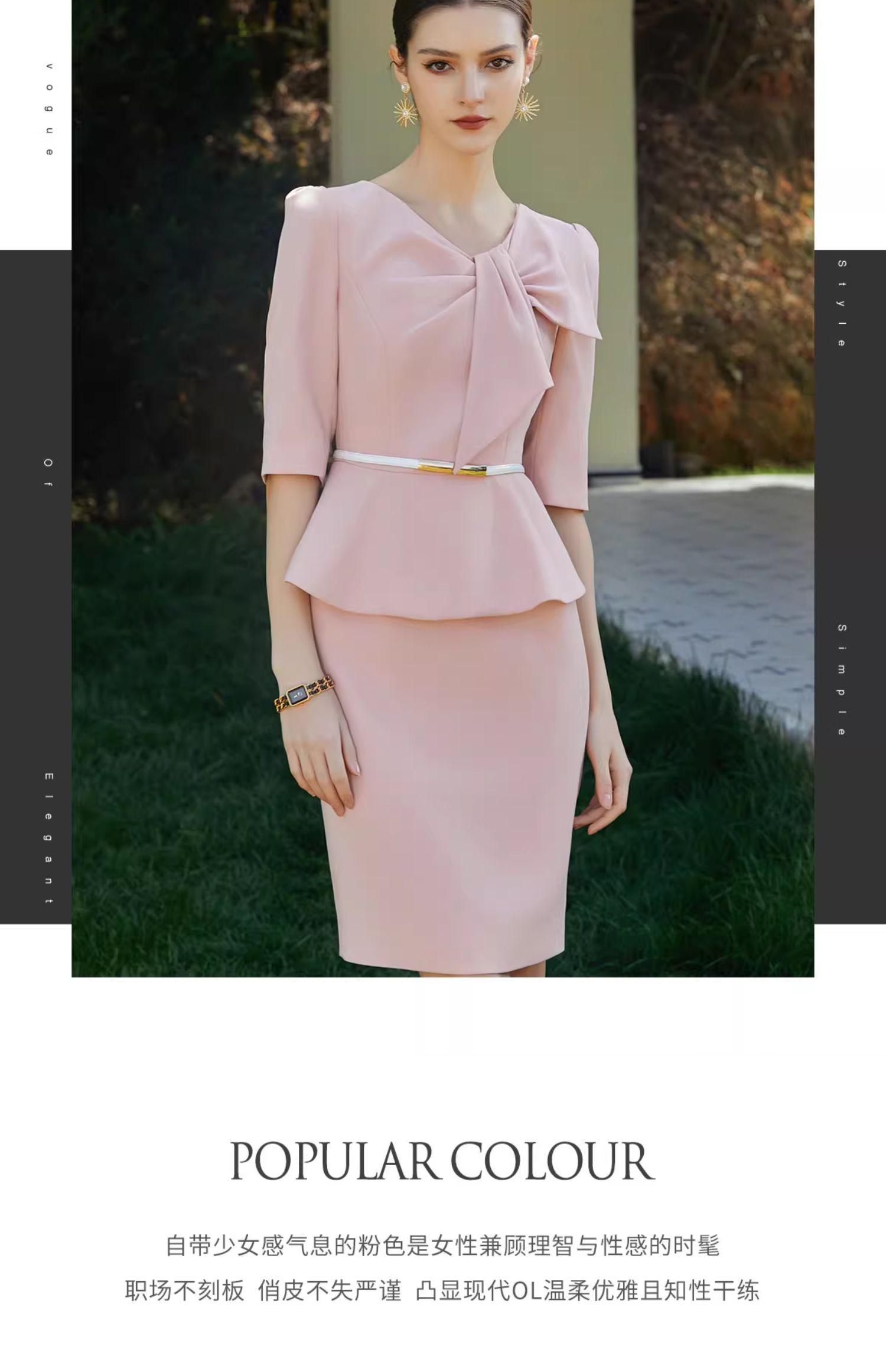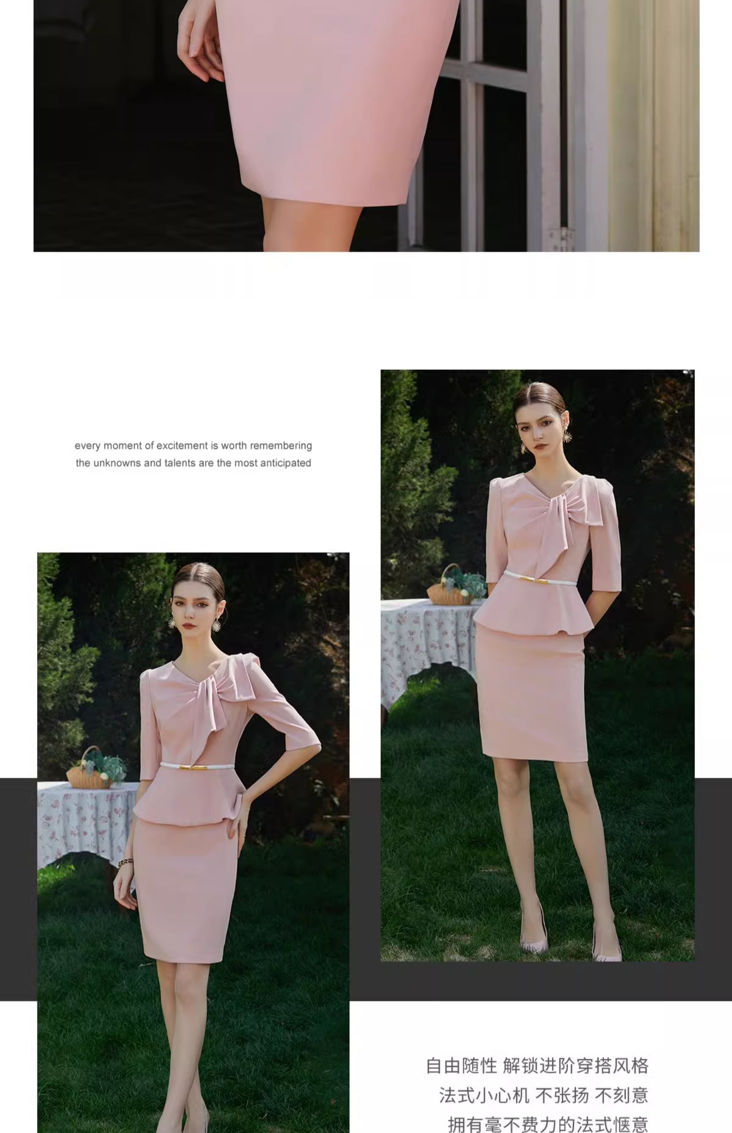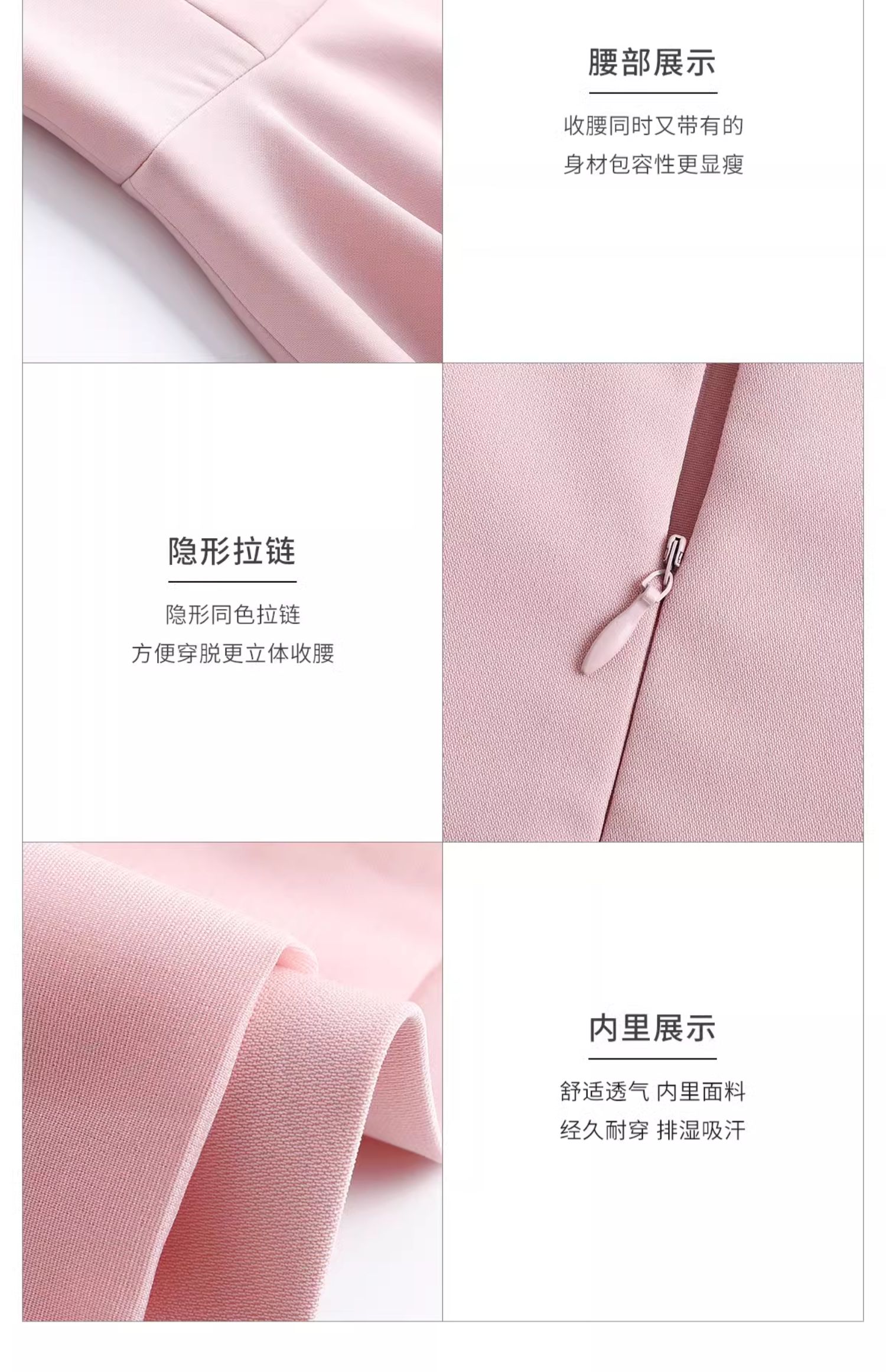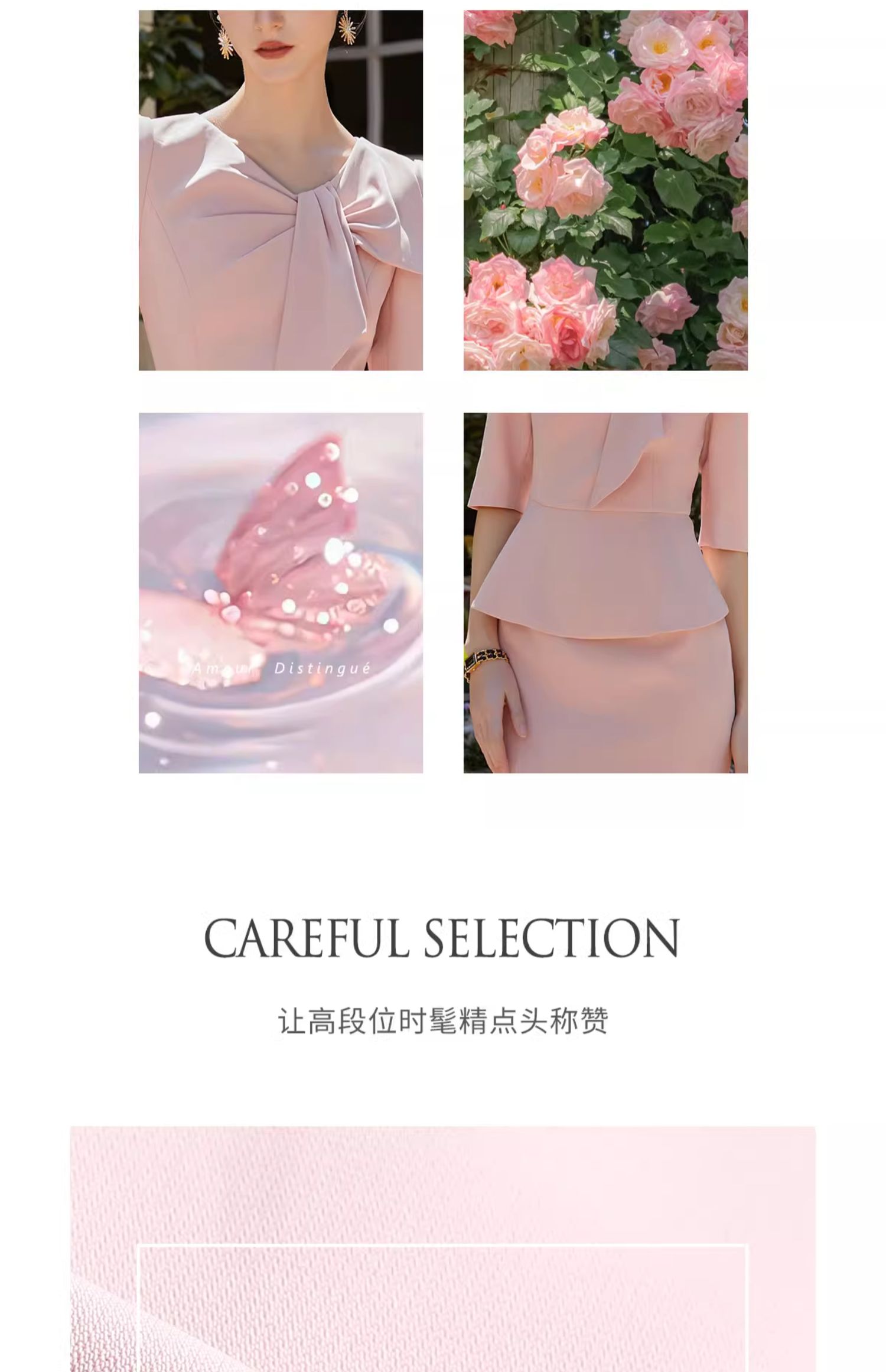 AD空姐制服职业套装高端粉色连衣裙女2024新款名媛范假两件西装裙