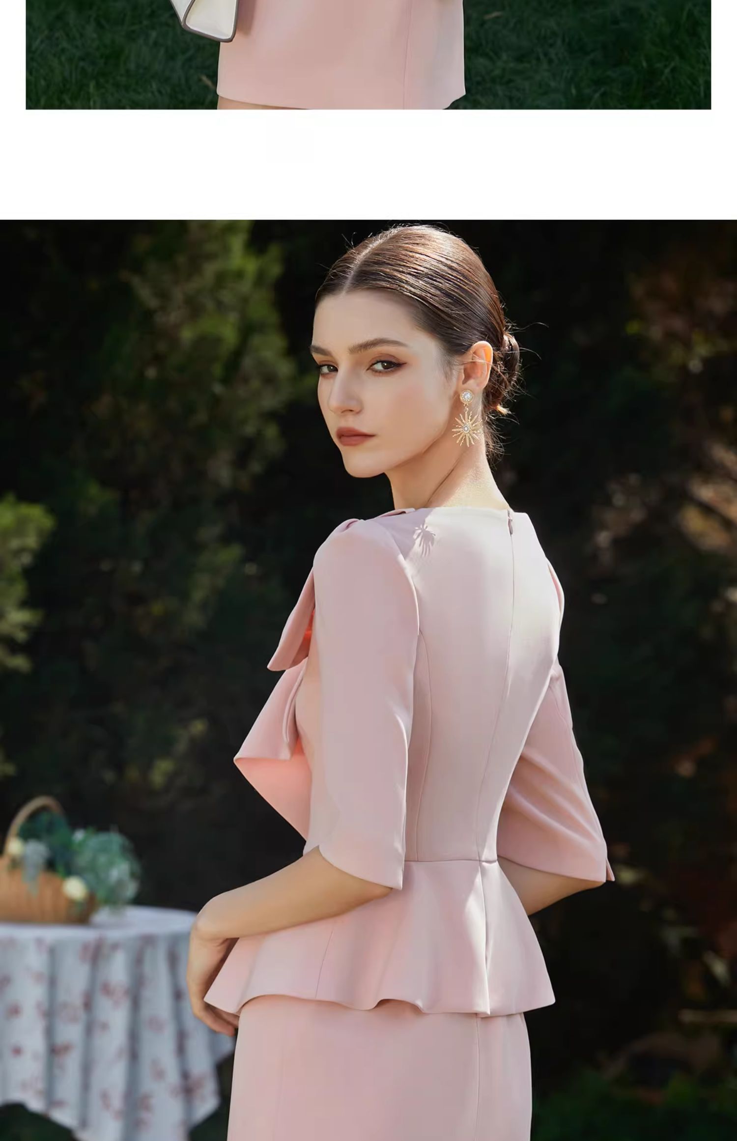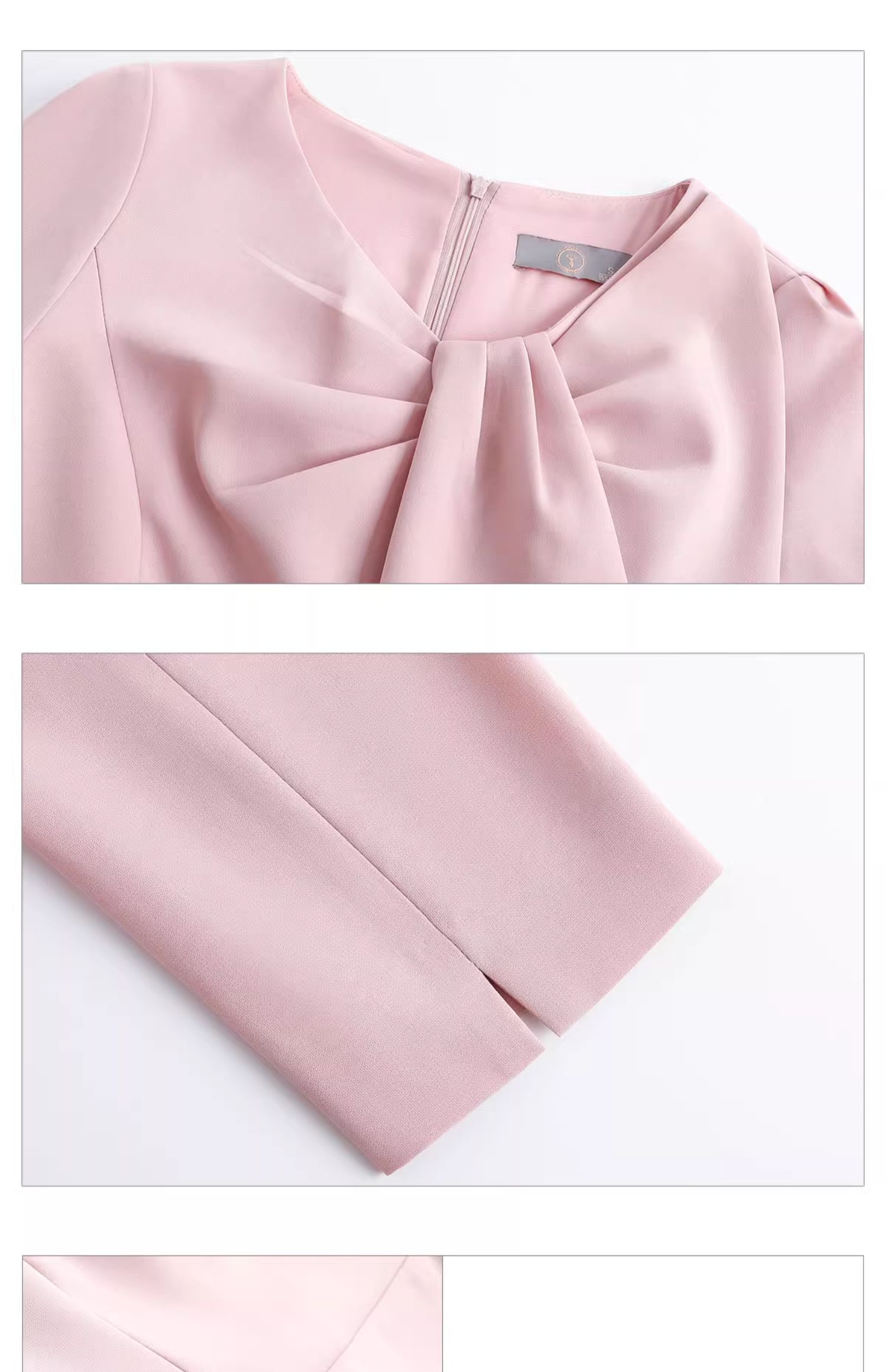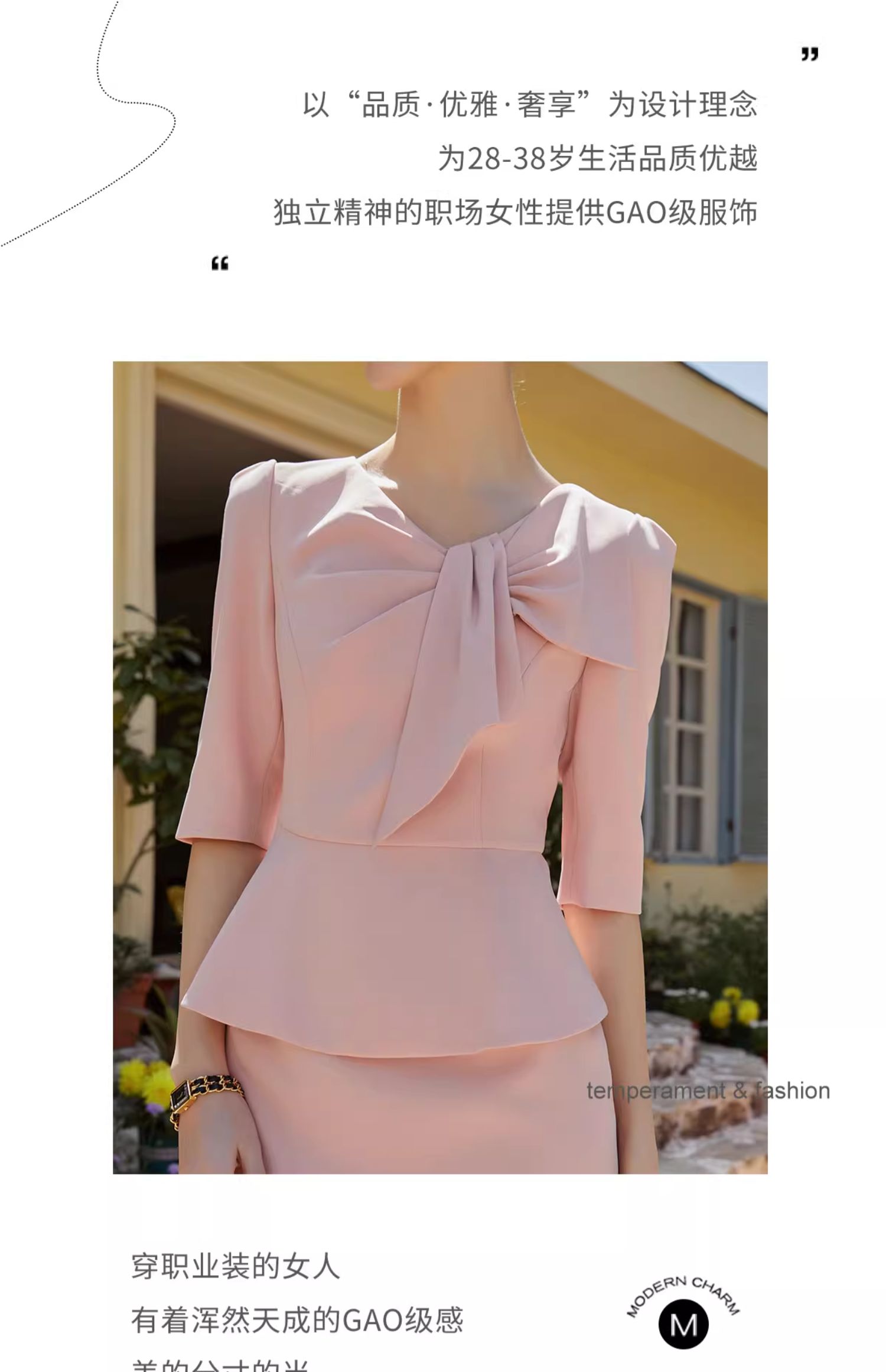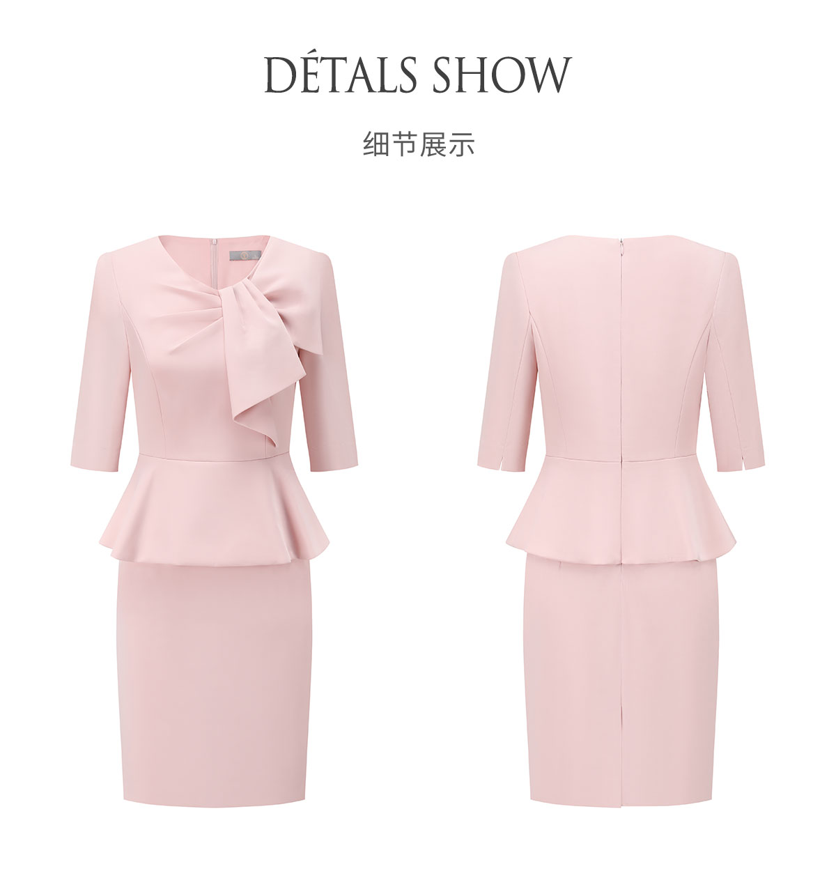 AD空姐制服职业套装高端粉色连衣裙女2024新款名媛范假两件西装裙