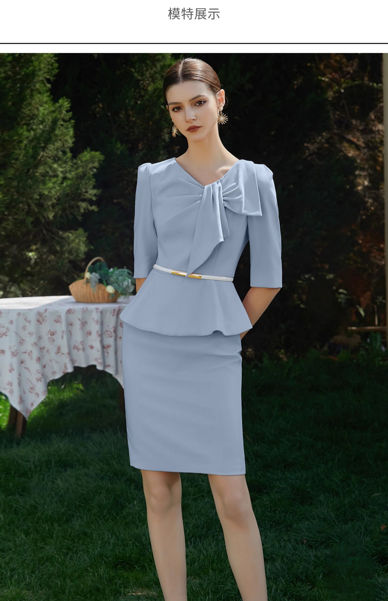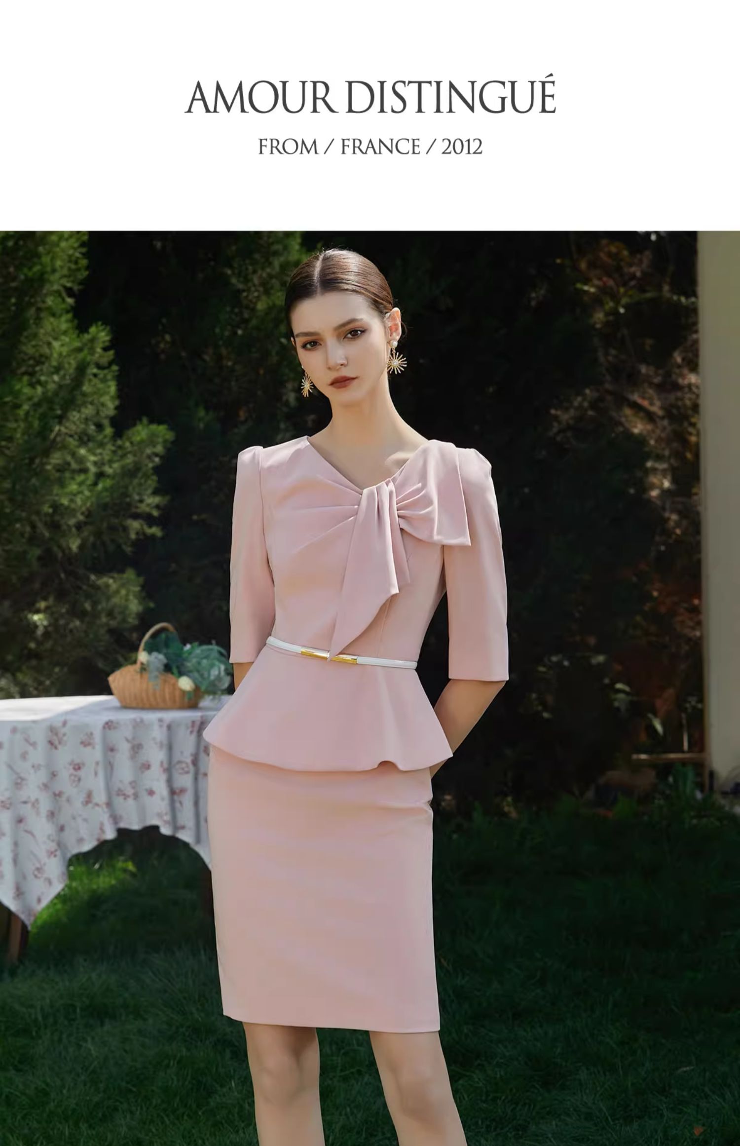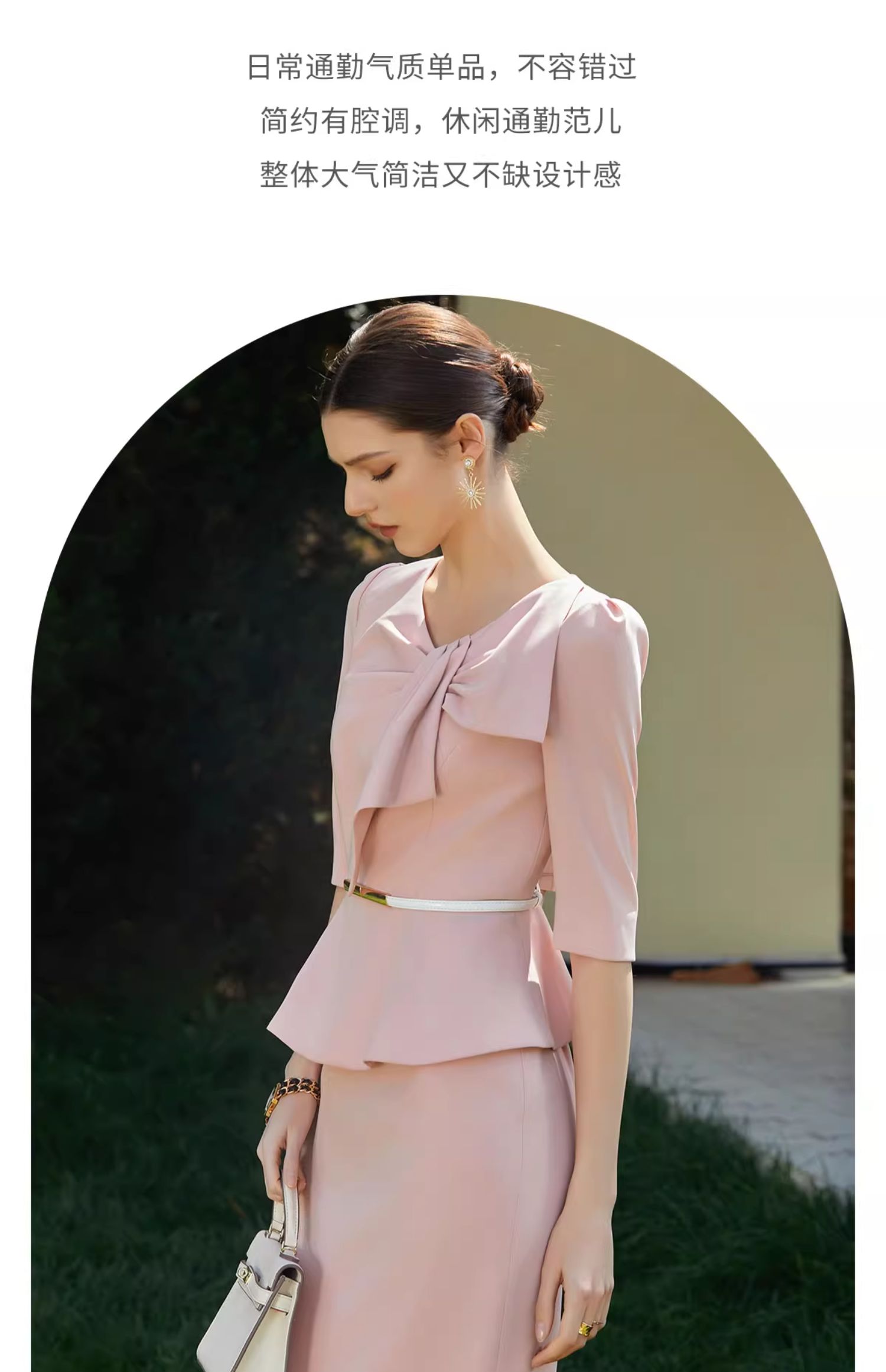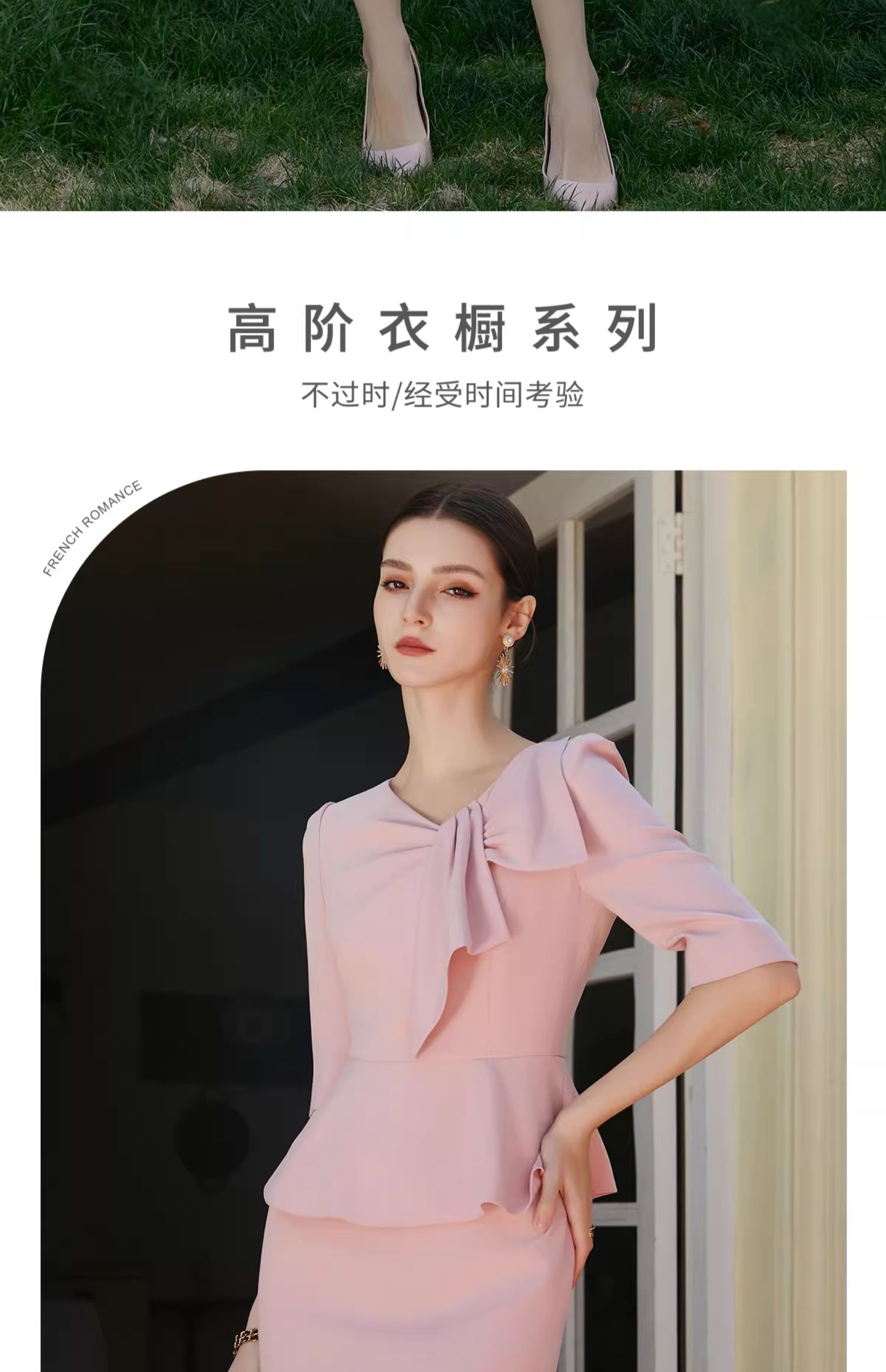AD空姐制服职业套装高端粉色连衣裙女2024新款名媛范假两件西装裙
