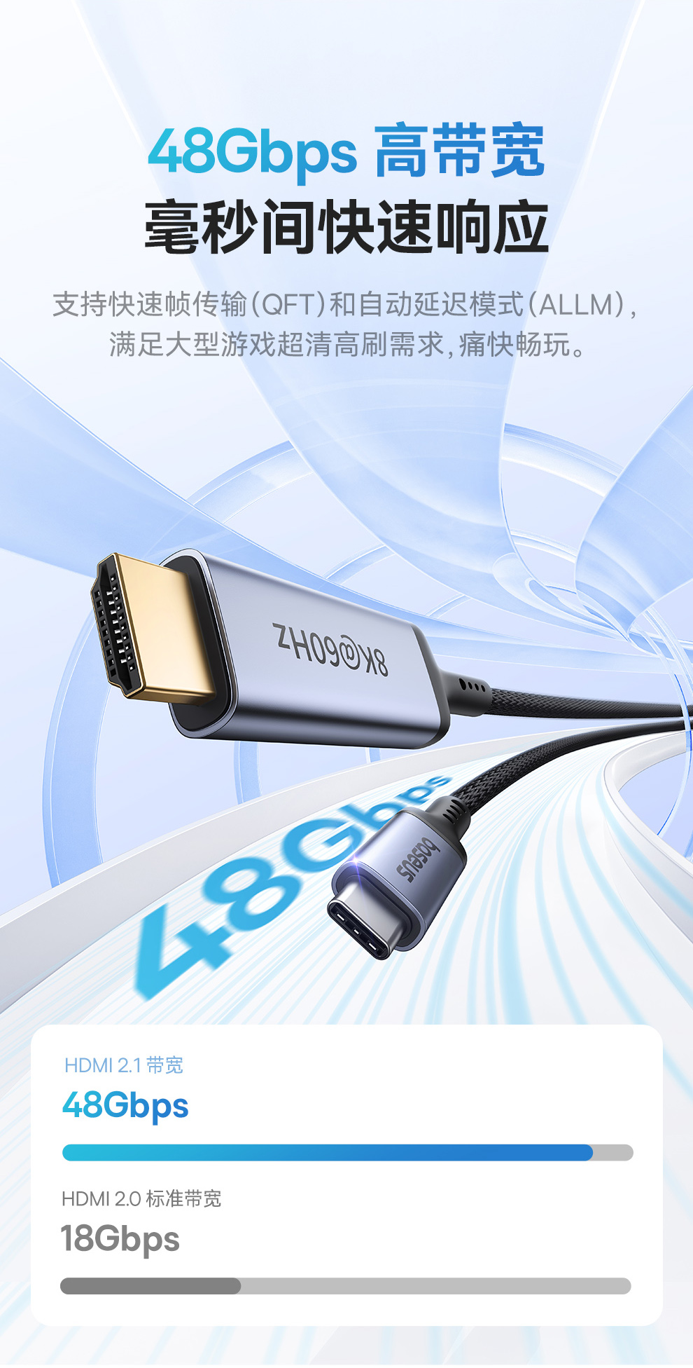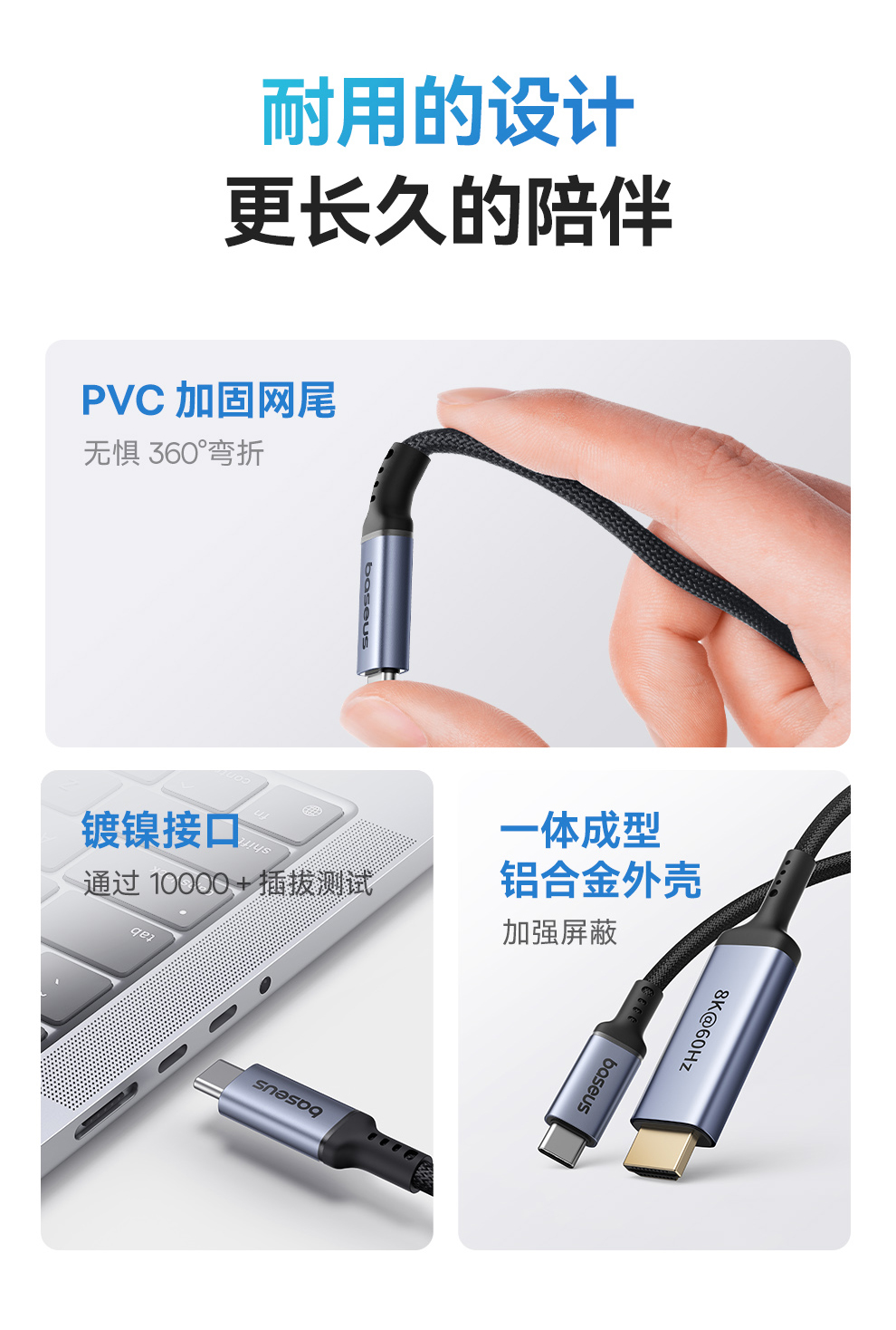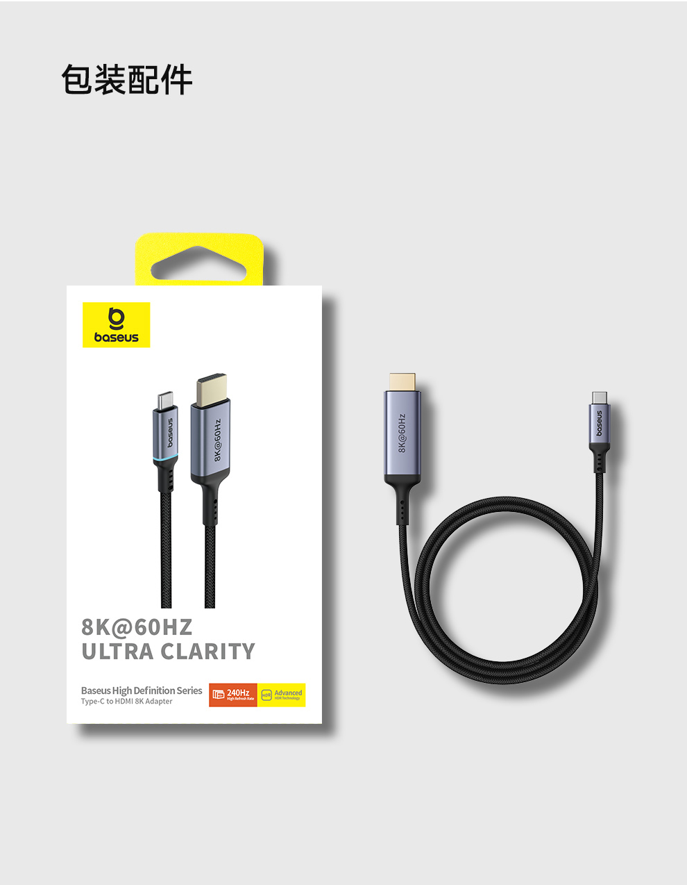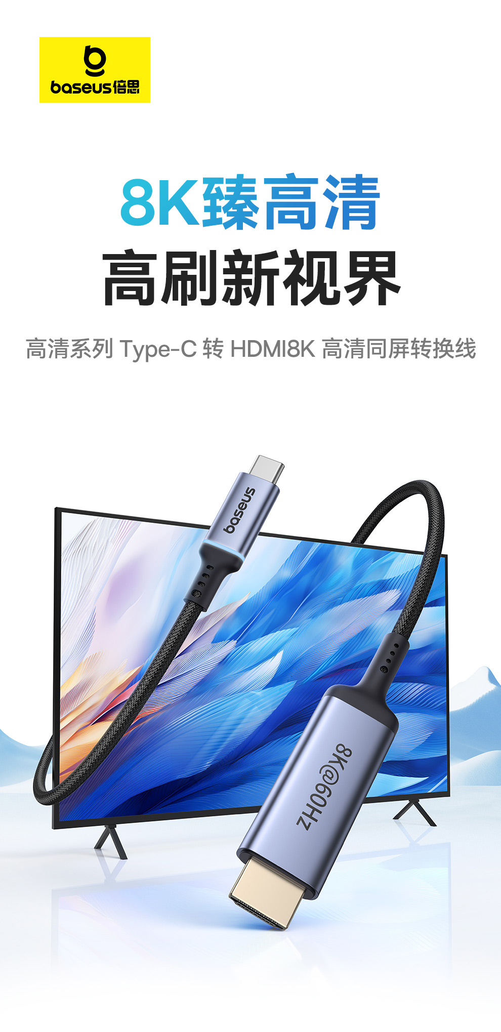 倍思 高清系列 Type-C 转 HDMI 8K 高清同屏转换线