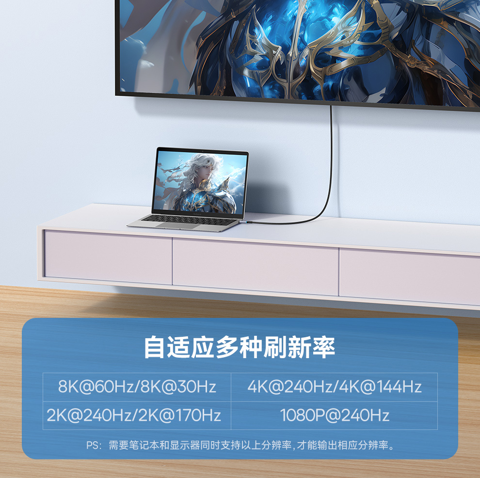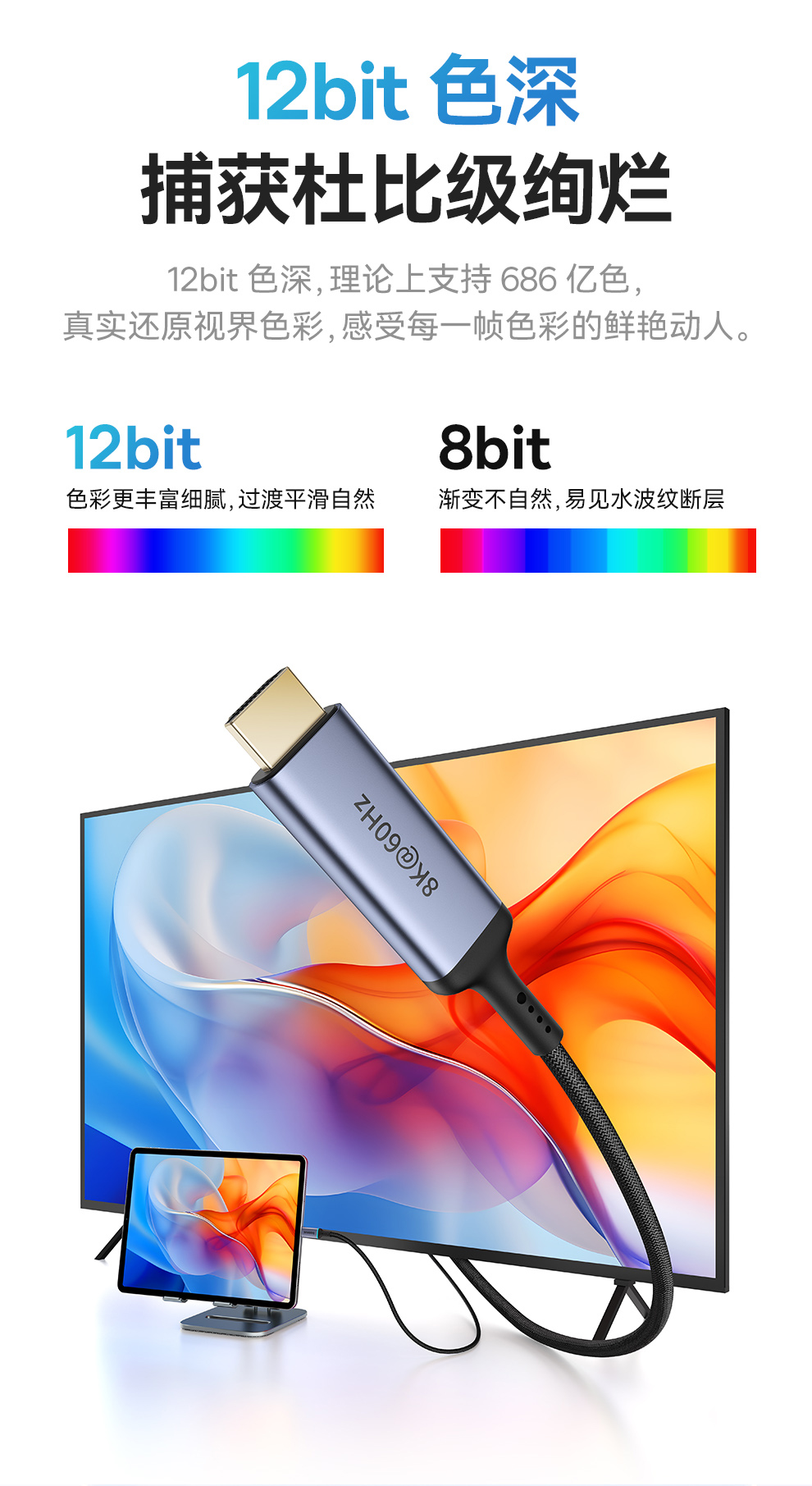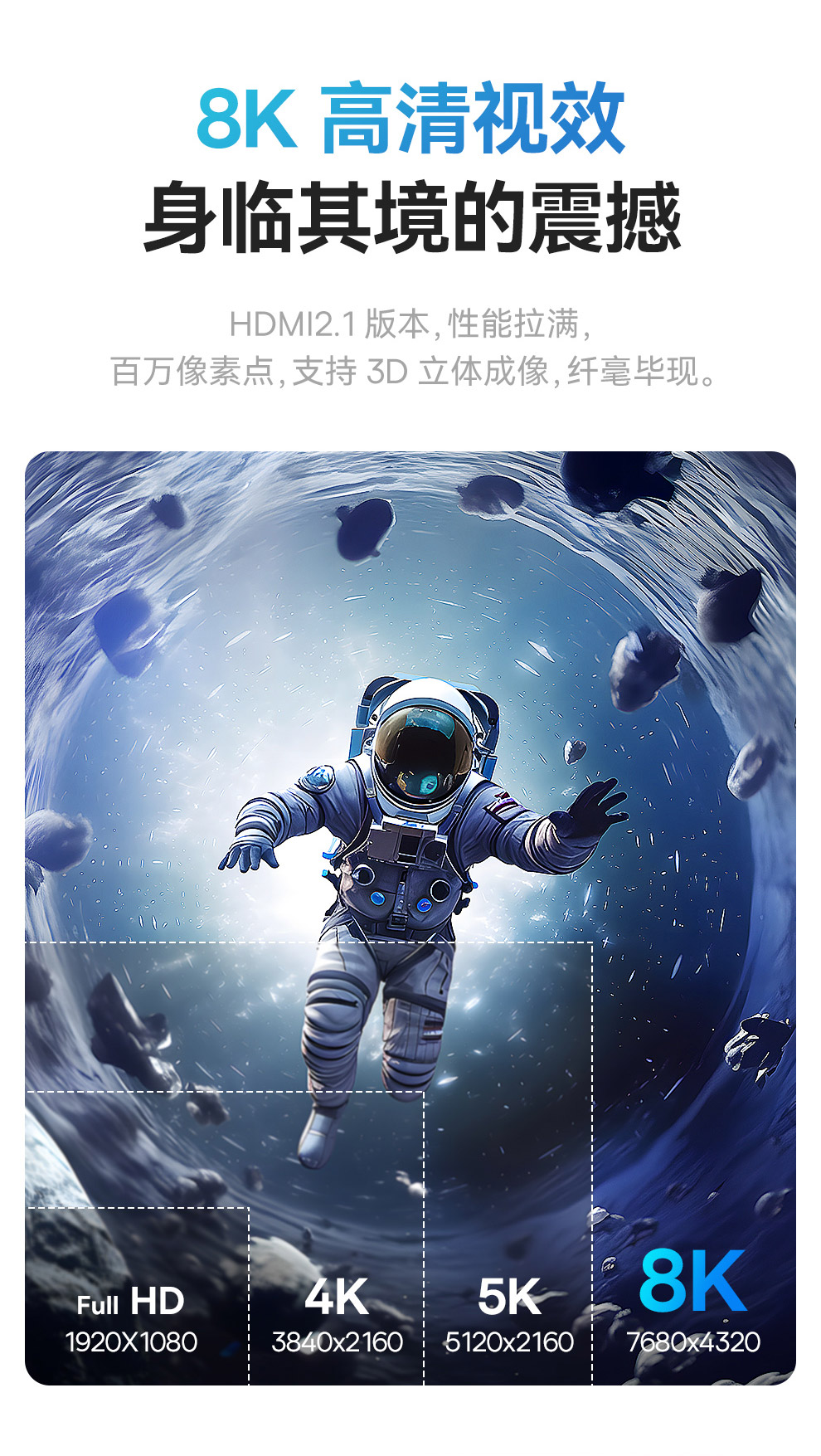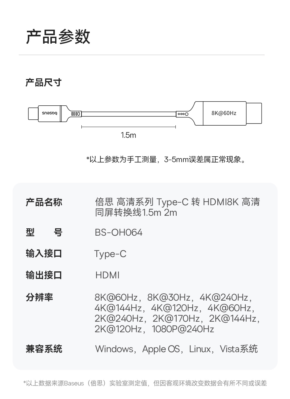 倍思 高清系列 Type-C 转 HDMI 8K 高清同屏转换线