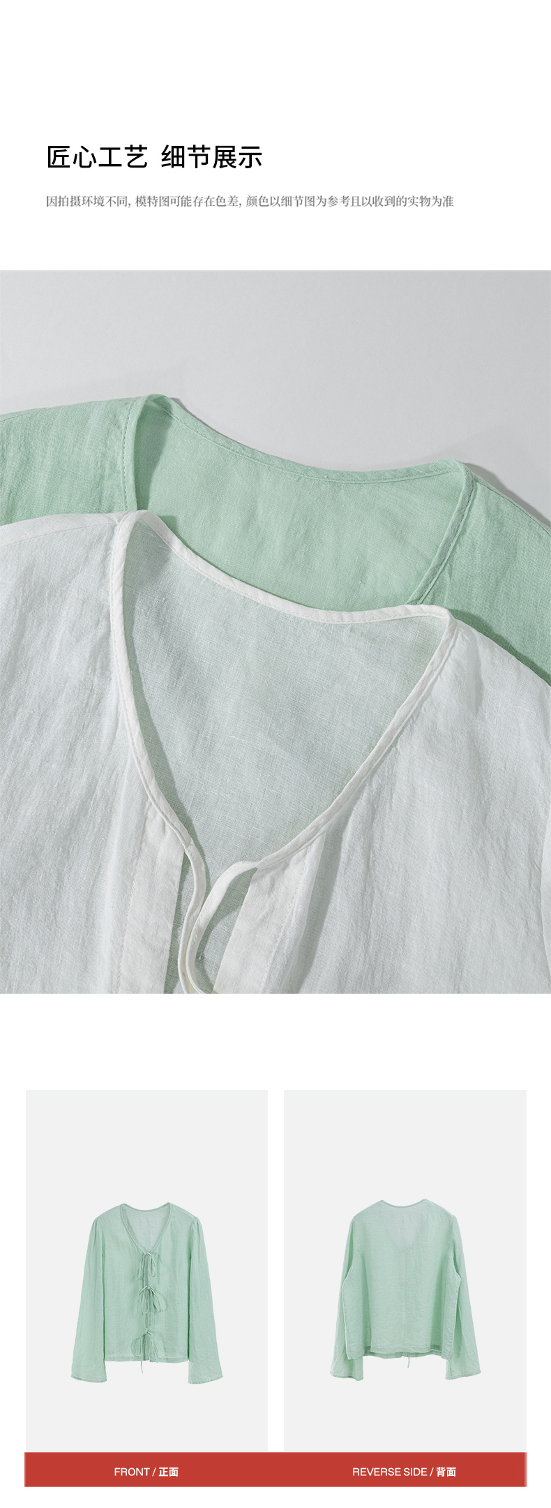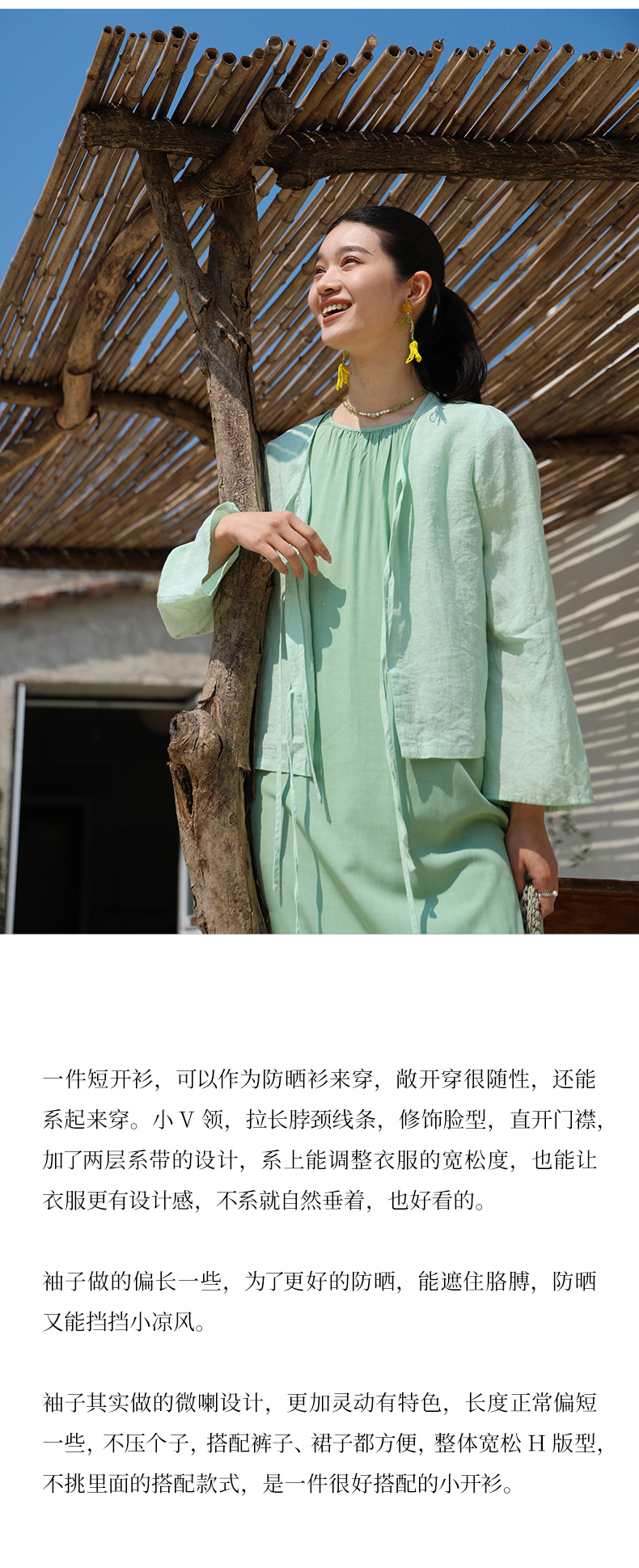 绽放旅行女装246朵/超细高支高密砂洗亚麻系带短开衫防晒衫短外套
