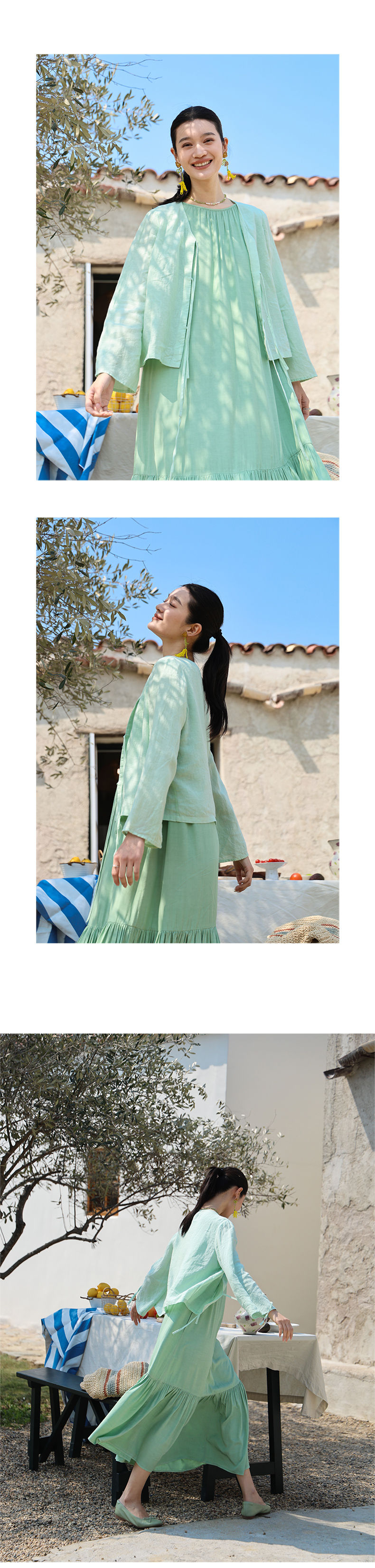 以天然亚麻为载体,融合热烈色彩与自在剪裁为身在城市、心怀远方的女性提供兼具美学与舒适的旅行着装