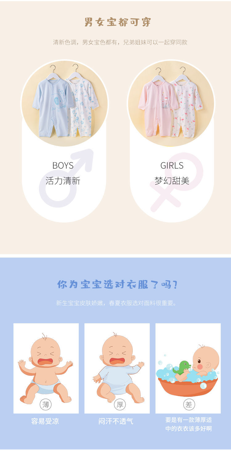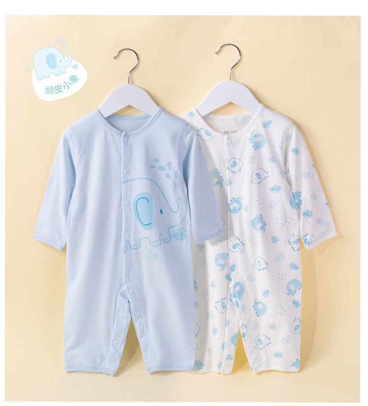 贝贝怡童装新生儿衣服春秋季宝宝婴儿连体衣纯棉哈衣爬爬服2件装211L472