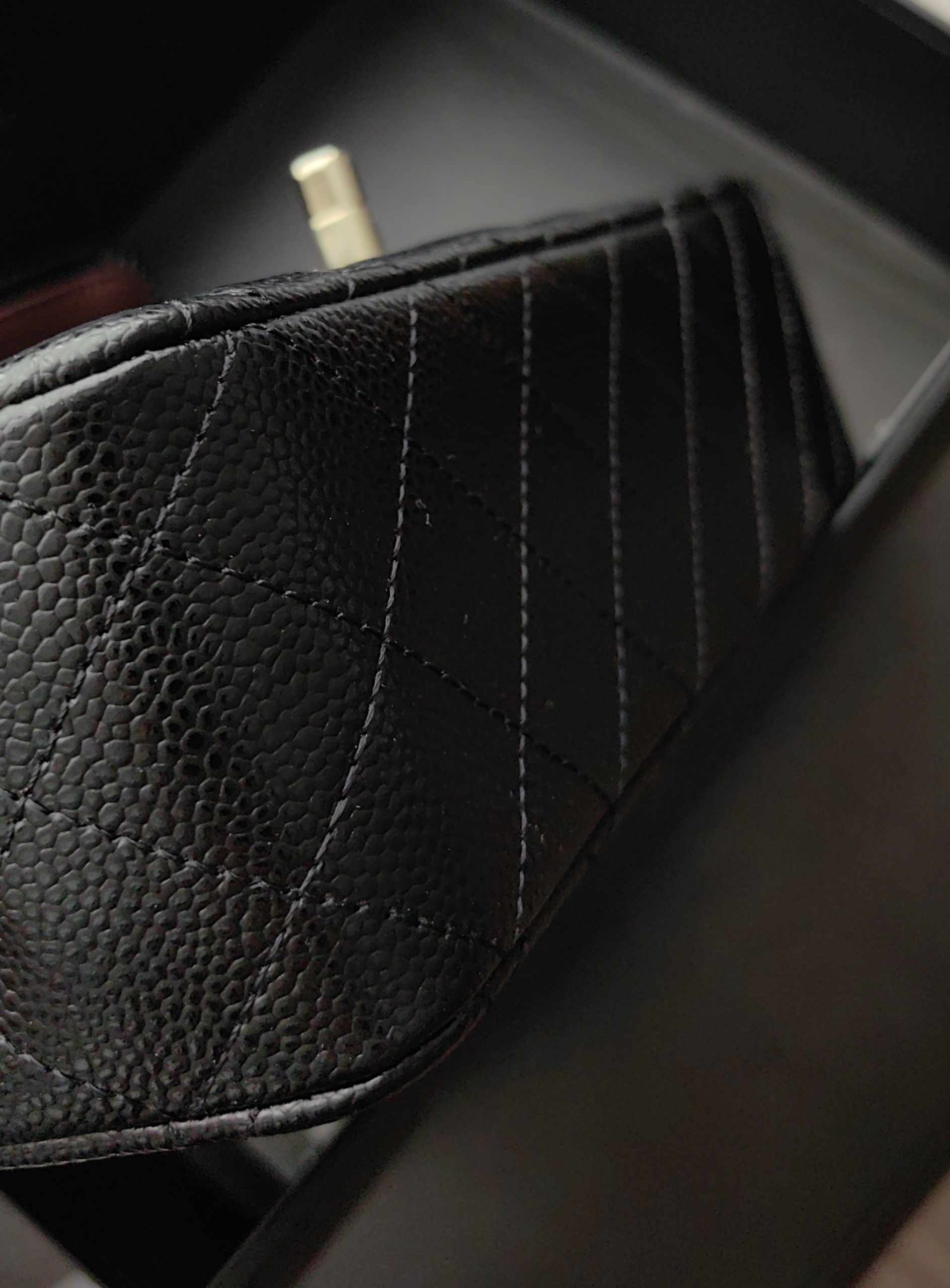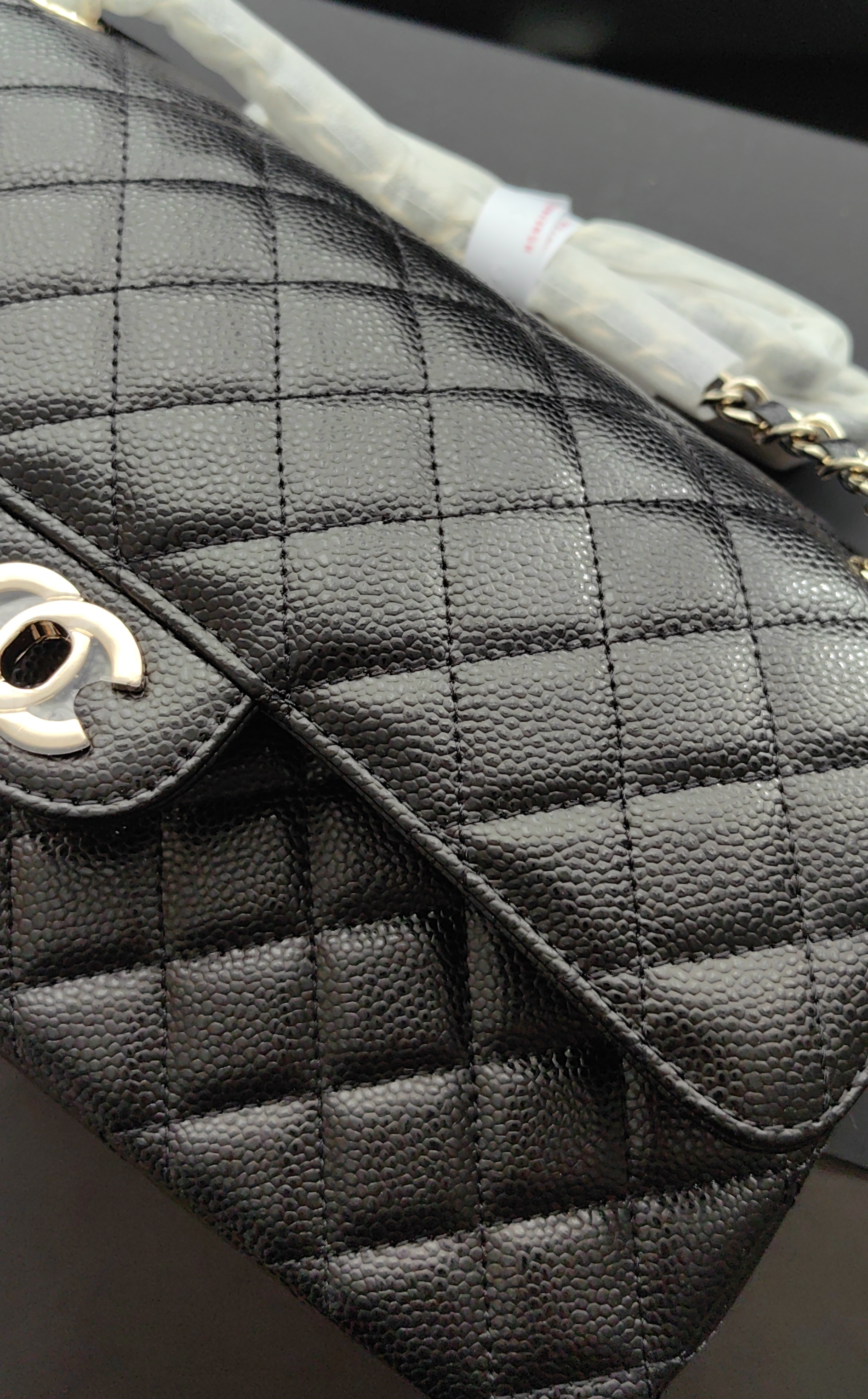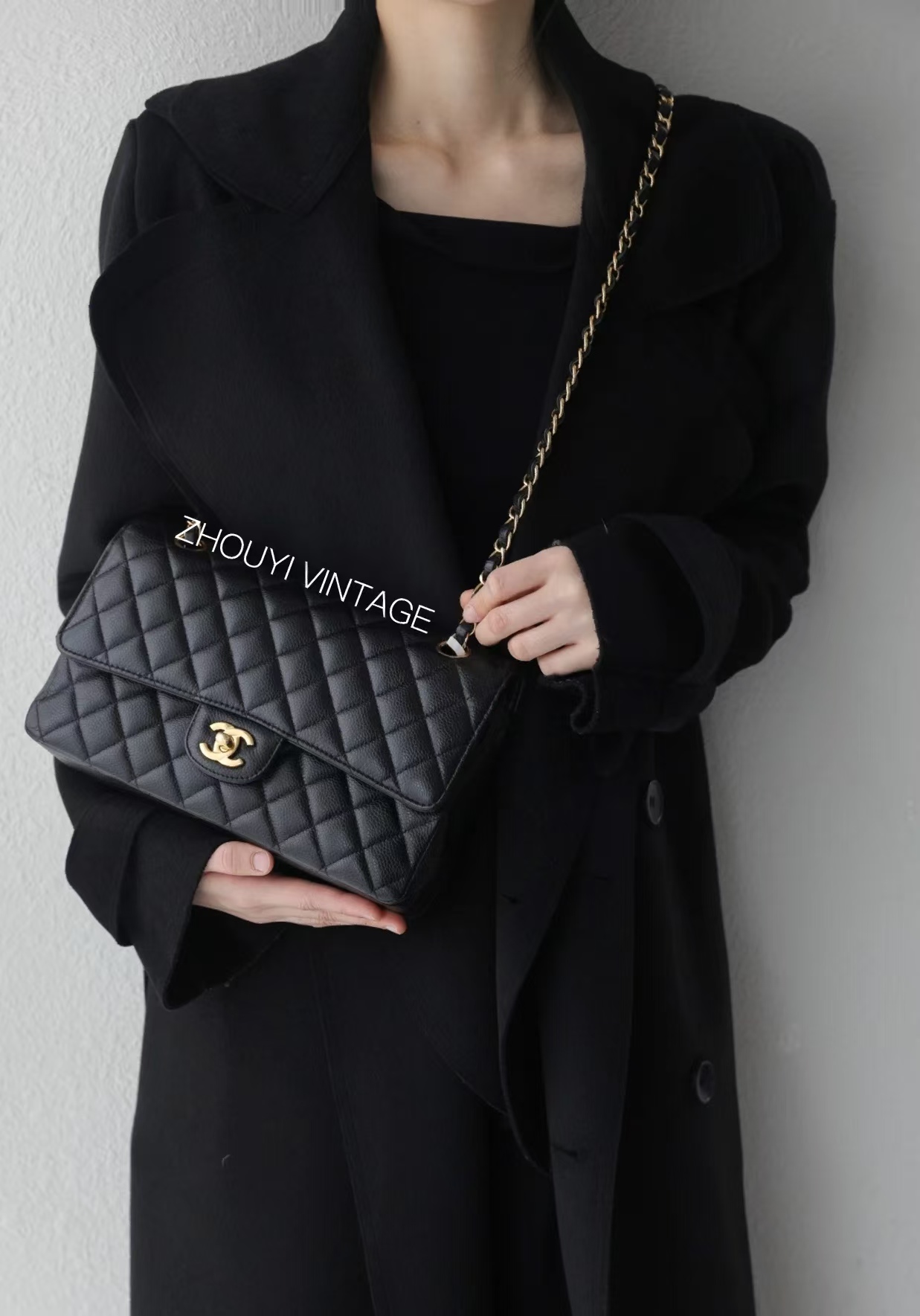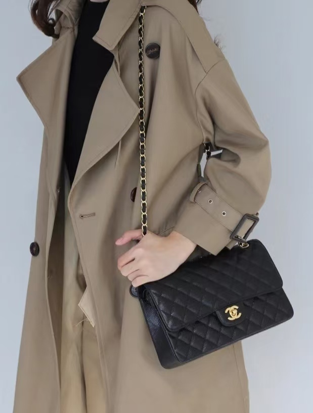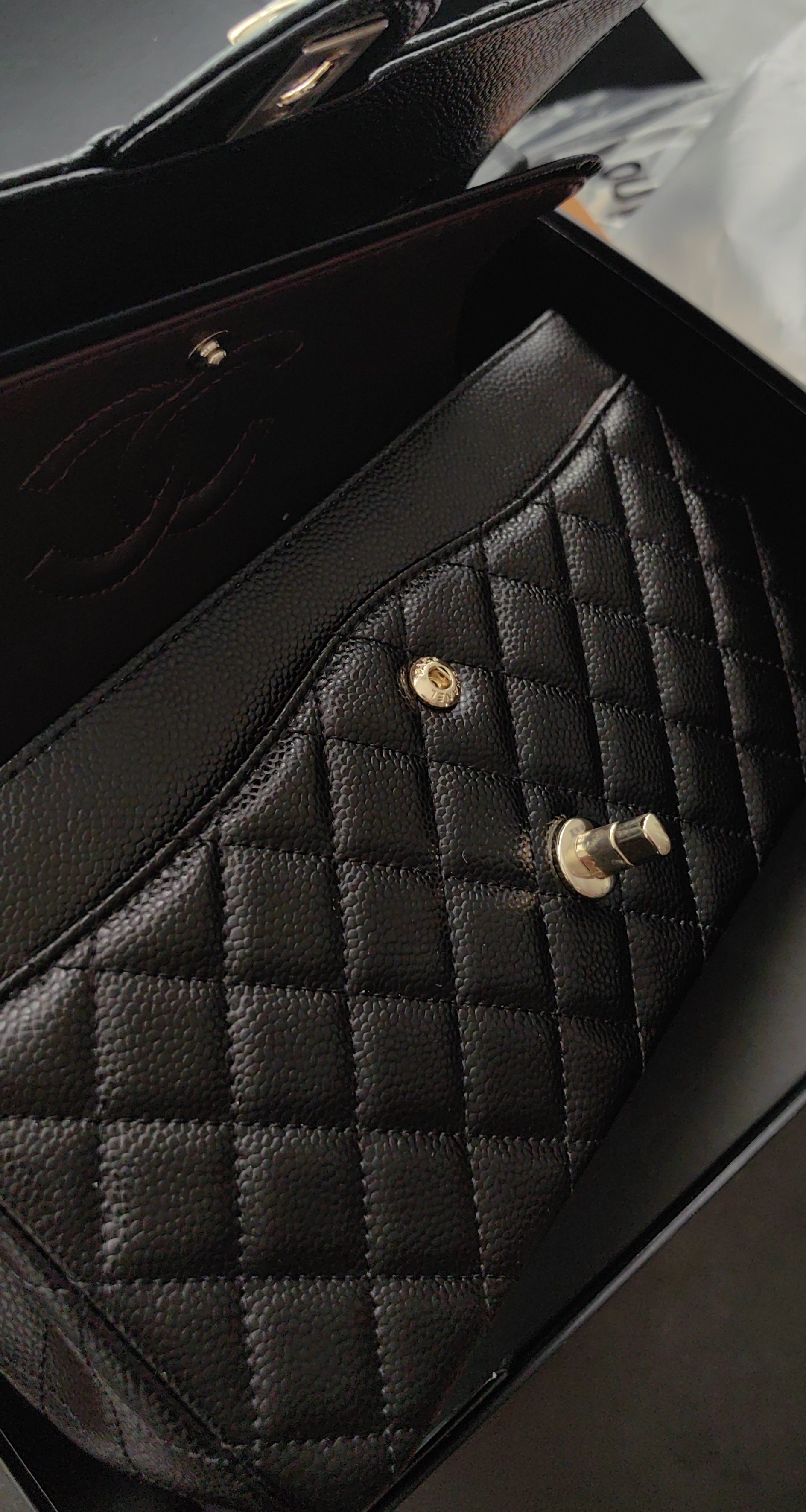 解救所有场合经典CF,进口鱼子酱皮,质感无敌好。高档包进出工作会议日常背毫无压力。长26cm,高16cm,底宽7cm
