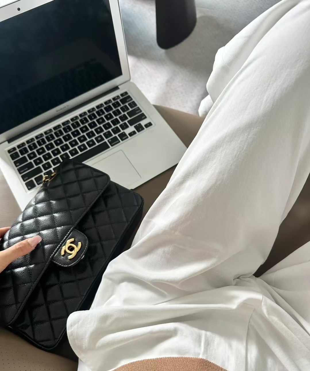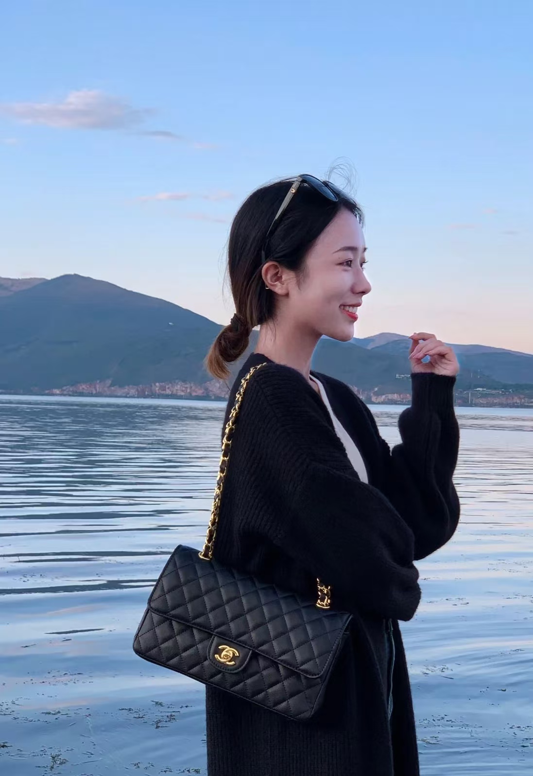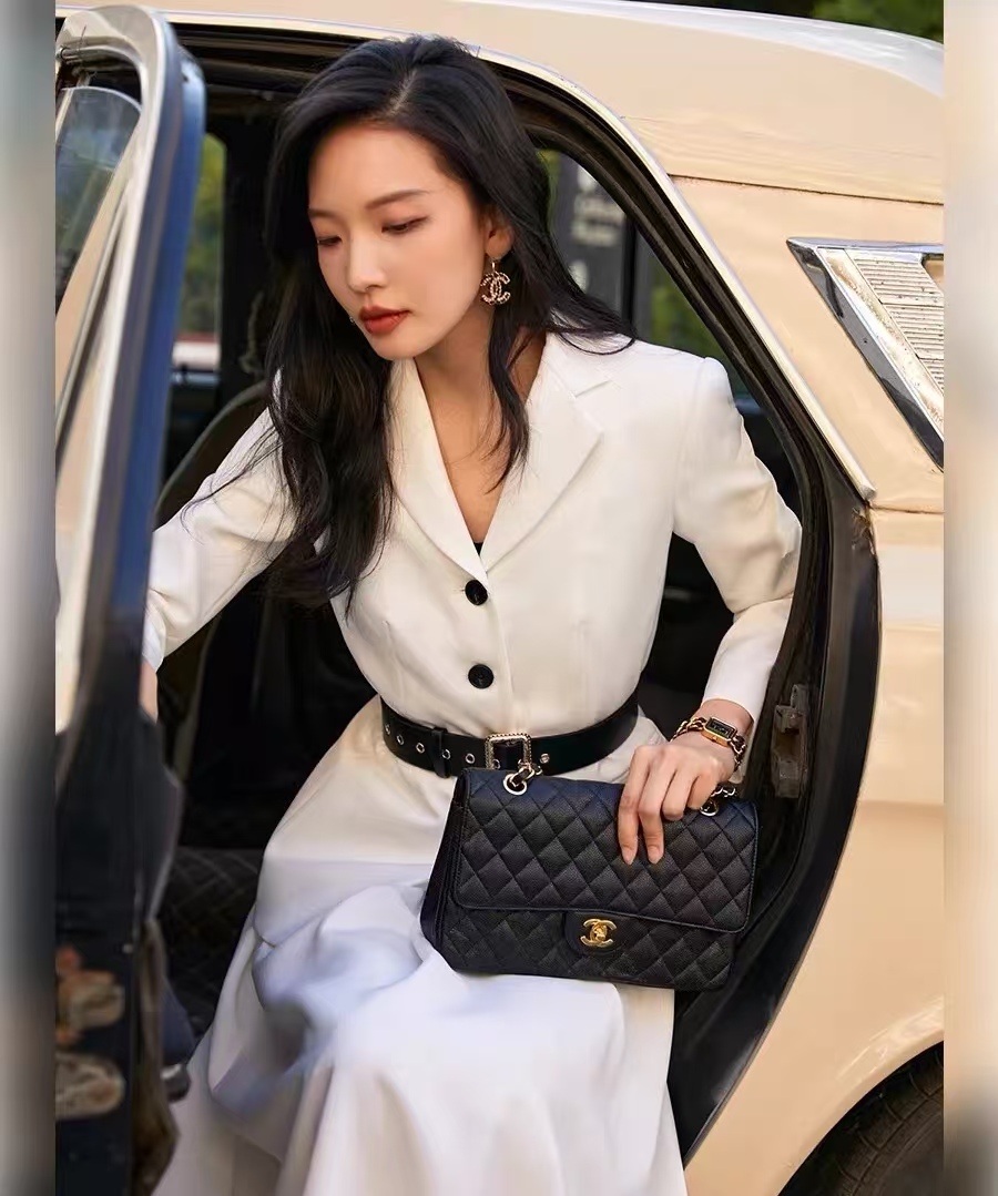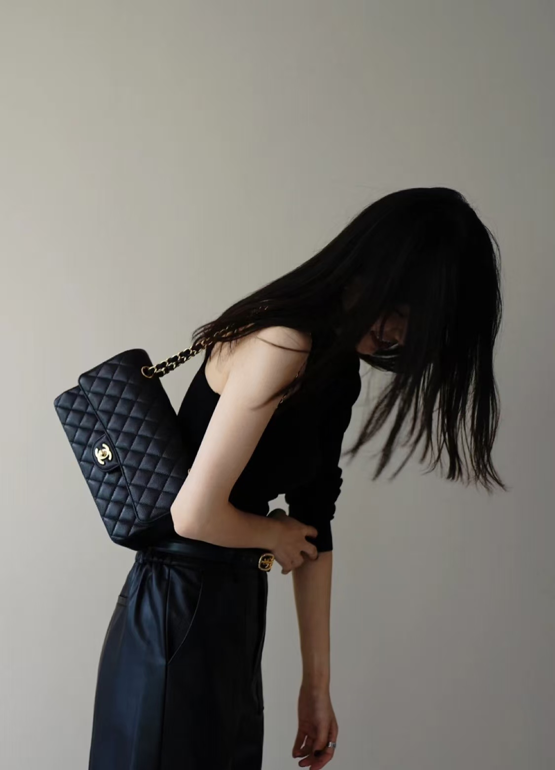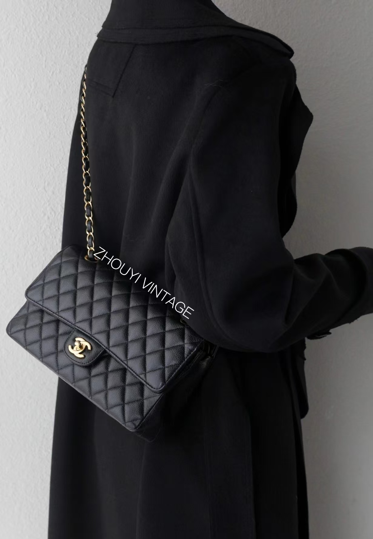 解救所有场合经典CF,进口鱼子酱皮,质感无敌好。高档包进出工作会议日常背毫无压力。长26cm,高16cm,底宽7cm