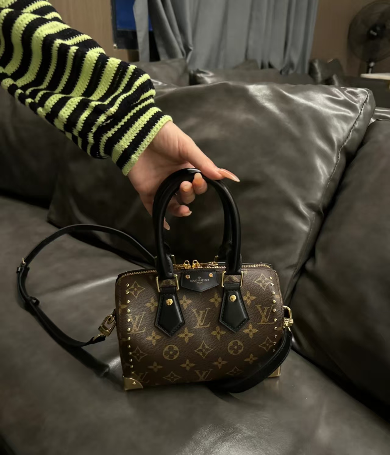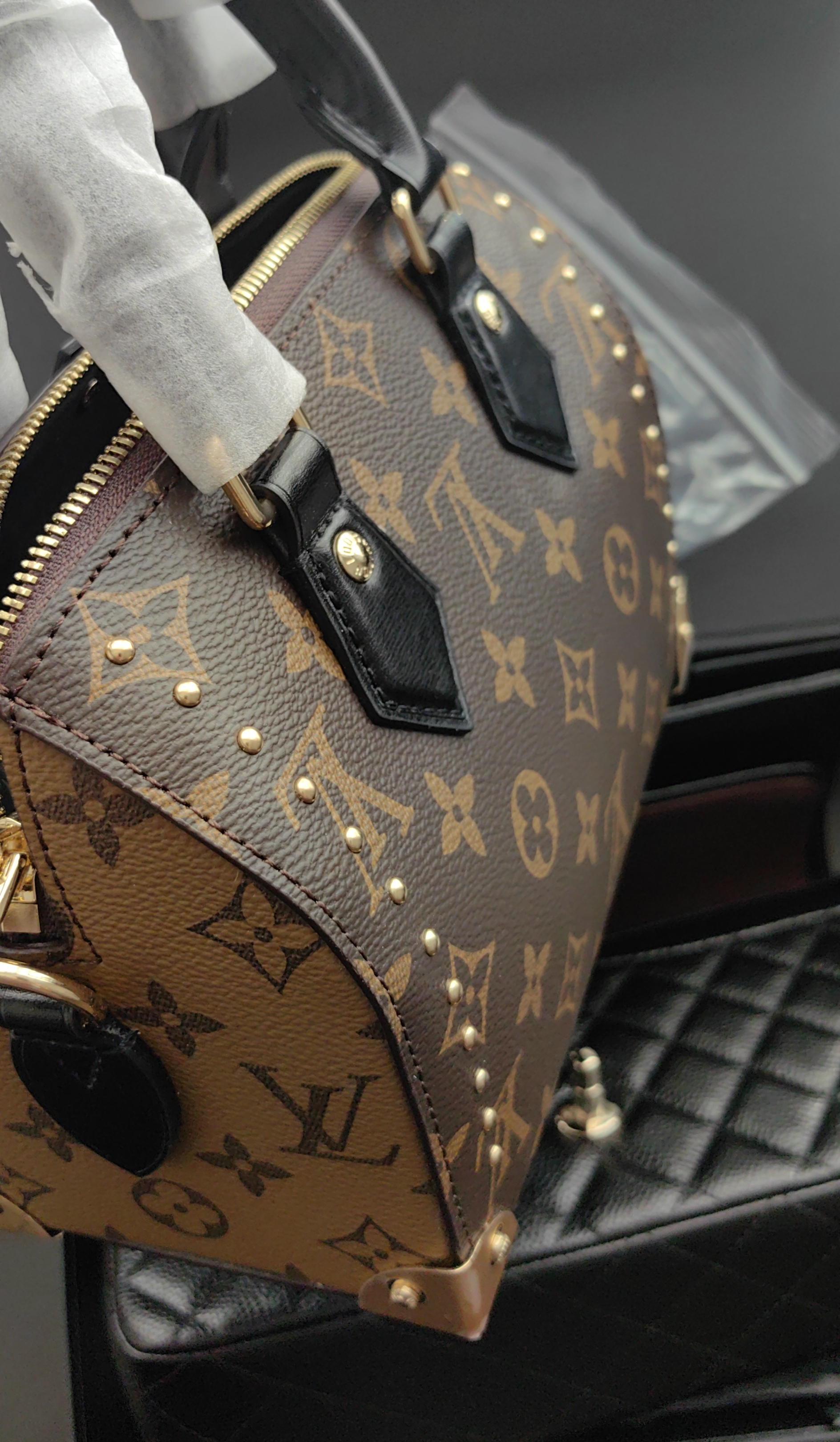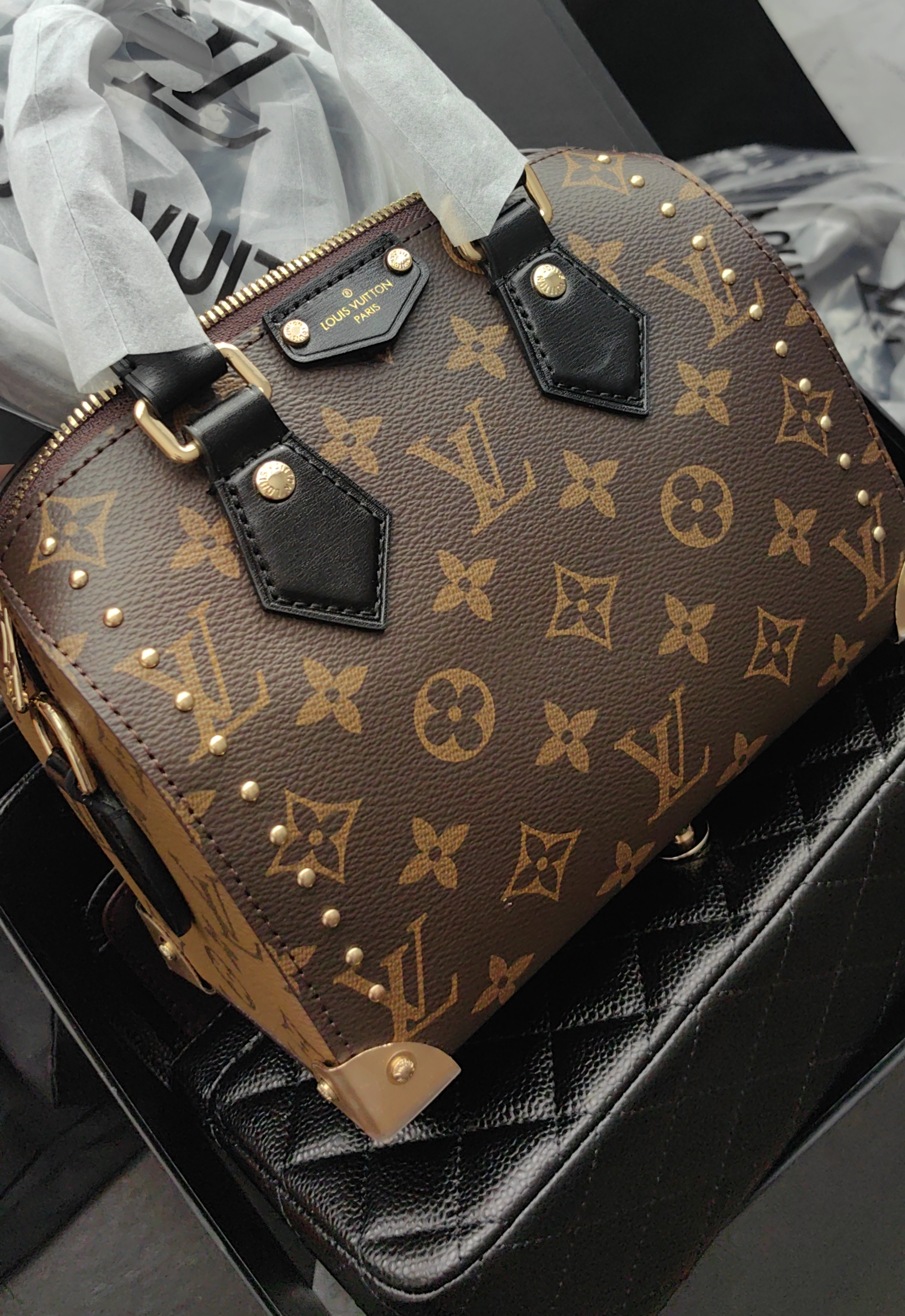 LV铆钉旅行包,单肩斜挎手提都可以。宽20cm,高17cm,底宽12cm