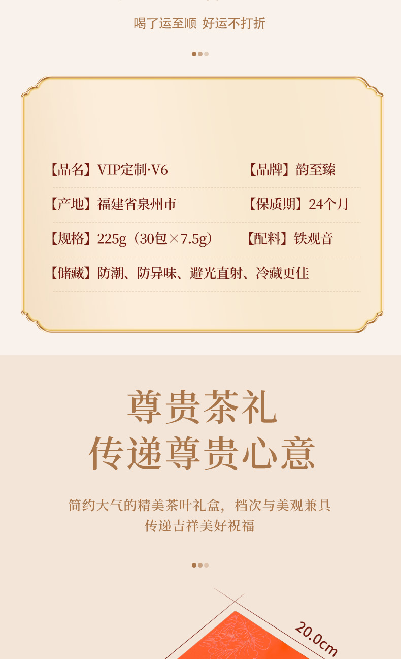 【V6】韵至臻浓香型乌龙茶 韵香型铁观音VIP定制V6 225g/盒