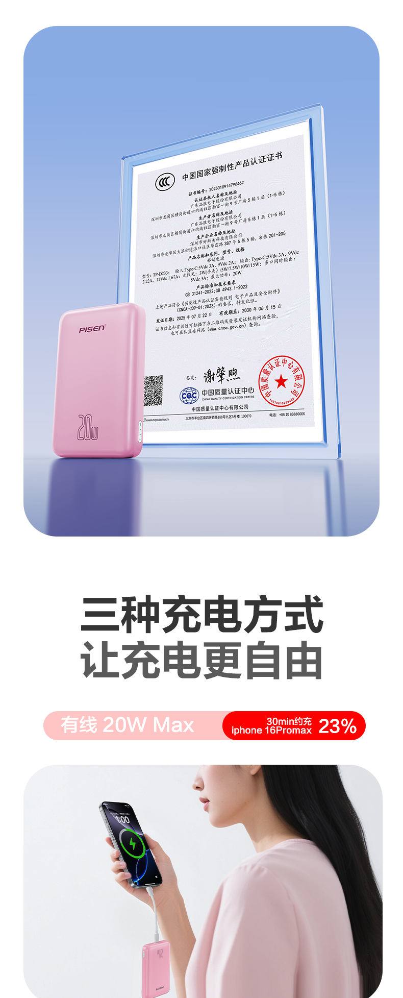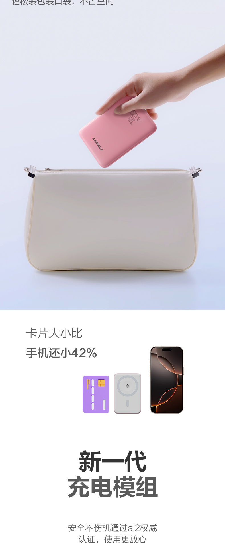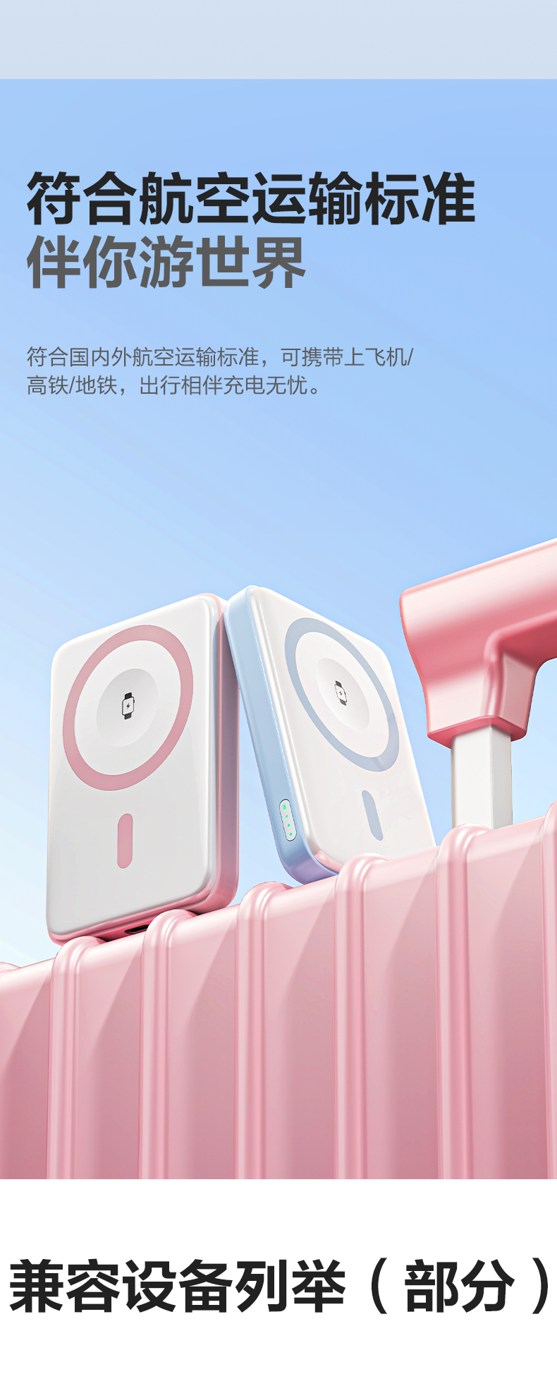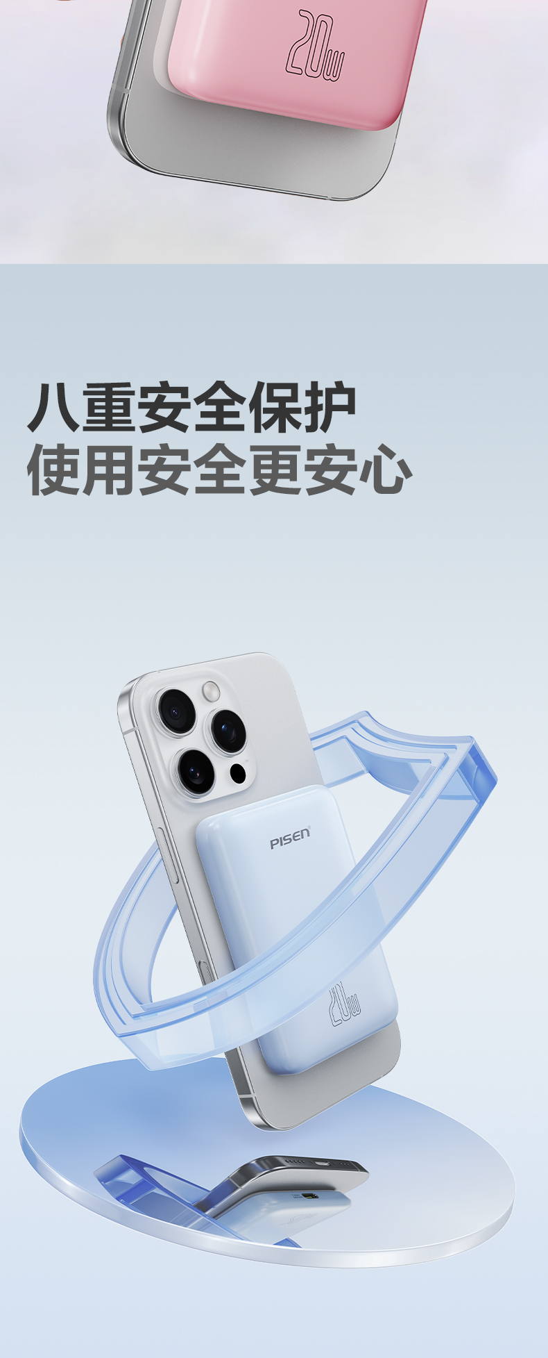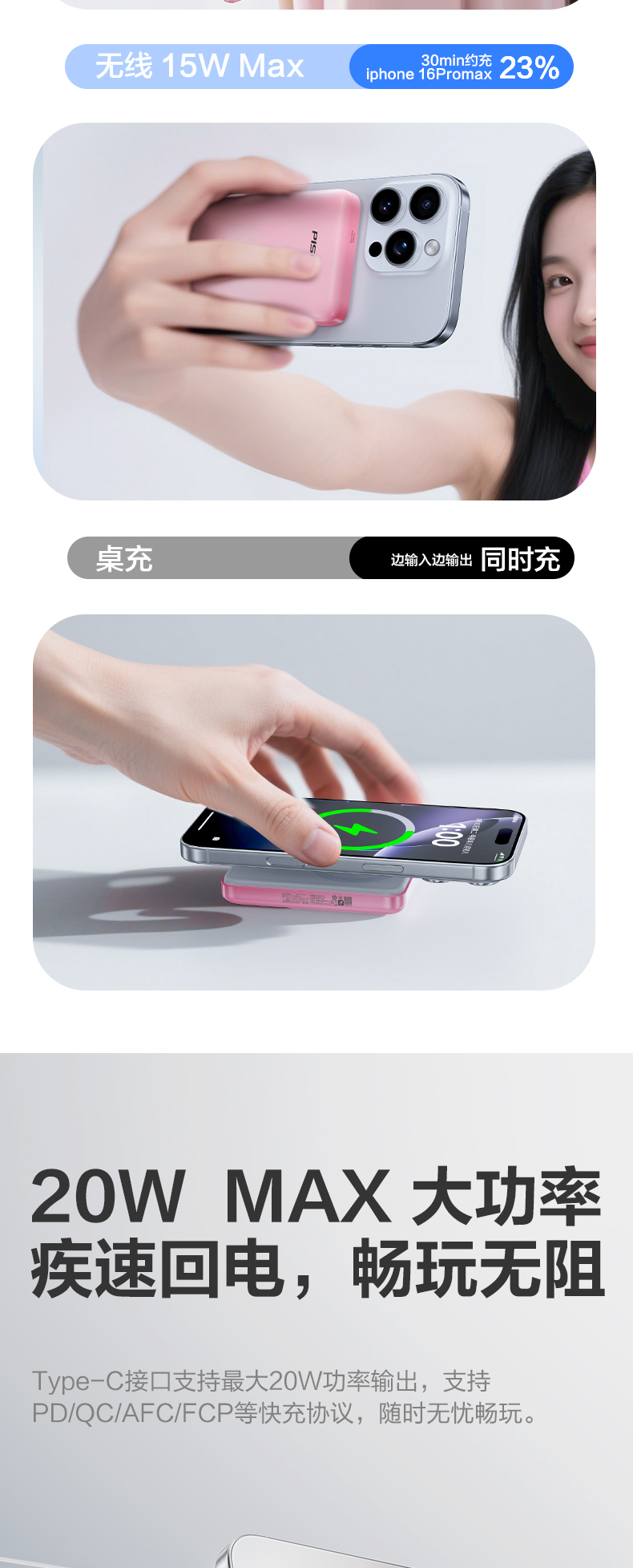 品胜 20W多彩磁吸充电宝5000毫安 支持手机手表耳机无线充移动电源iPhone Air华为小米设备