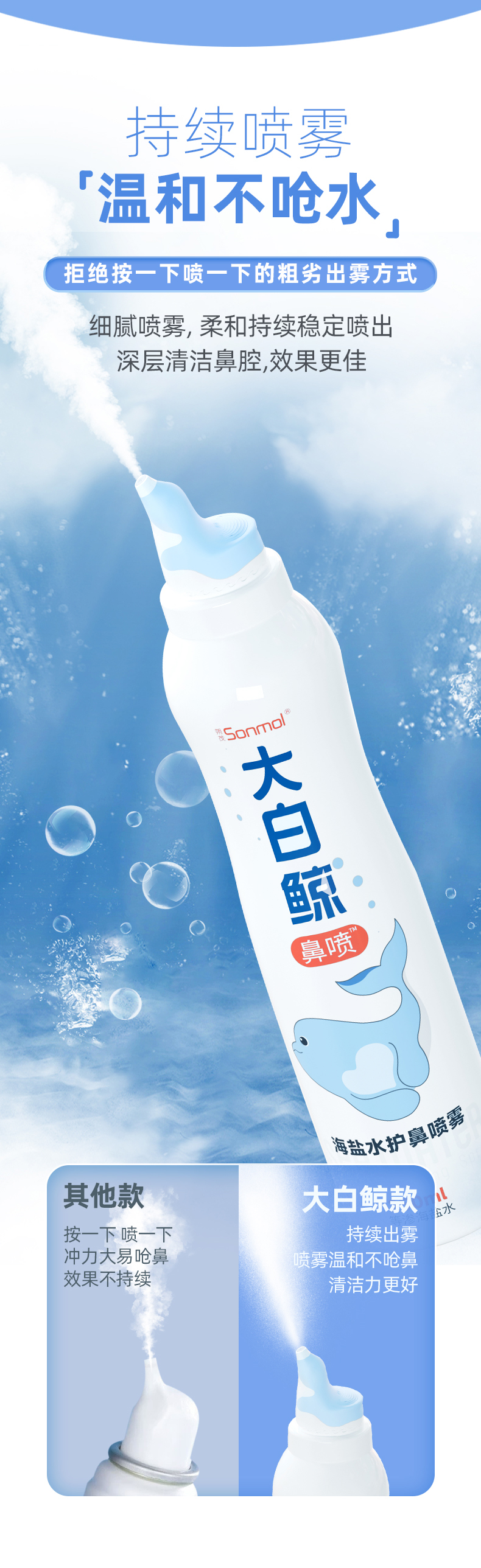 【文怡之选】朔茂Sonmol 大白鲸海盐水护鼻喷雾 鼻腔清洗 湿润鼻腔 全家可用 儿童鼻喷