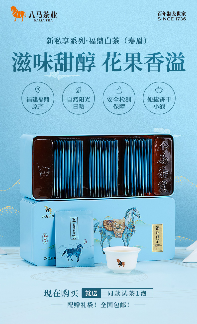 八马茶业 | 新品白茶福鼎白茶寿眉白茶私享独立小包装160g(32包)