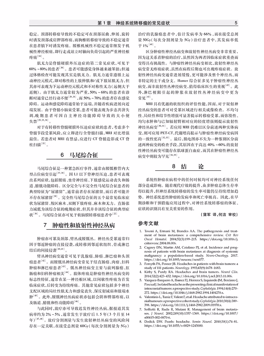 本书由神经内外科、肿瘤内外科、放射治疗科、精神科、心理科、护理多学科专家共同编著而成,介绍了国际上相对成熟的全身肿瘤及其治疗相关的神经系统并发症的诊治经验。本书包括全身肿瘤的转移性神经系统并发症、非转移性神经系统并发症、与特定肿瘤相关的神经系统并发症、抗肿瘤治疗的神经系统并发症以及支持、护理性问题。内容涵盖每一个主题相关的肿瘤学背景、鉴别诊断和诊断评估的详细信息,以及更实用的患者护理管理策略,有助于提高肿瘤医务工作者及时识别和治疗肿瘤患者神经系统并发症的能力,从而改善患者的神经功能和生活质量。
