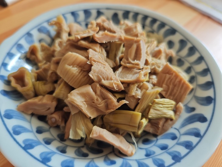 ●泡好焯水切段备用的笋干,直接吃就很鲜美