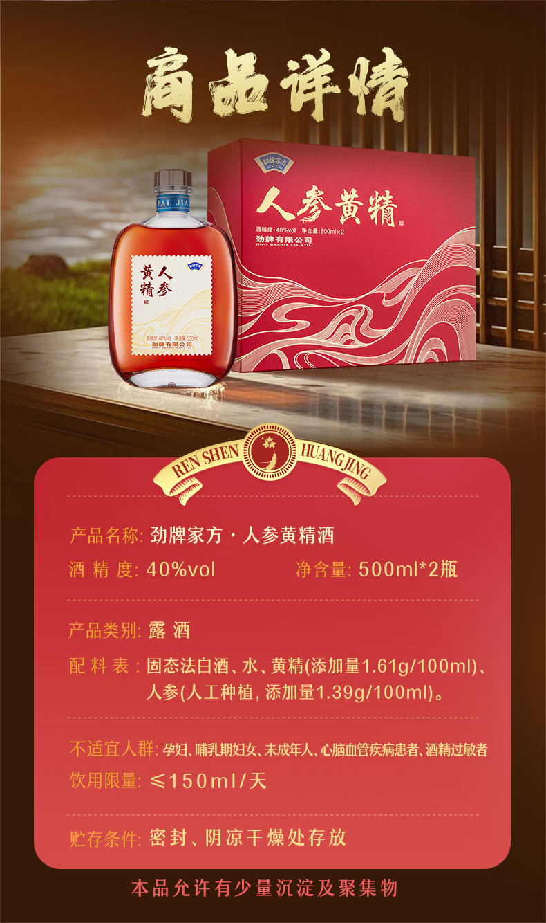 【新品】500ml40 度劲牌家方人参黄精酒礼盒