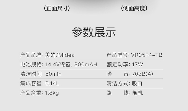美的(Midea)智能家用扫地机器人VR05F4-TB