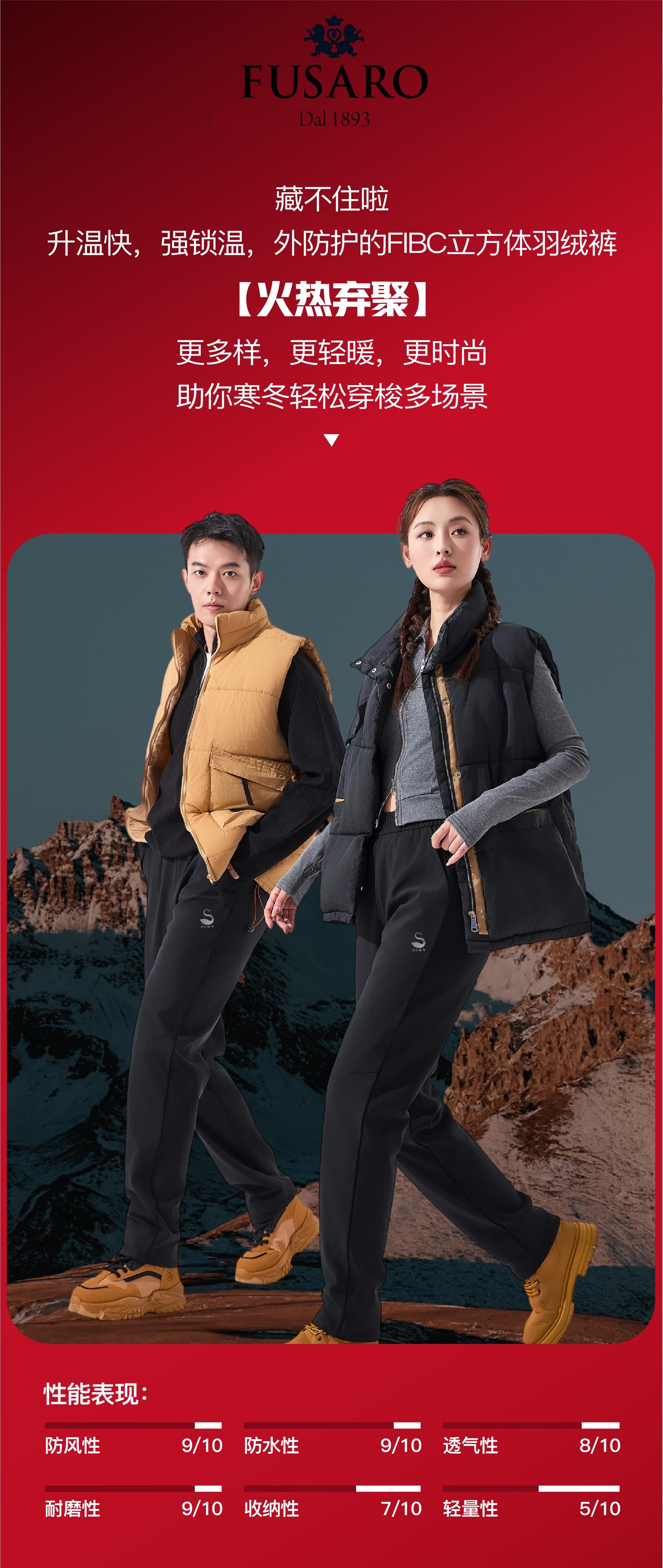 FUSARO意大利百年品牌【90白鸭绒情侣款羽绒裤 】外层防水,防污,拒油,省心守护,轻薄保暖有型不臃肿