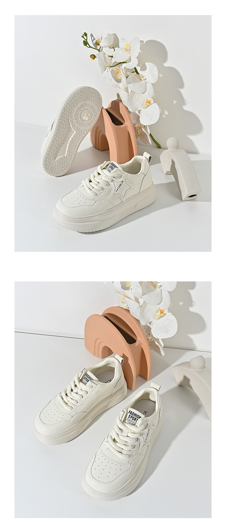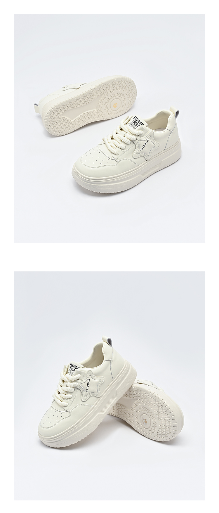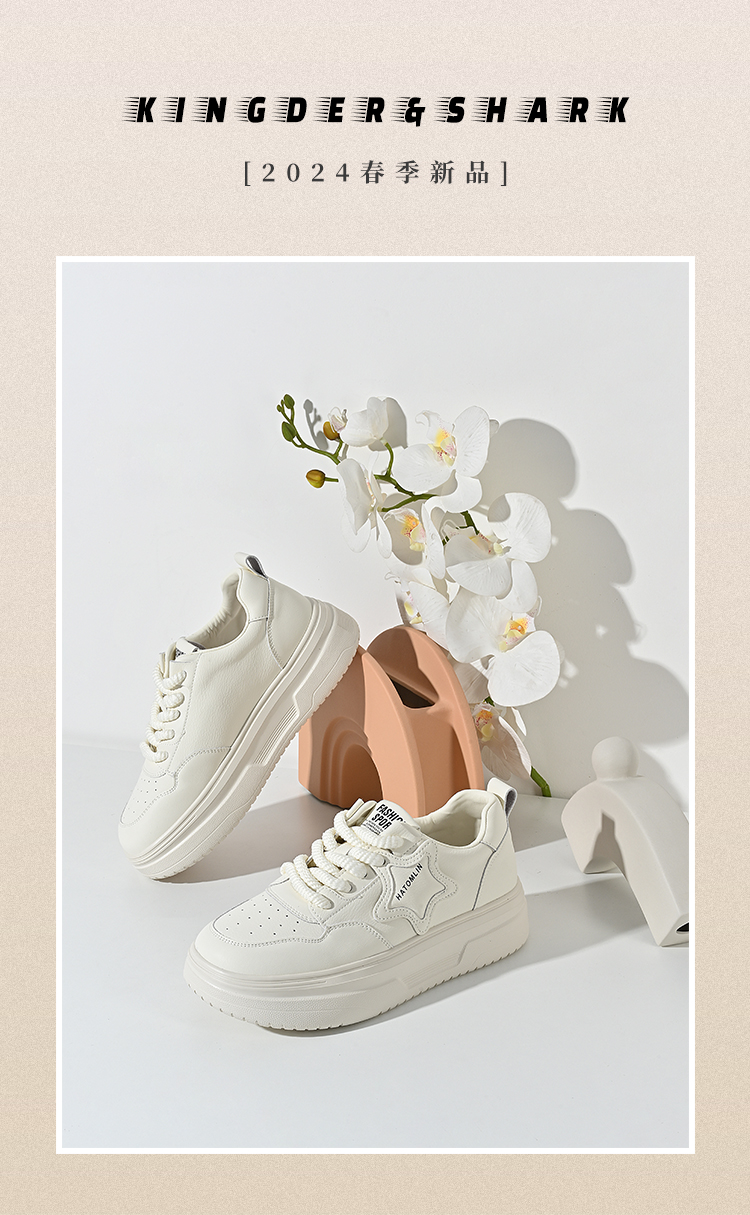 2024经典鲨春季新款时尚星星透气百搭小白鞋KW213-D17021