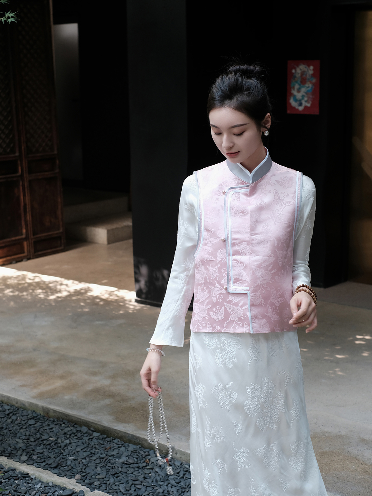 盛唐牡丹 |花锦缎百蝶偏襟马甲