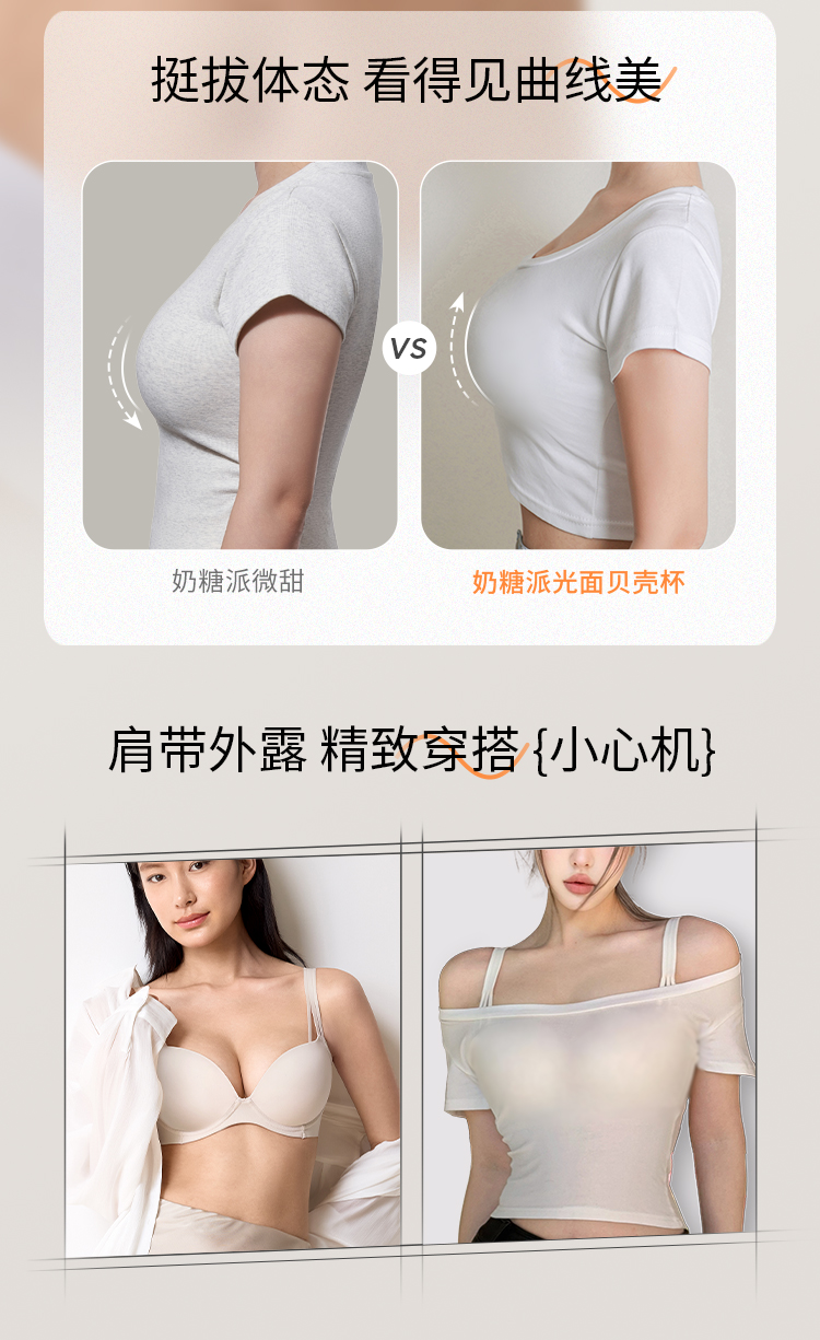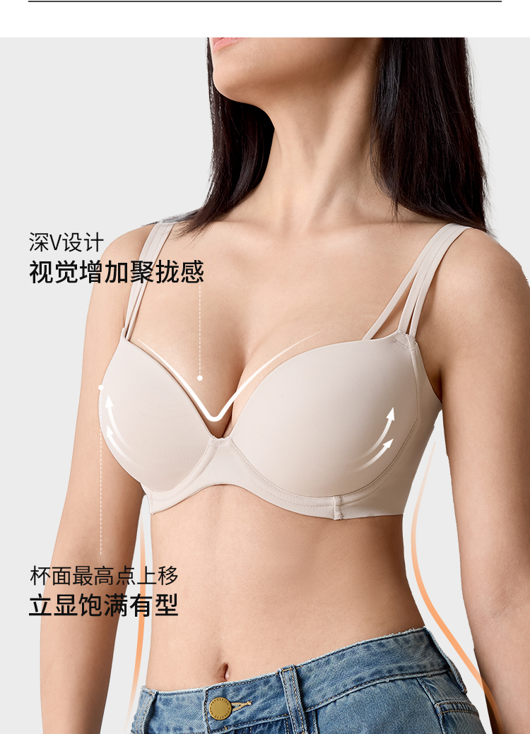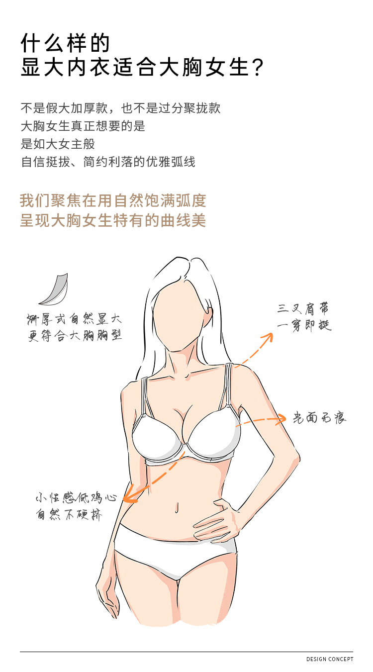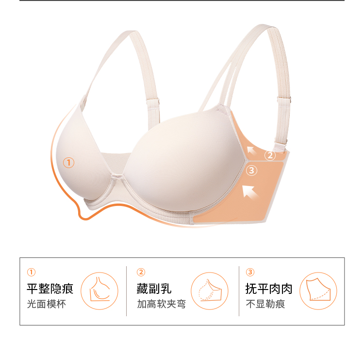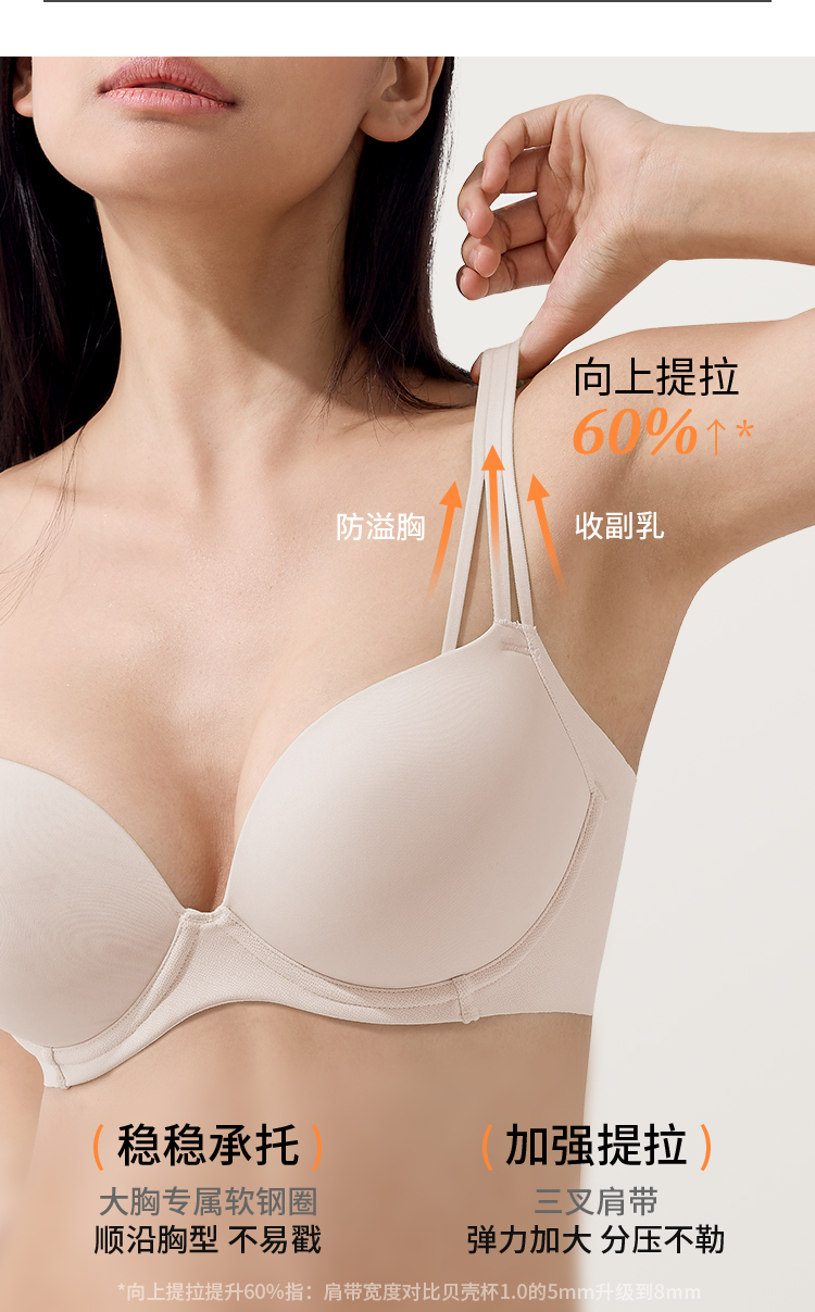 [光面无痕贝壳杯]大胸显大漫画胸大码聚拢性感文胸胸罩