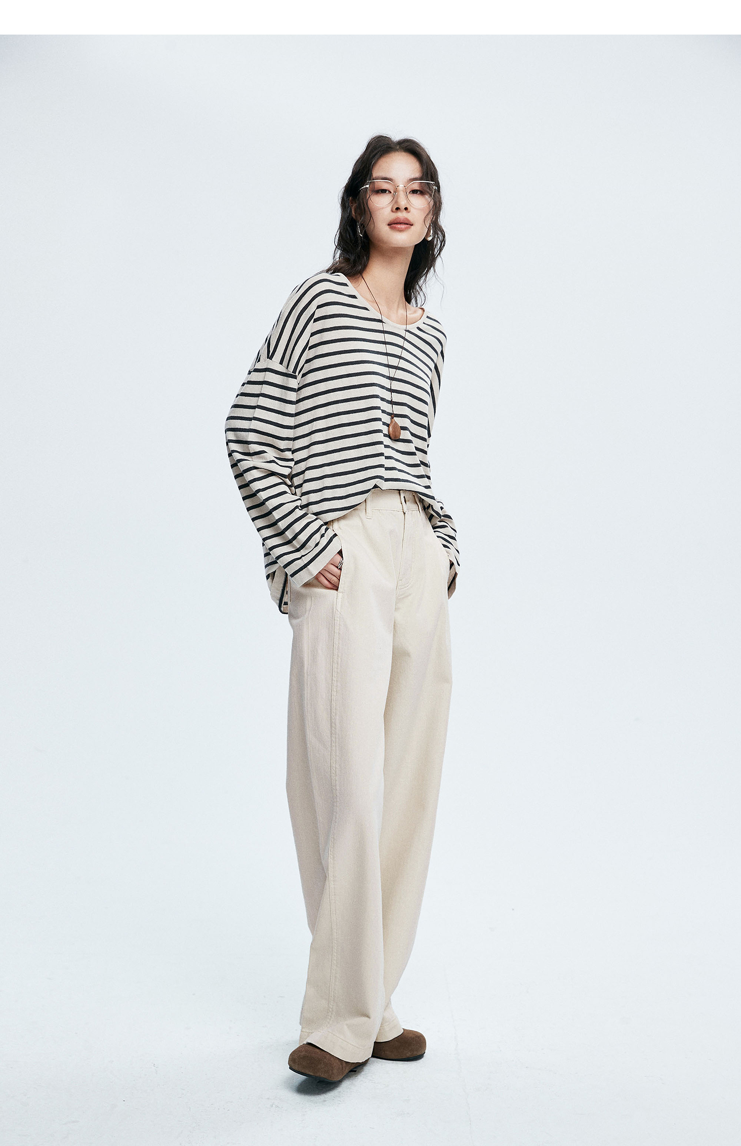 棉仓356601003-奶霜棉100%长绒棉打底衫女24秋微宽松高阶航海刺绣内搭T恤女