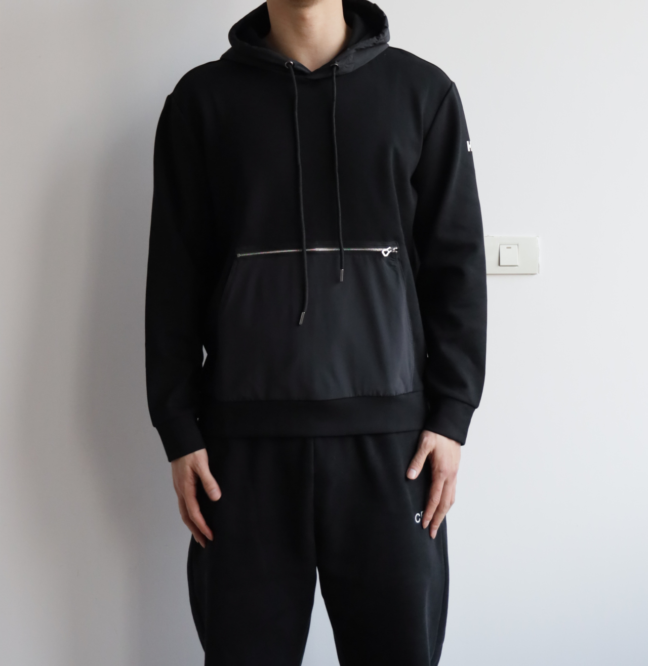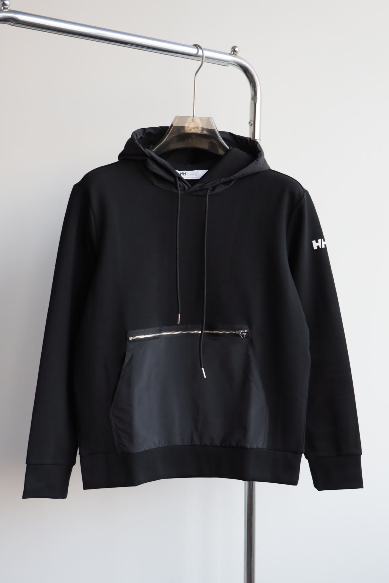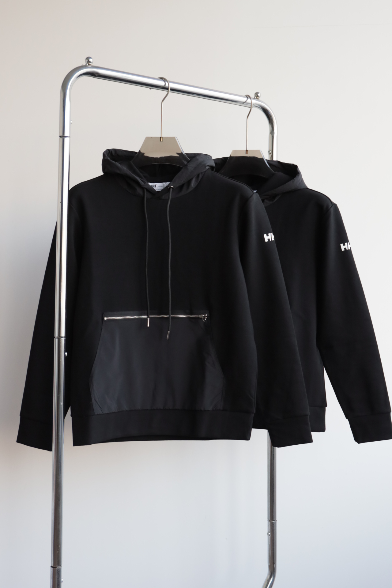 尼龙口袋+连帽拼接设计,手臂H字母印花