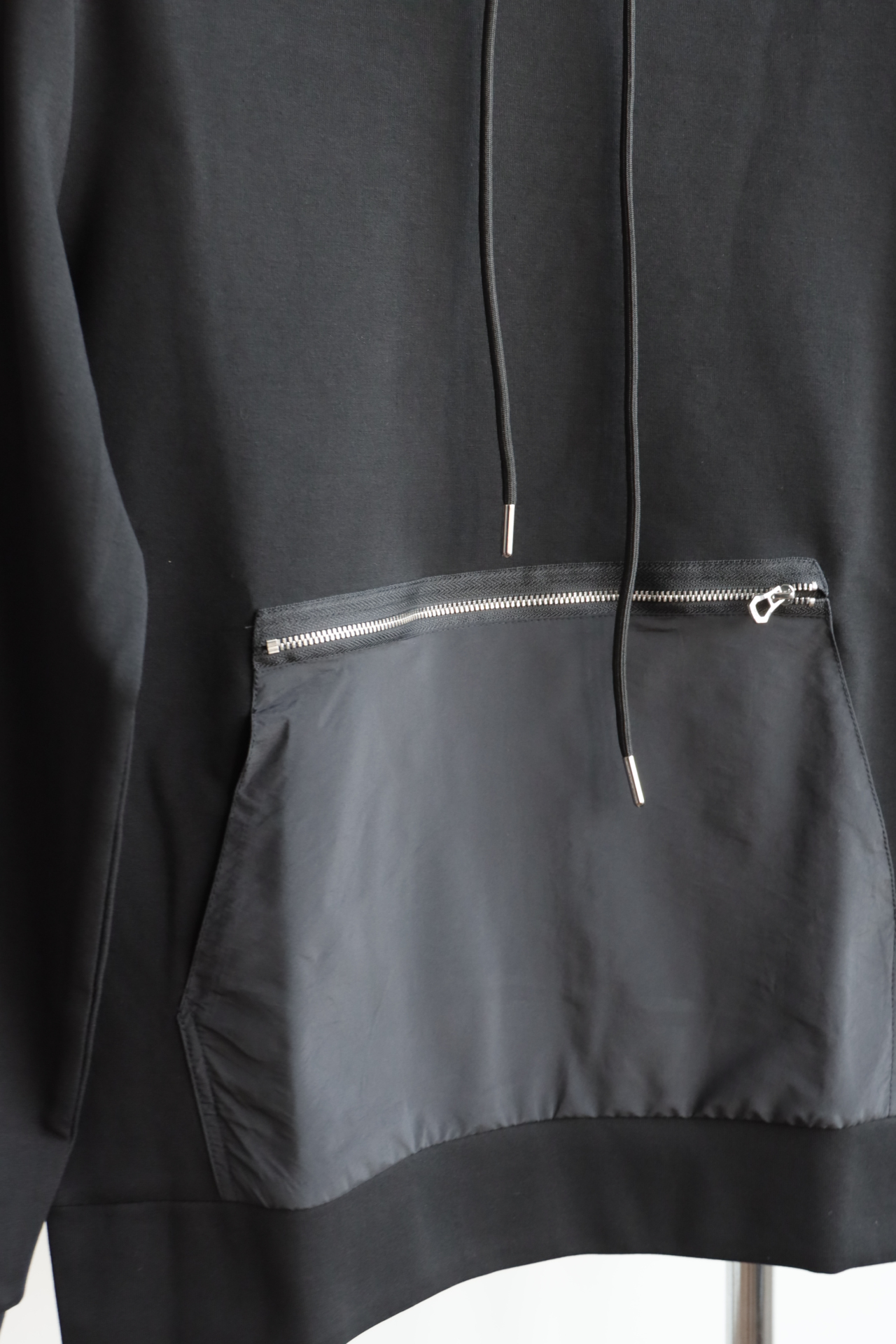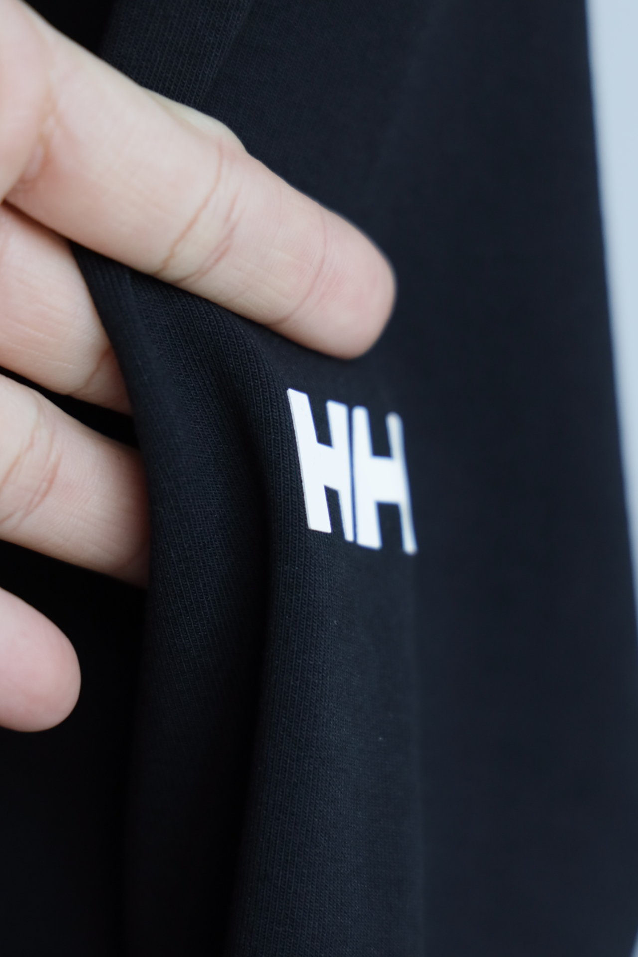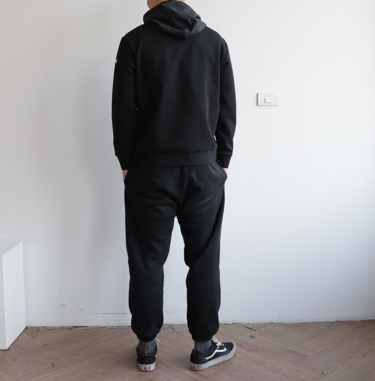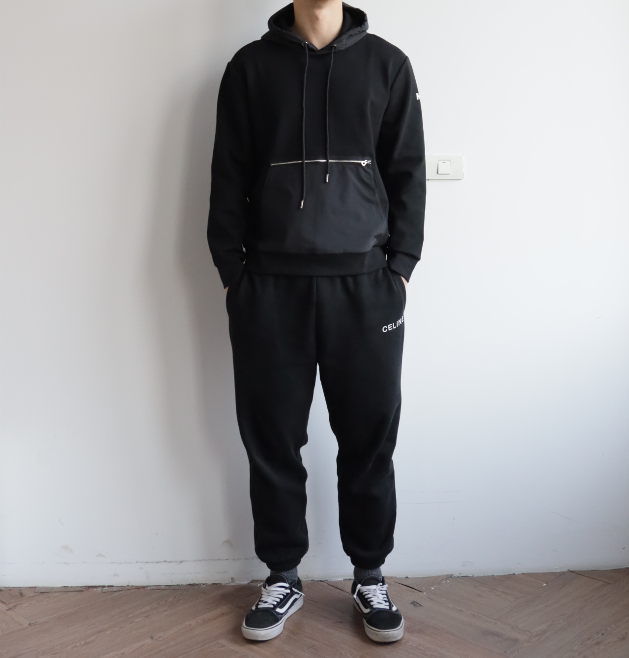 尼龙口袋+连帽拼接设计,手臂H字母印花