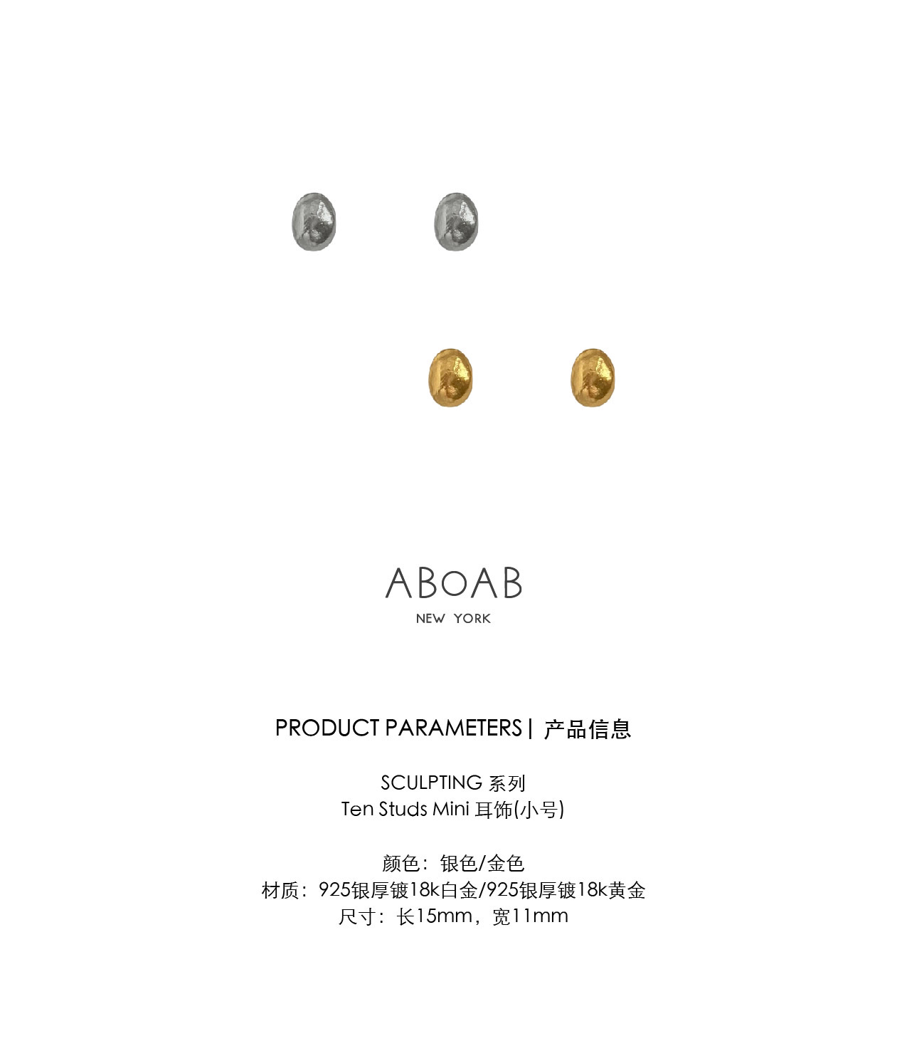 ABOAB|mini TEN Studs [耳钉 金 / 银 ]【SCULPTING】