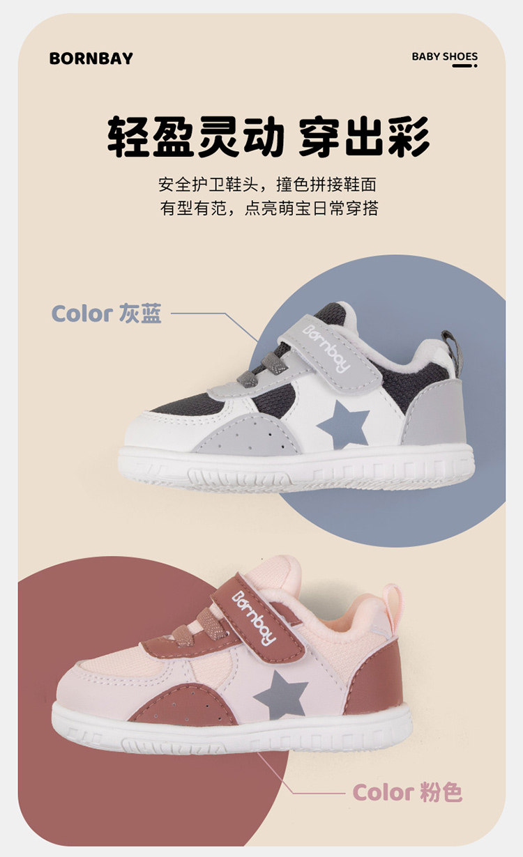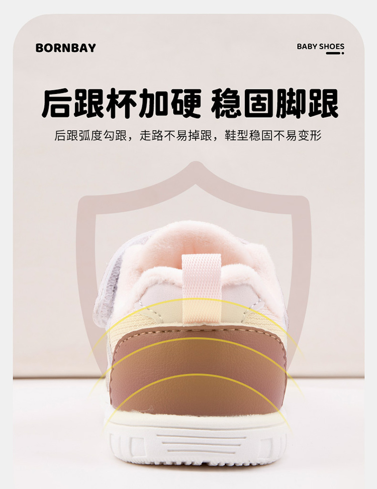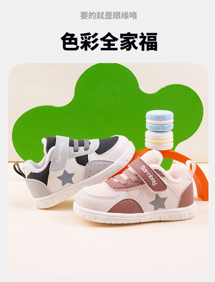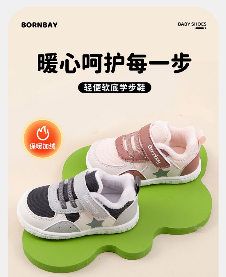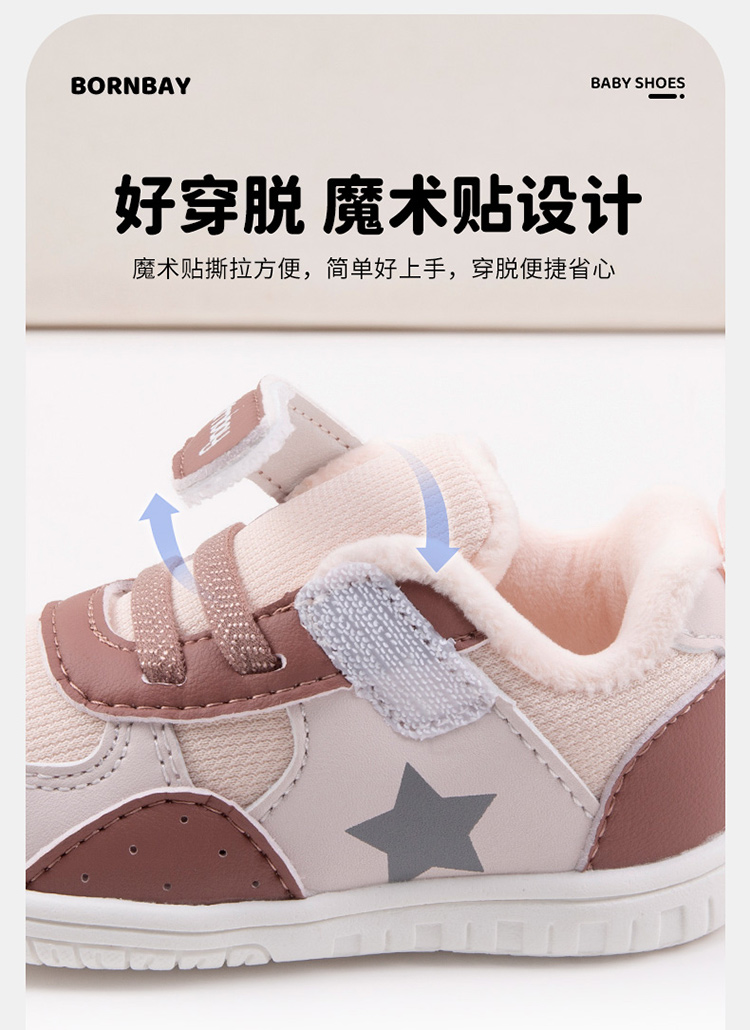 贝贝怡【加绒保暖】秋冬男女宝宝学步鞋防滑轻便舒适便捷魔术贴学生鞋子ZB4DX002