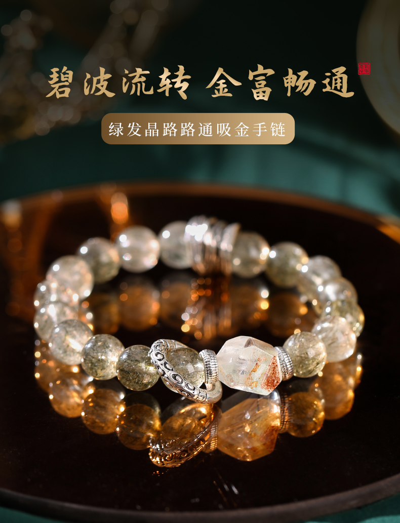 【路路畅通】绿发晶路路手链 绿发晶喜木手串