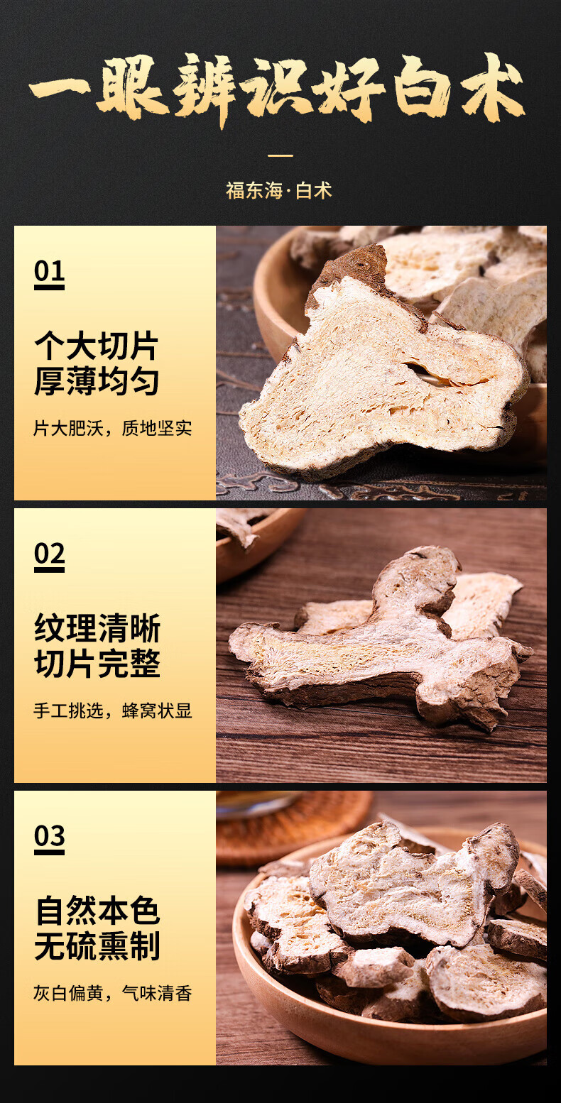 福东海 白术片100g 精选可炒白术片 可自磨炒白术粉于术冬白术