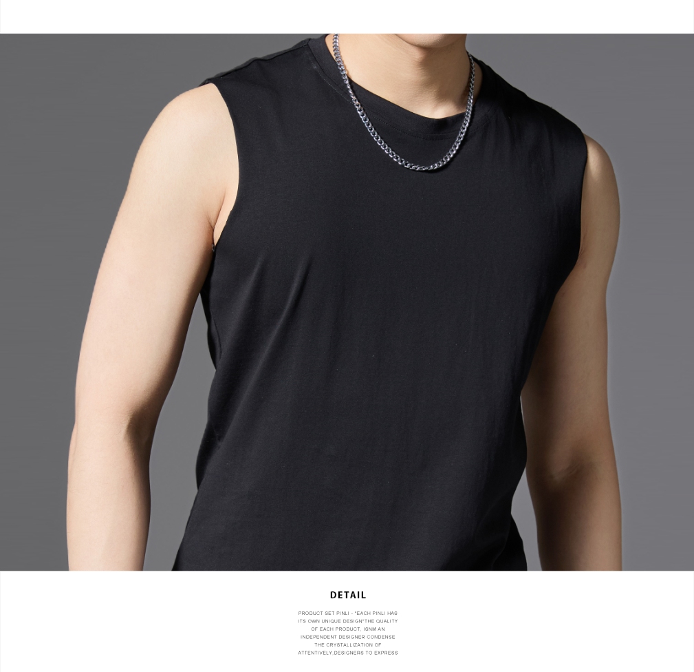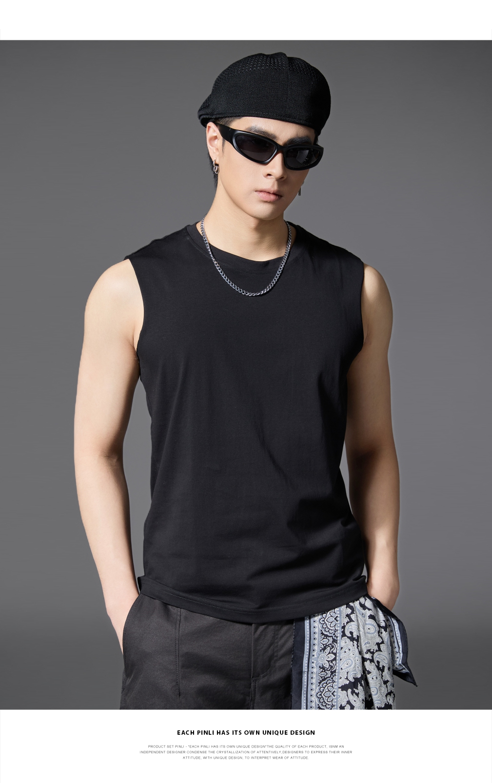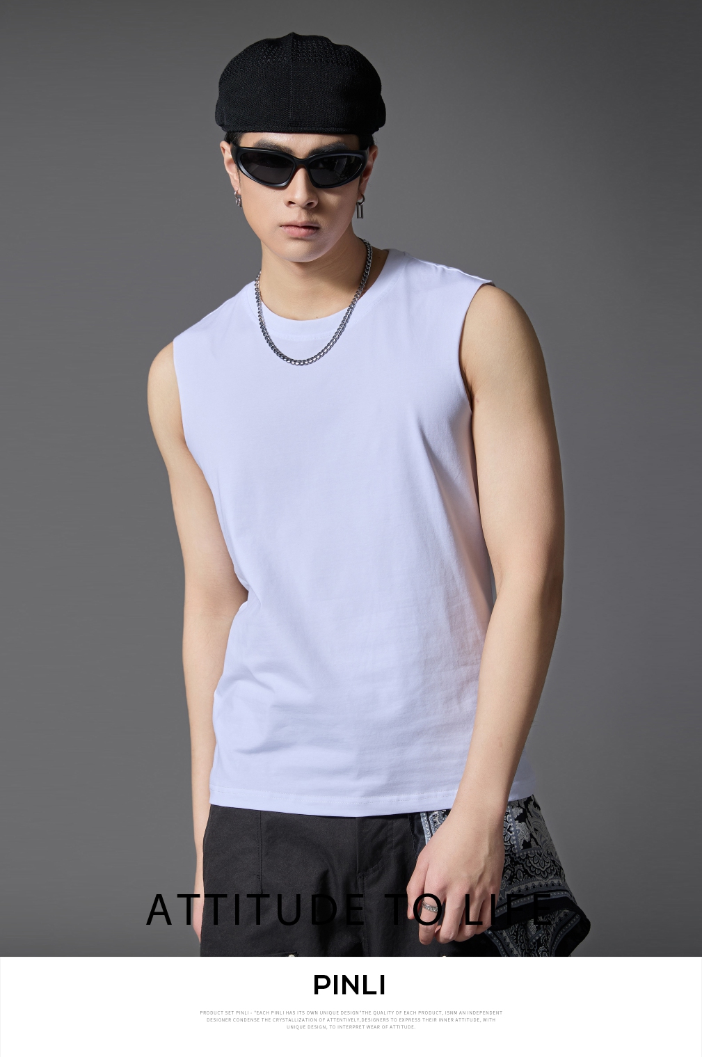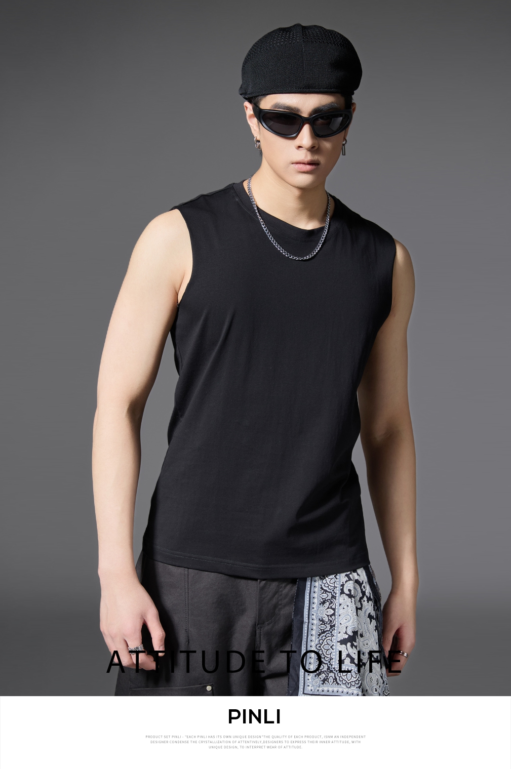 PINLI品立2025春季新款纯色打底无袖圆领T恤男士潮牌休闲背心上衣B252111001