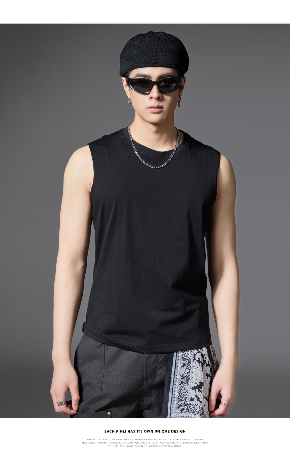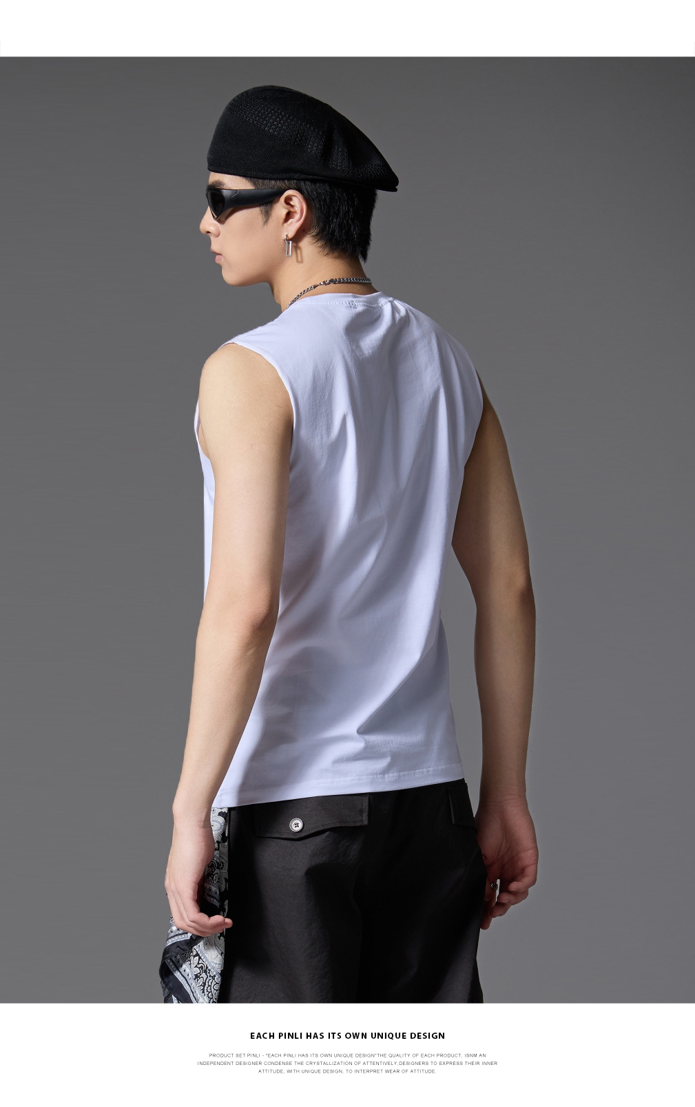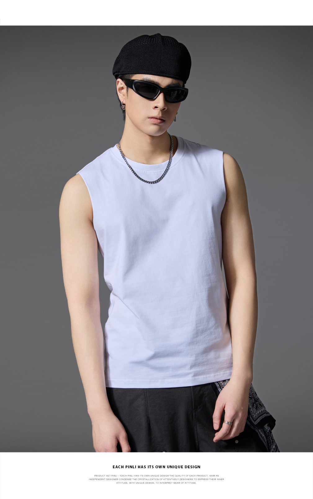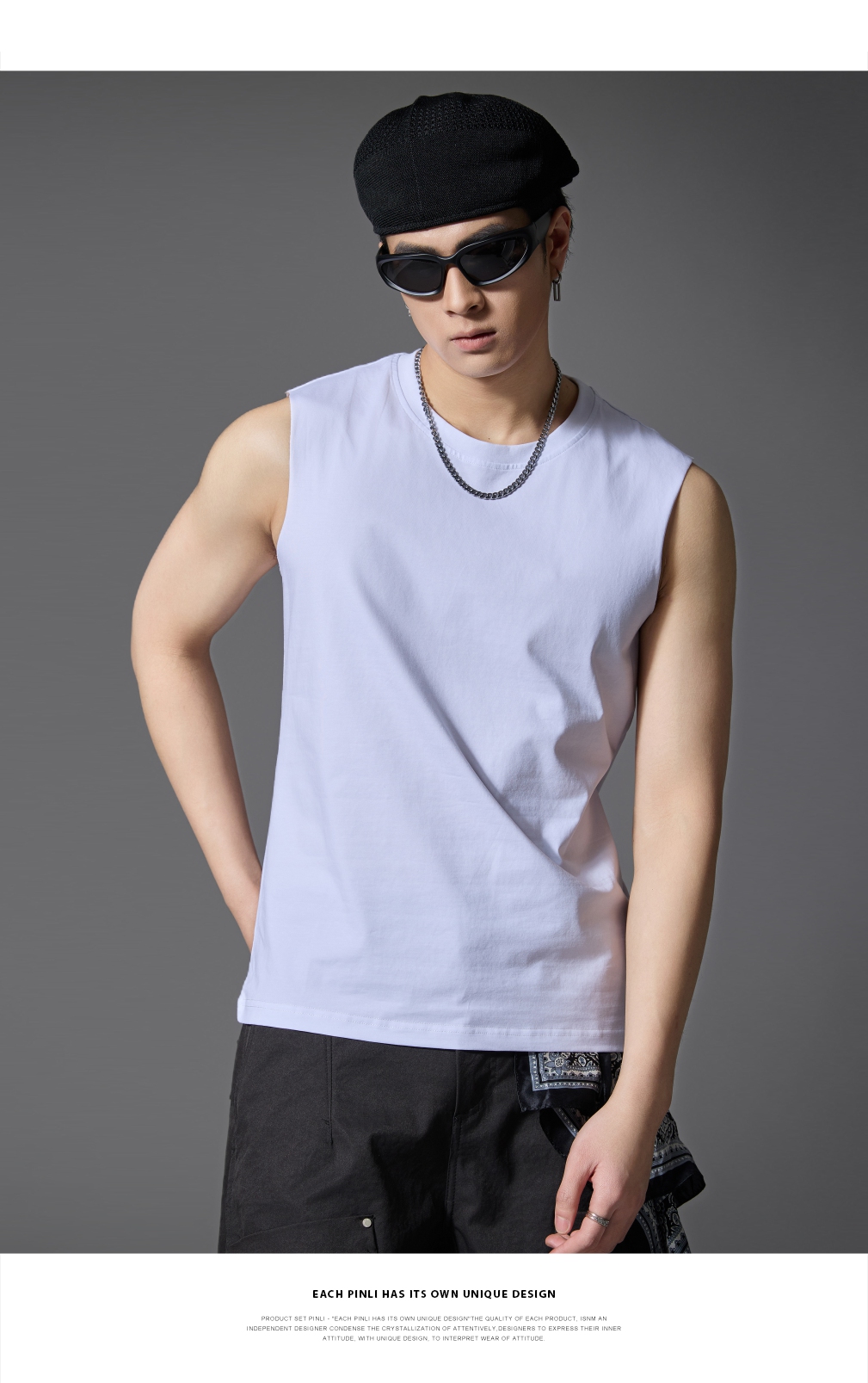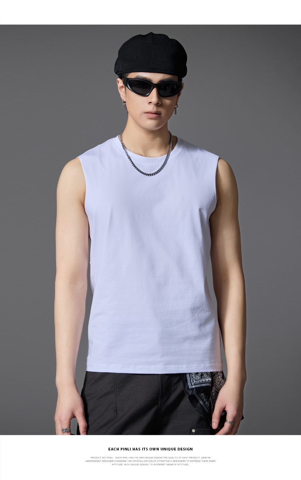 PINLI品立2025春季新款纯色打底无袖圆领T恤男士潮牌休闲背心上衣B252111001