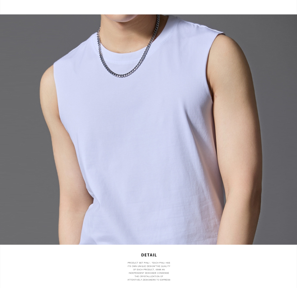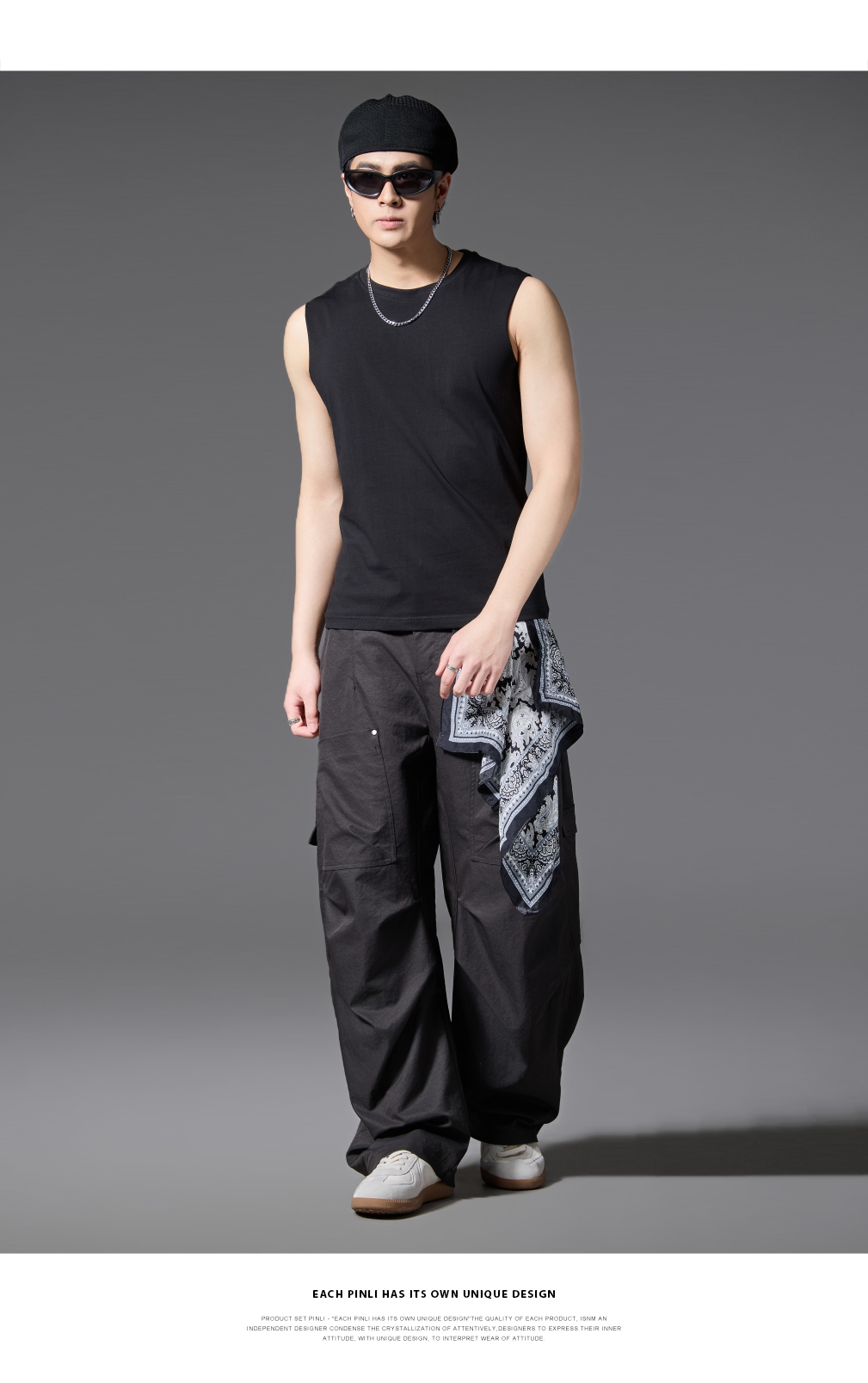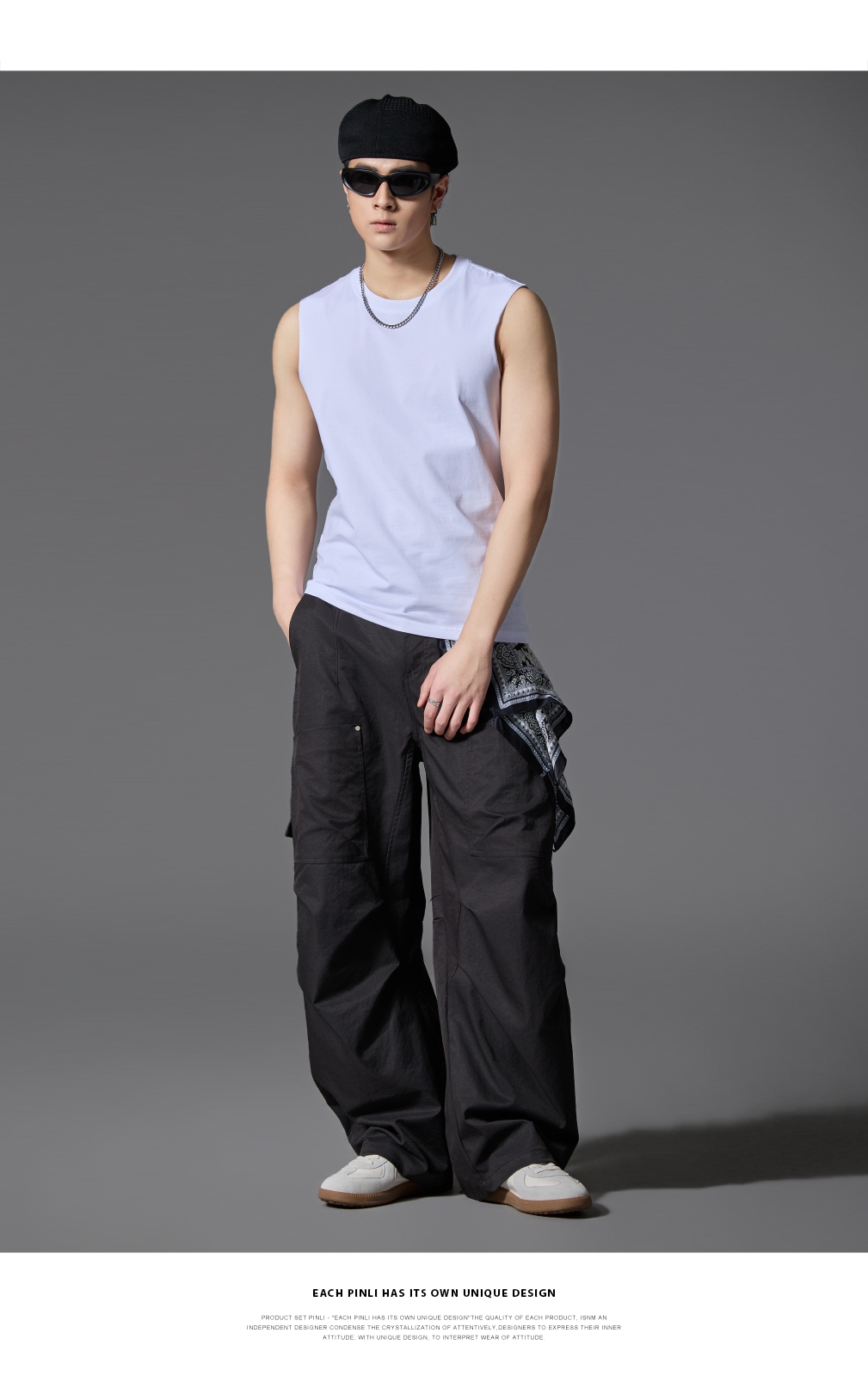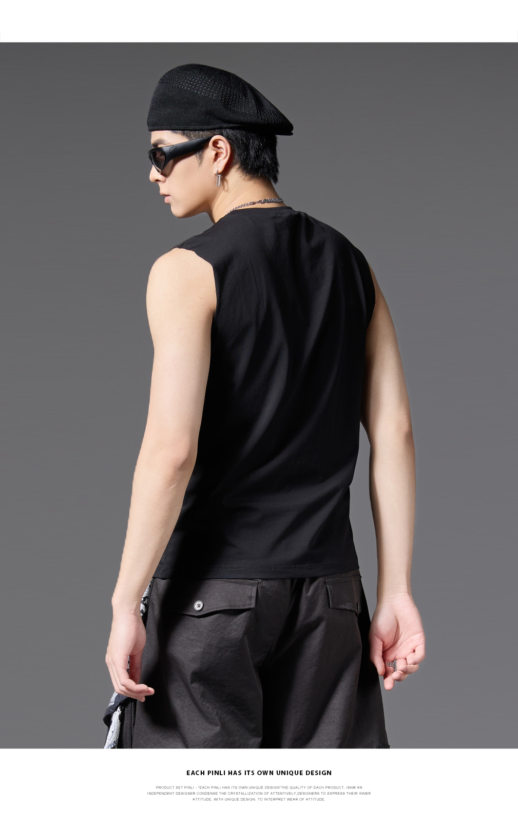 PINLI品立2025春季新款纯色打底无袖圆领T恤男士潮牌休闲背心上衣B252111001