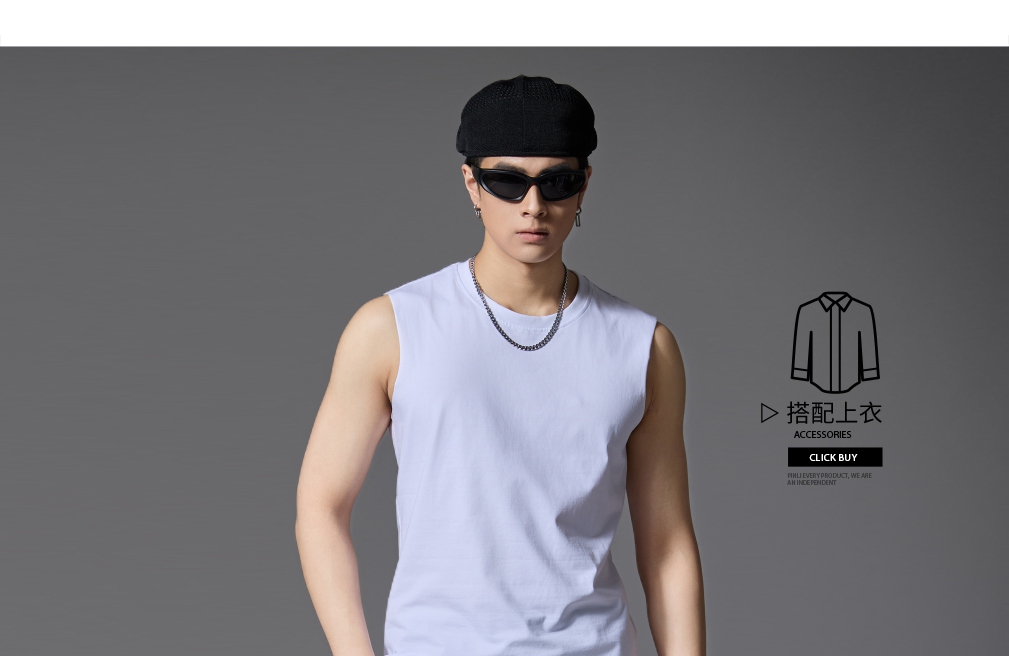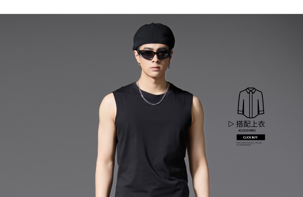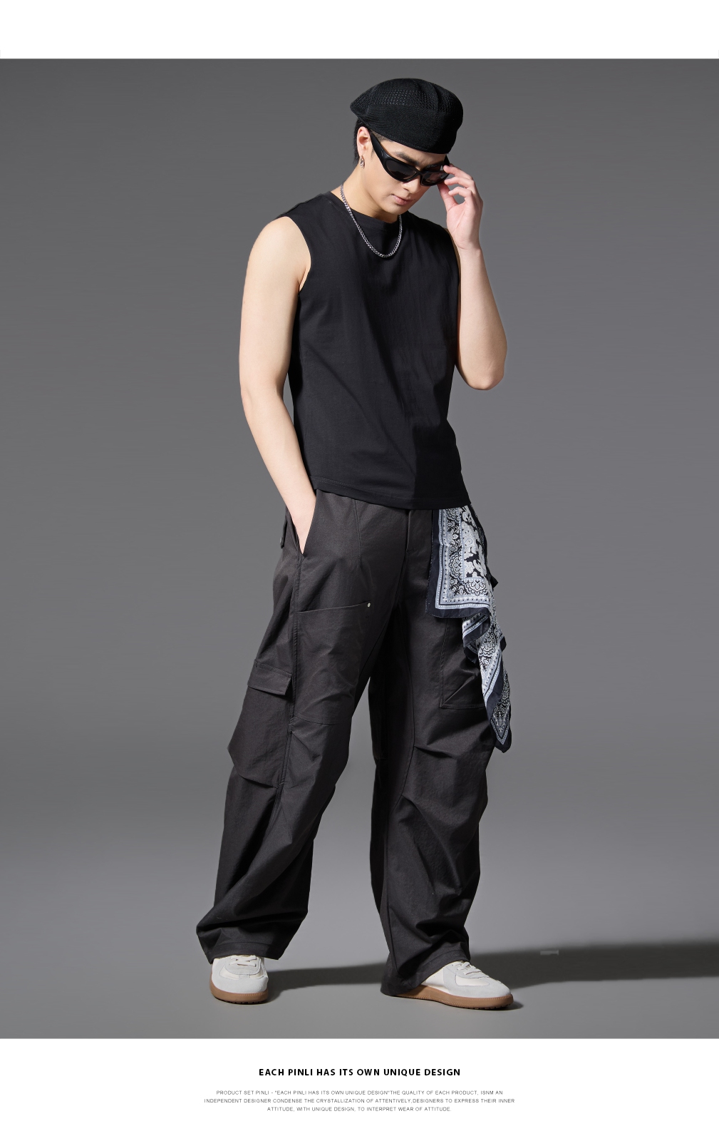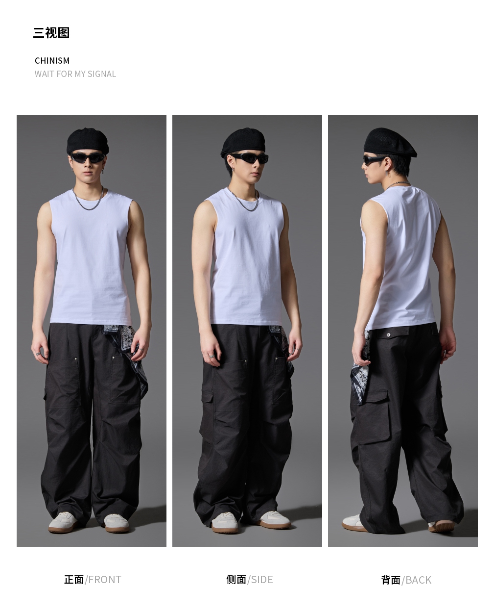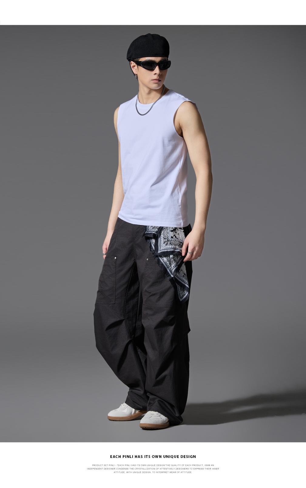 PINLI品立2025春季新款纯色打底无袖圆领T恤男士潮牌休闲背心上衣B252111001