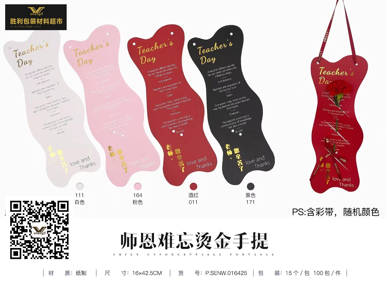 师恩难忘烫金手提(每包15个,配丝带颜色随机)