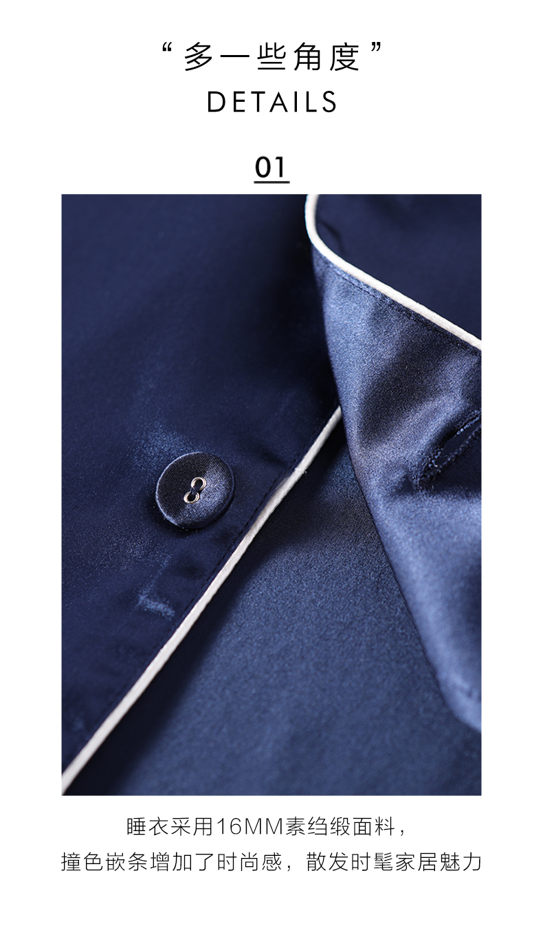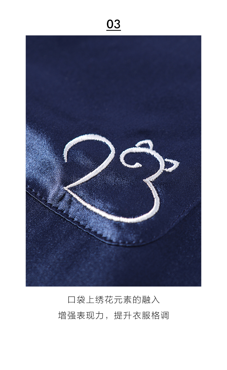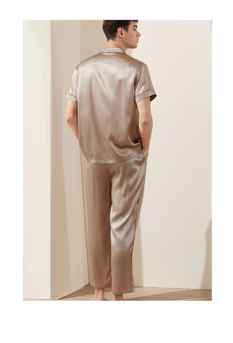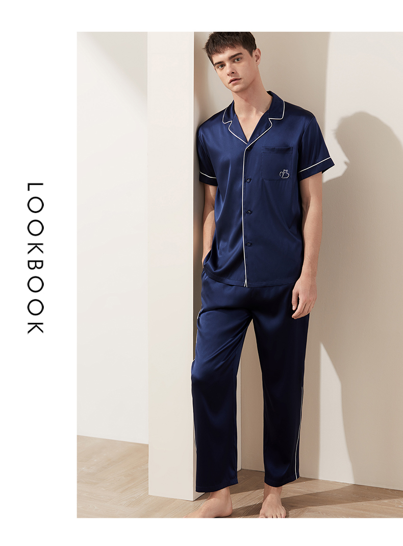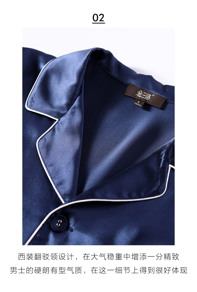 金三塔真丝睡衣男士短袖夏季100%桑蚕丝纯色绣花短袖衣裤套家居服 YSMAB401(限价款)