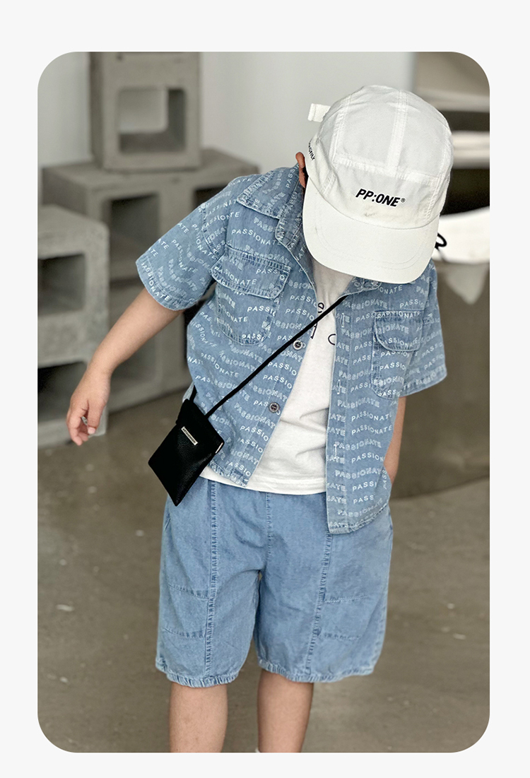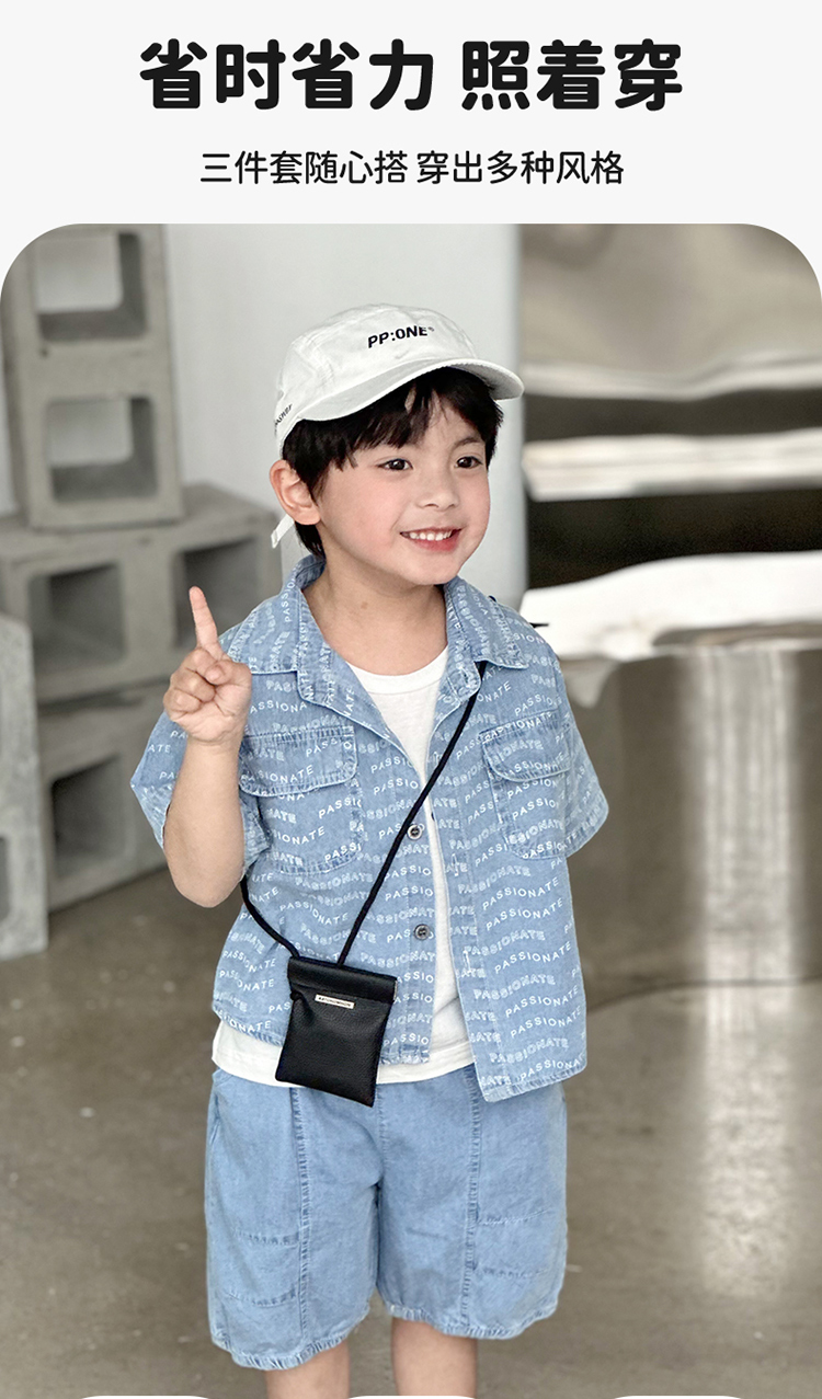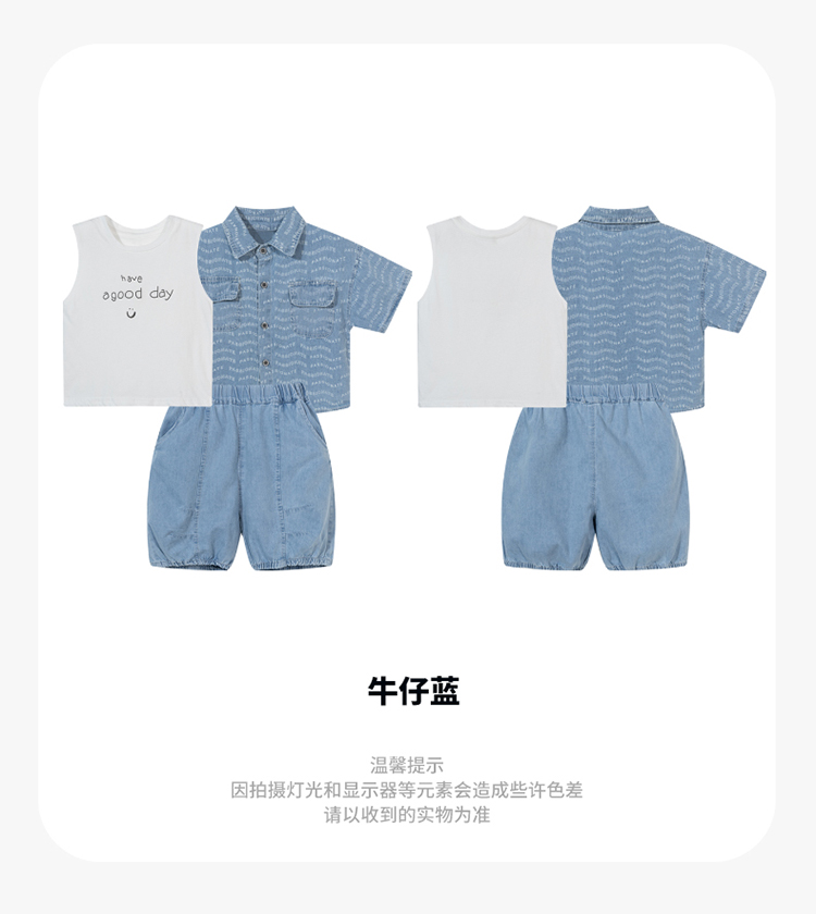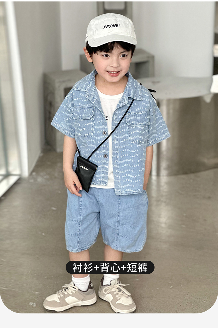 贝贝怡儿童套装衬衫2024夏装新款韩版背心男童宝宝T恤短裤三件套