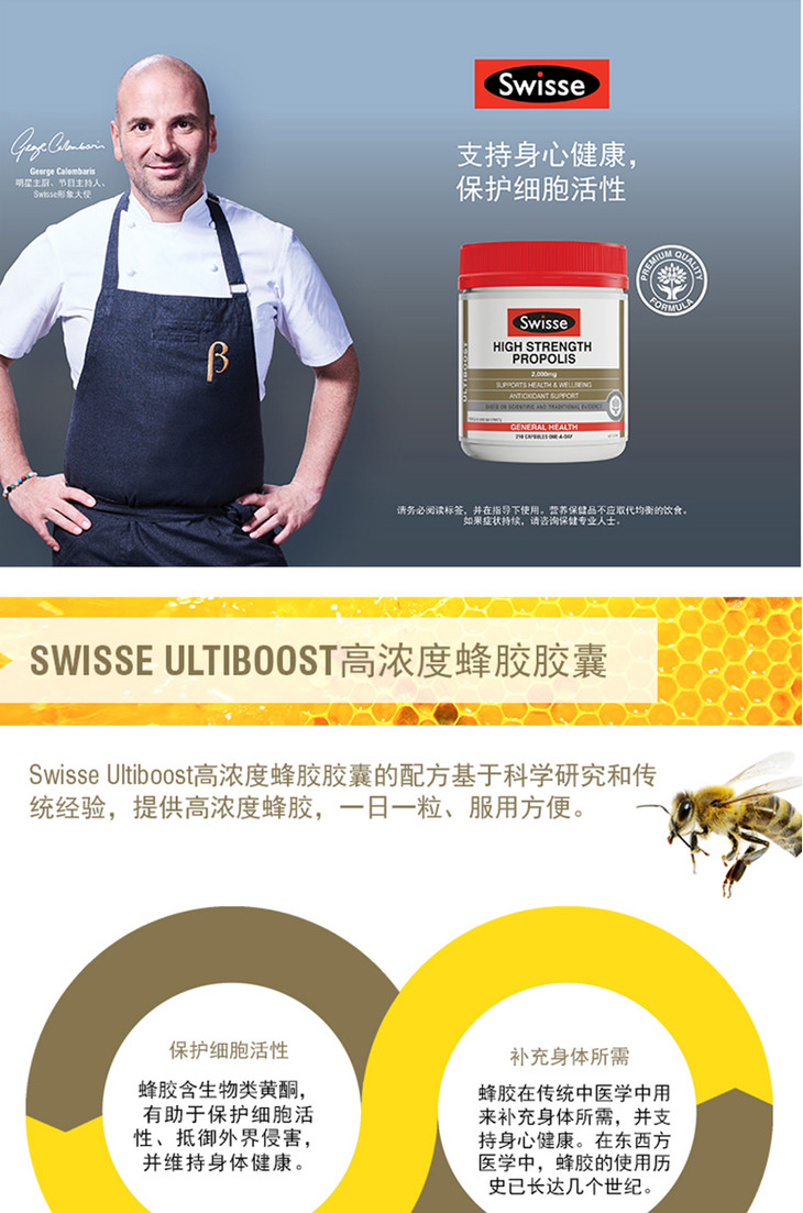 (永久下架)澳洲Swisse瑞思 蜂胶软胶囊2000mg 210粒