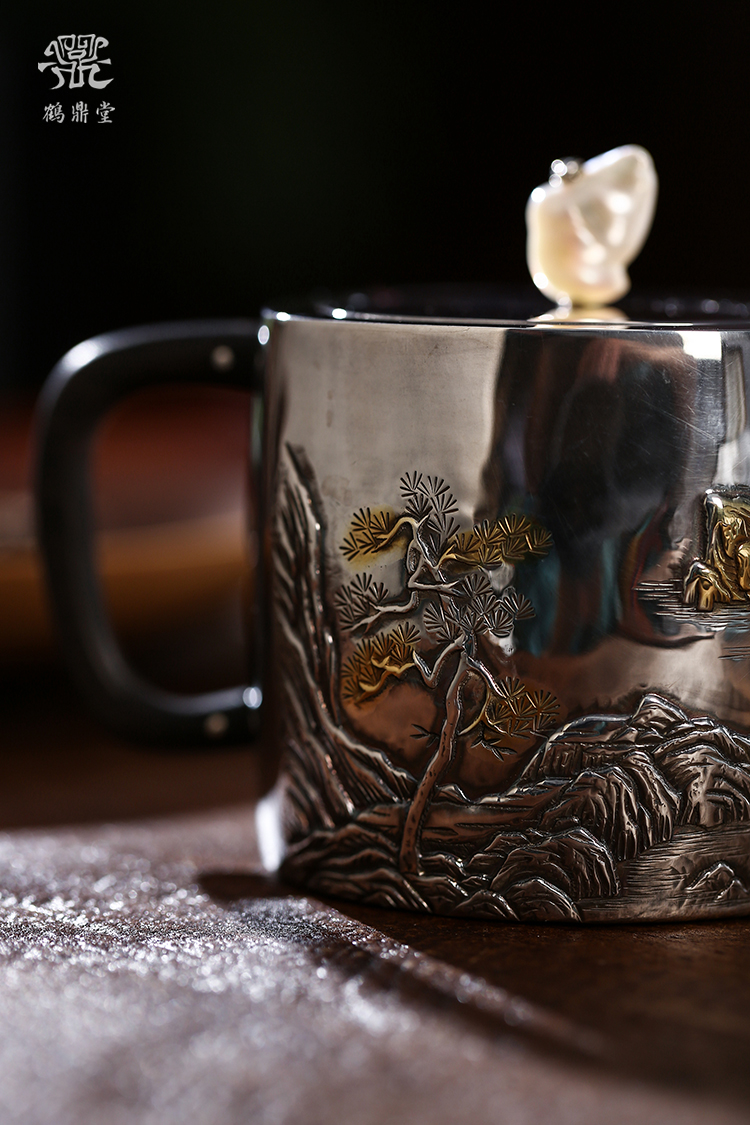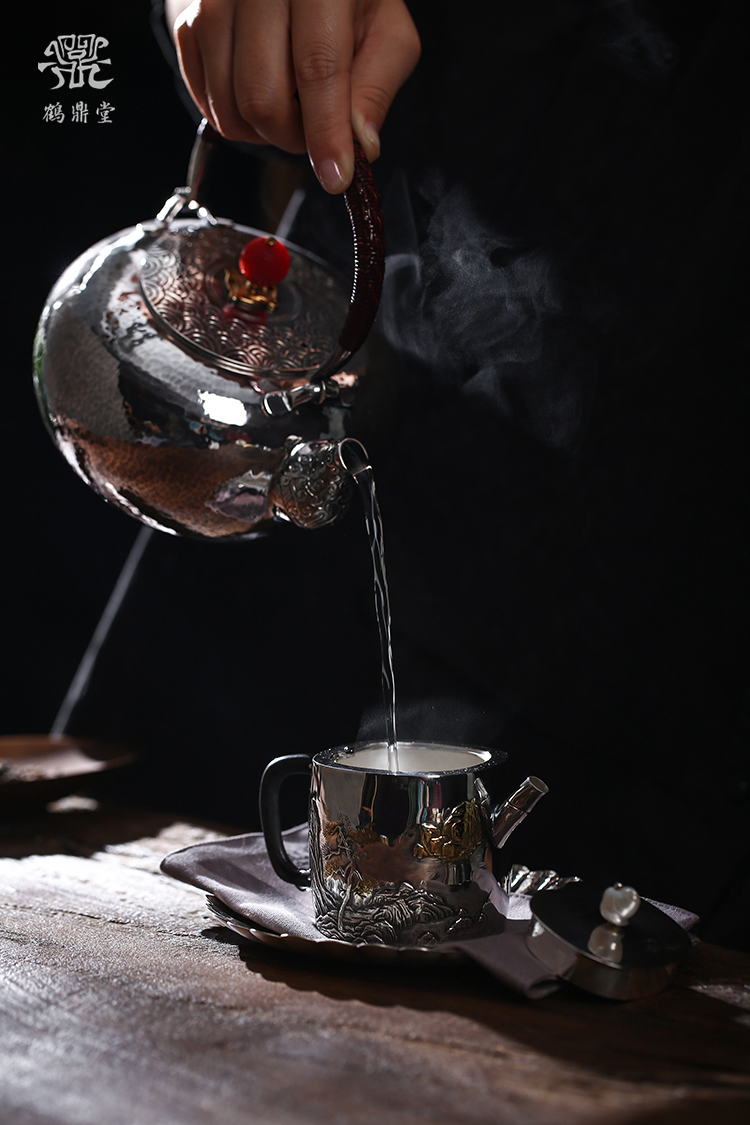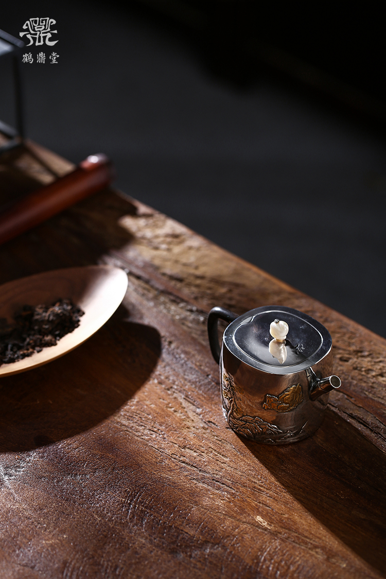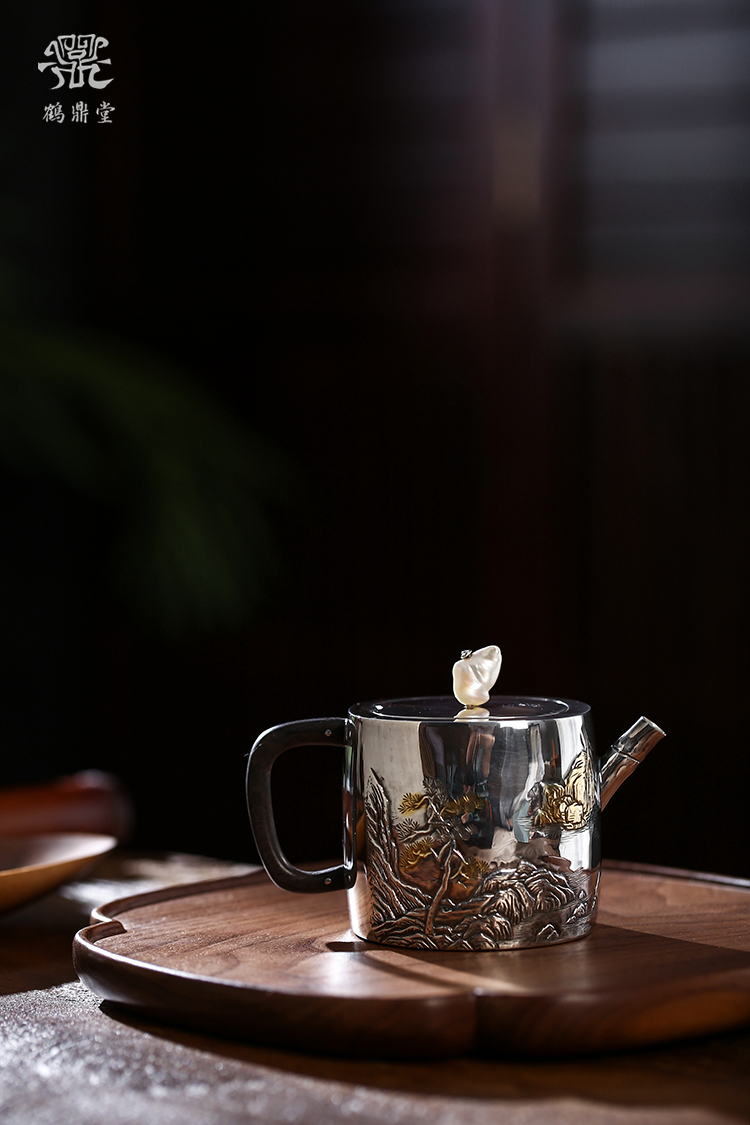 鹤鼎堂闻天系列游遨急须錾刻积玉堆金(银色)(缺货)