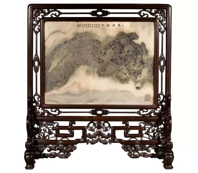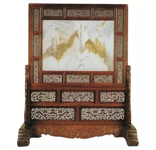 明清士人重宋元古画,而大理石屏,以天然画石嵌装为屏具,滇南万里而来,在明代属贵重珍罕之物,即使将其视作一种家具,以大理石屏的“无用之用”,大约也只能算“玩物”“清供”,虽低调,却更为矜贵。一座黄花梨镶黝黯乌木山水纹面的大案,主人可能只为摆放一座石屏。