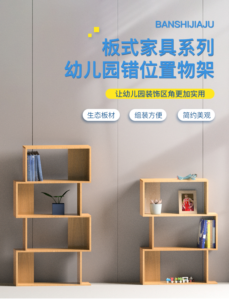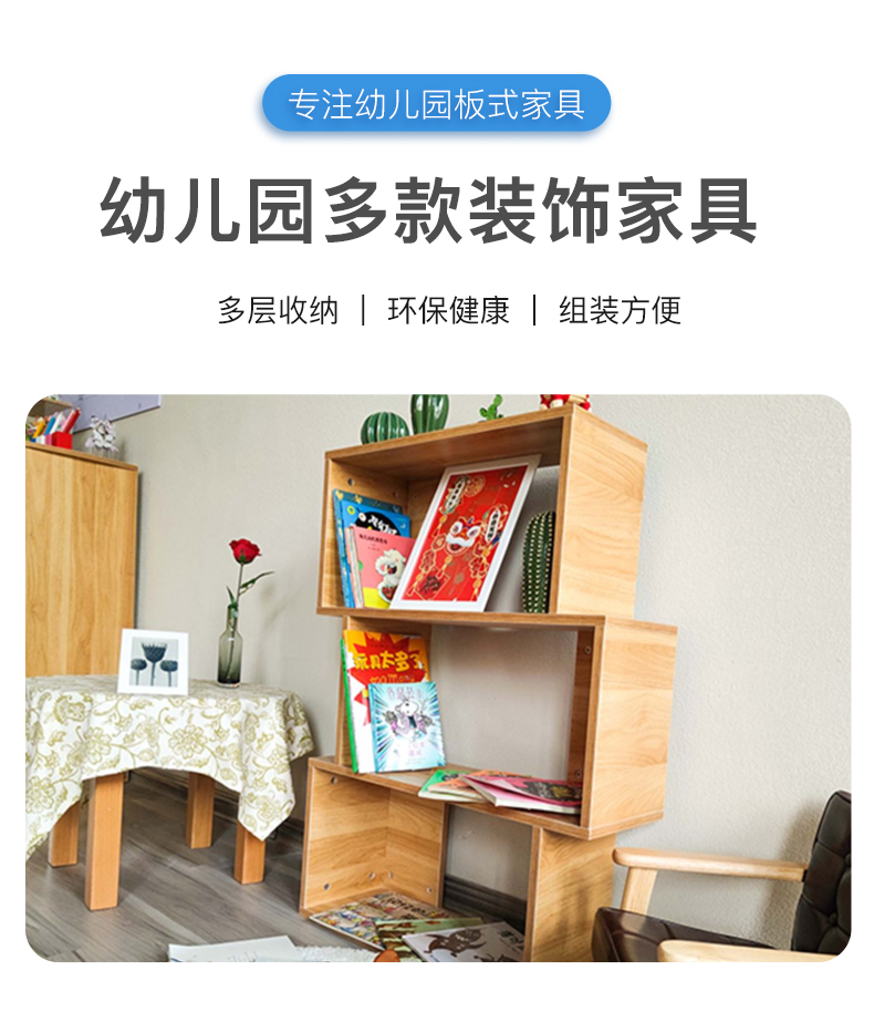 四层错位置物架书架幼儿园阅读区简约现代错位落地置物架书架