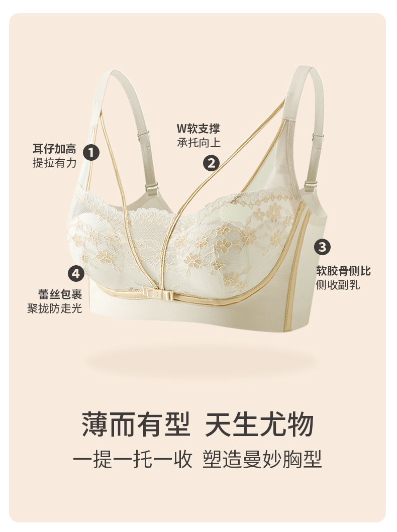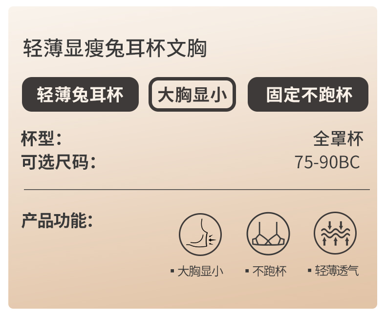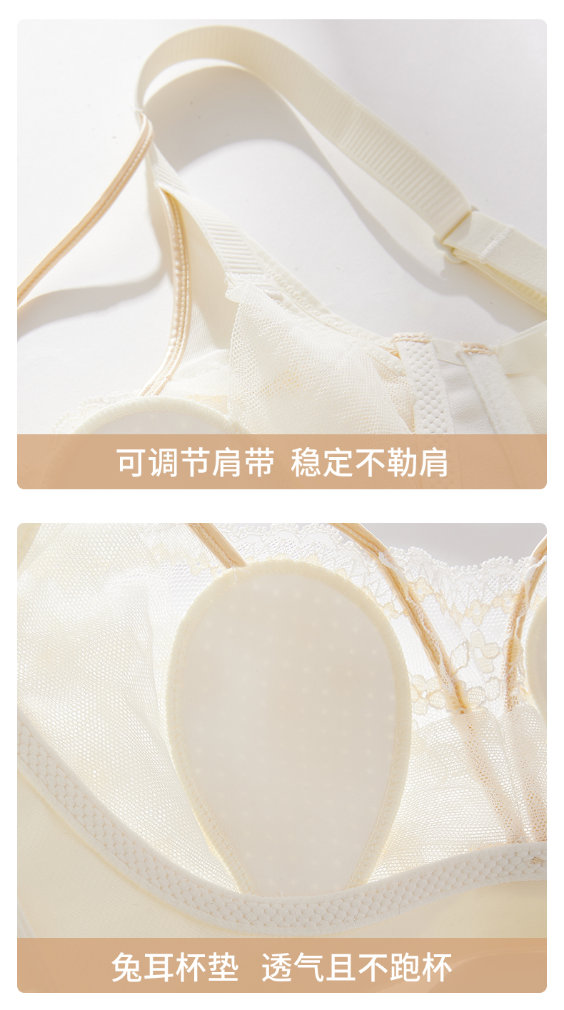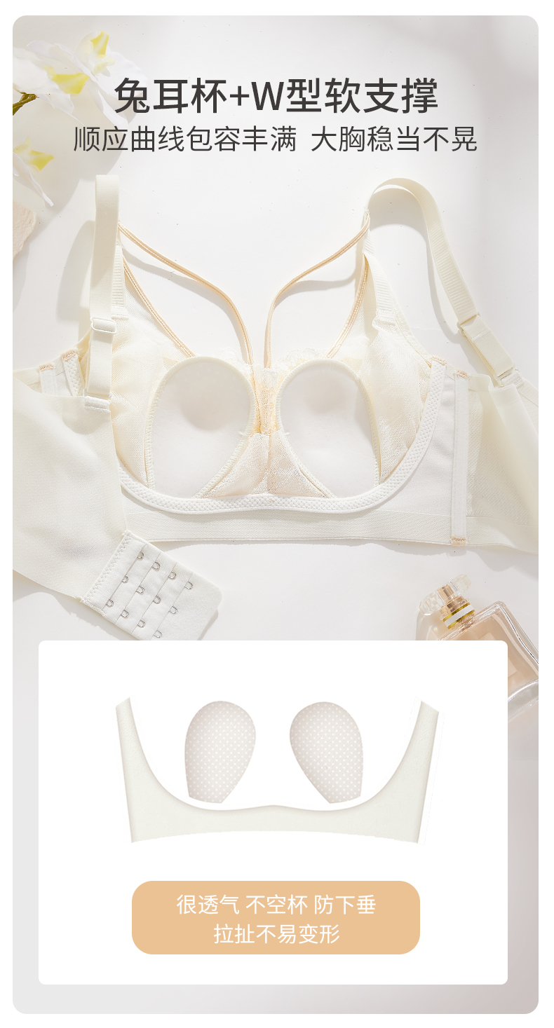 雅黛俪兔耳朵内衣女薄款大胸显小胸全罩杯夏季收副乳防下垂文胸罩