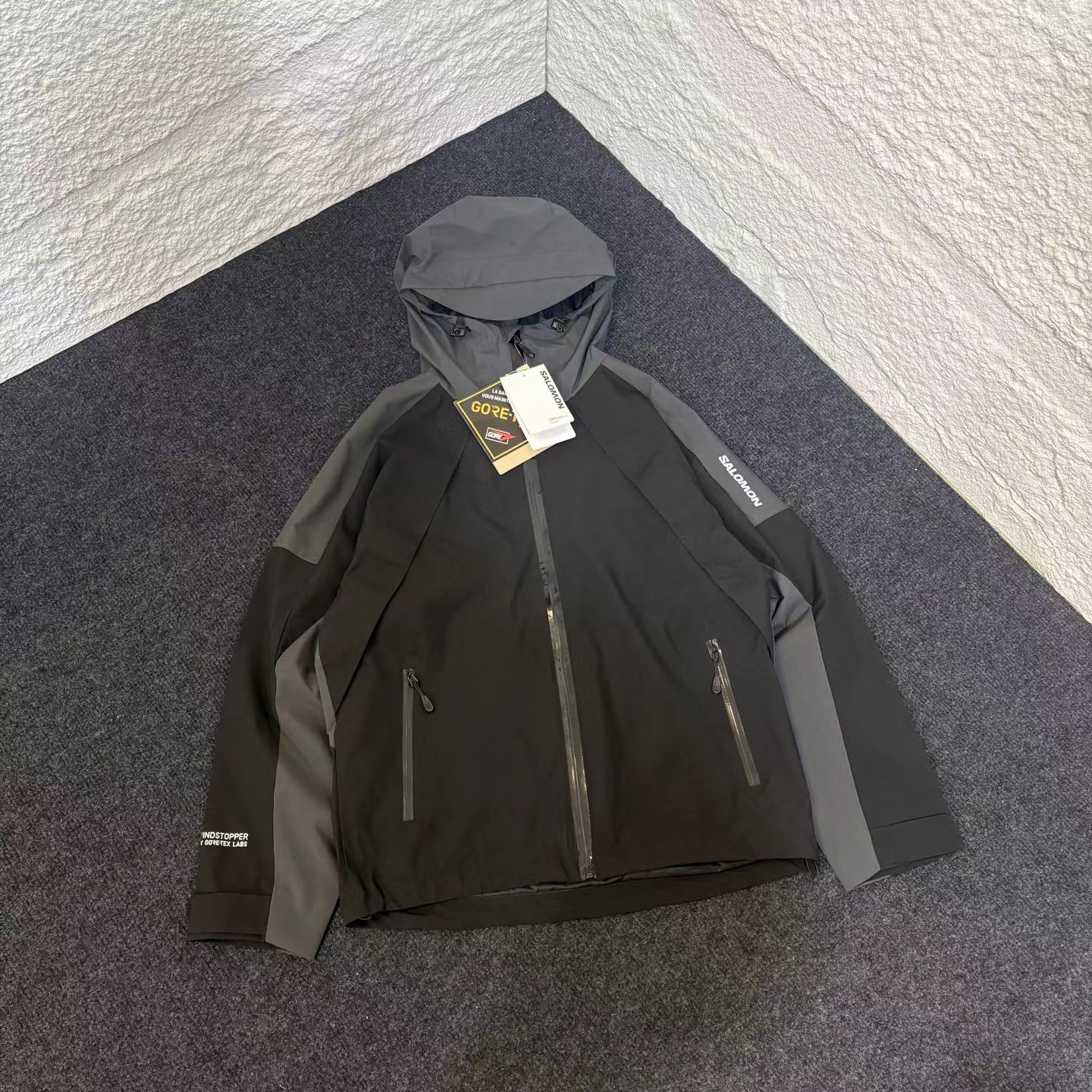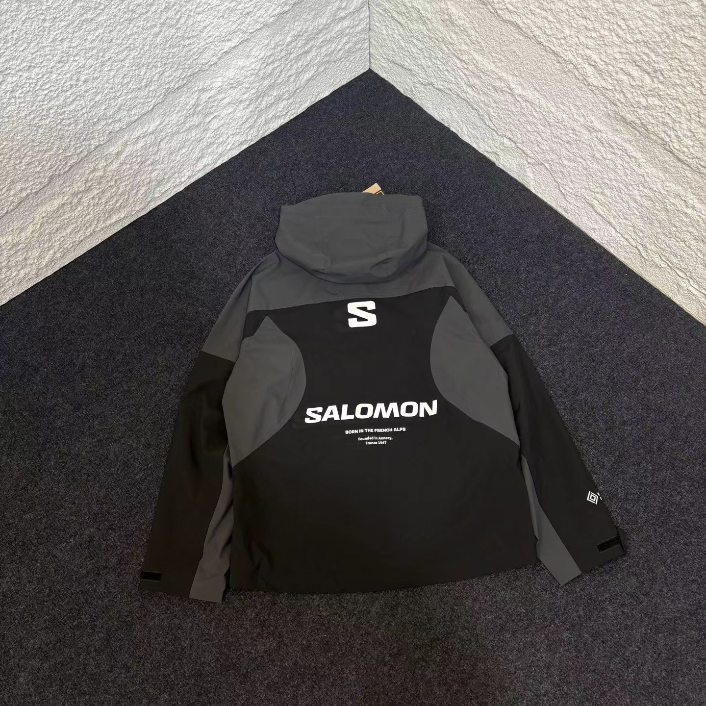 户外男款徒步登山防风夹克 配备可调节的3D风帽,能根据头型进行调整,提供更好的包裹性和防护性;胸前带有隐藏侧兜,方便收纳小物品;腋下设有透气拉链,可快速排汗散热,保持身体干爽;下摆单手可调节,袖口做工精细,整体细节设计兼顾实用性与舒适性。