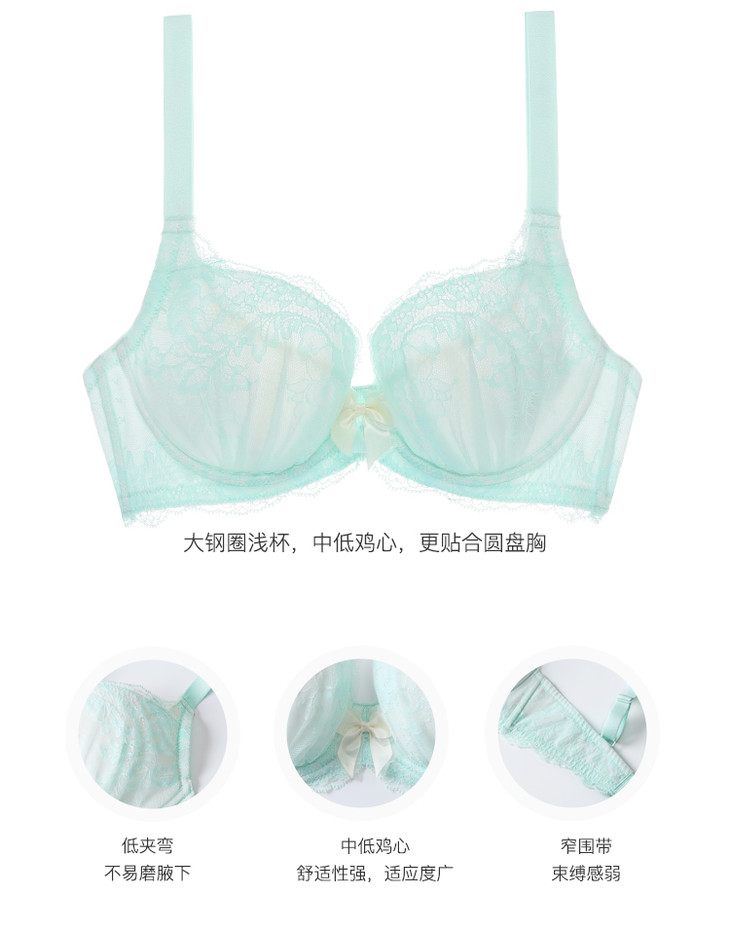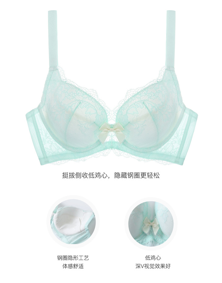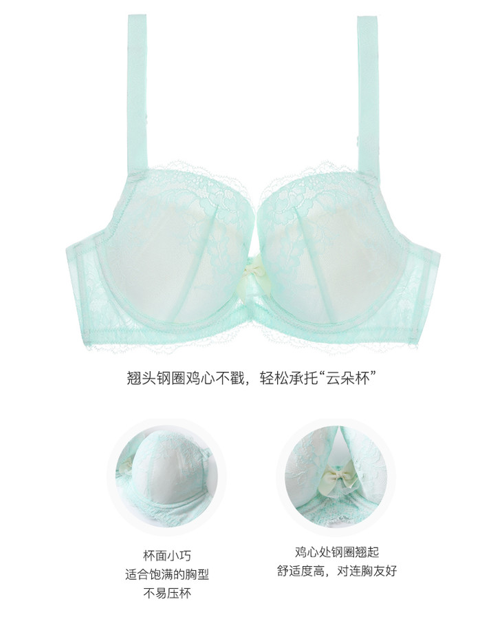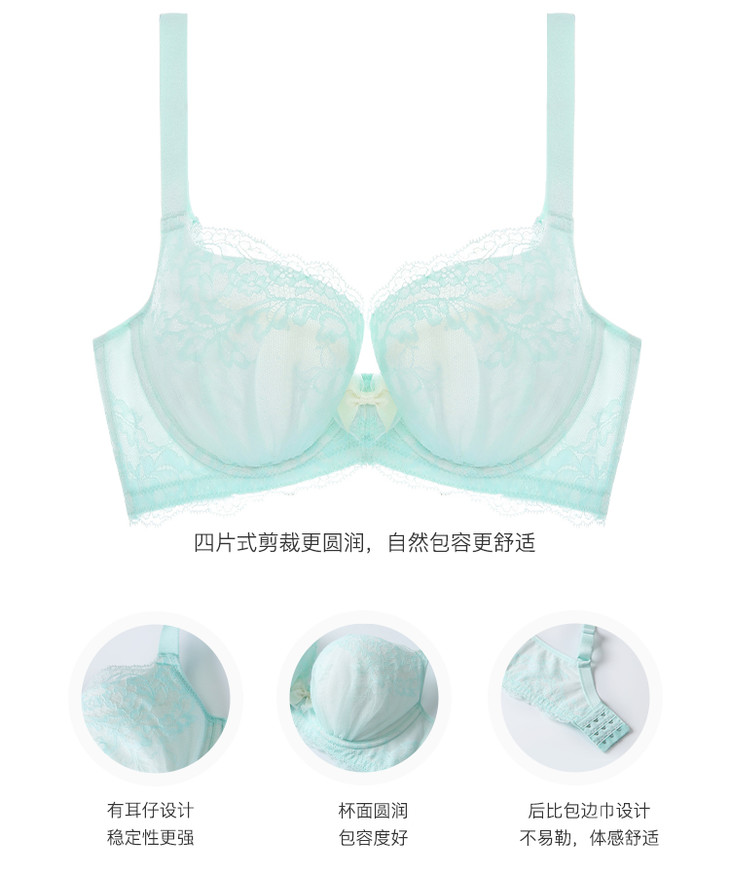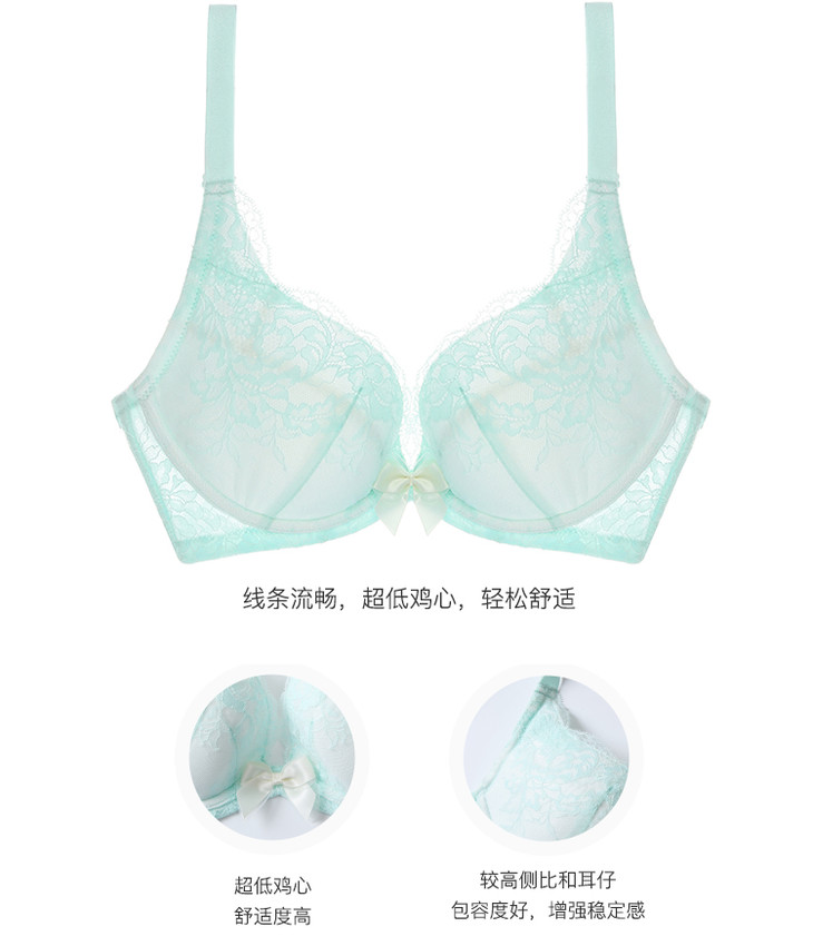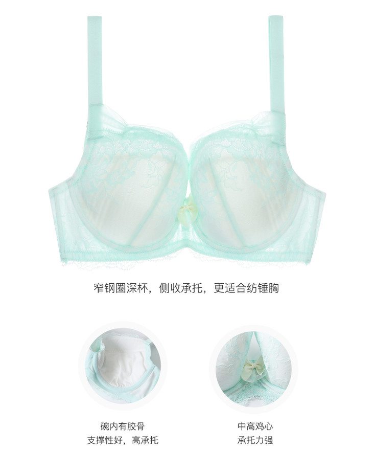 [清茶]大胸显小法式全罩杯蕾丝文胸超薄款承托防下垂内衣女