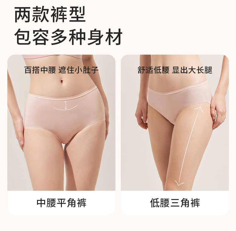 奶糖派3条装自在内裤舒适无痕透气中腰平角裤女三角短裤